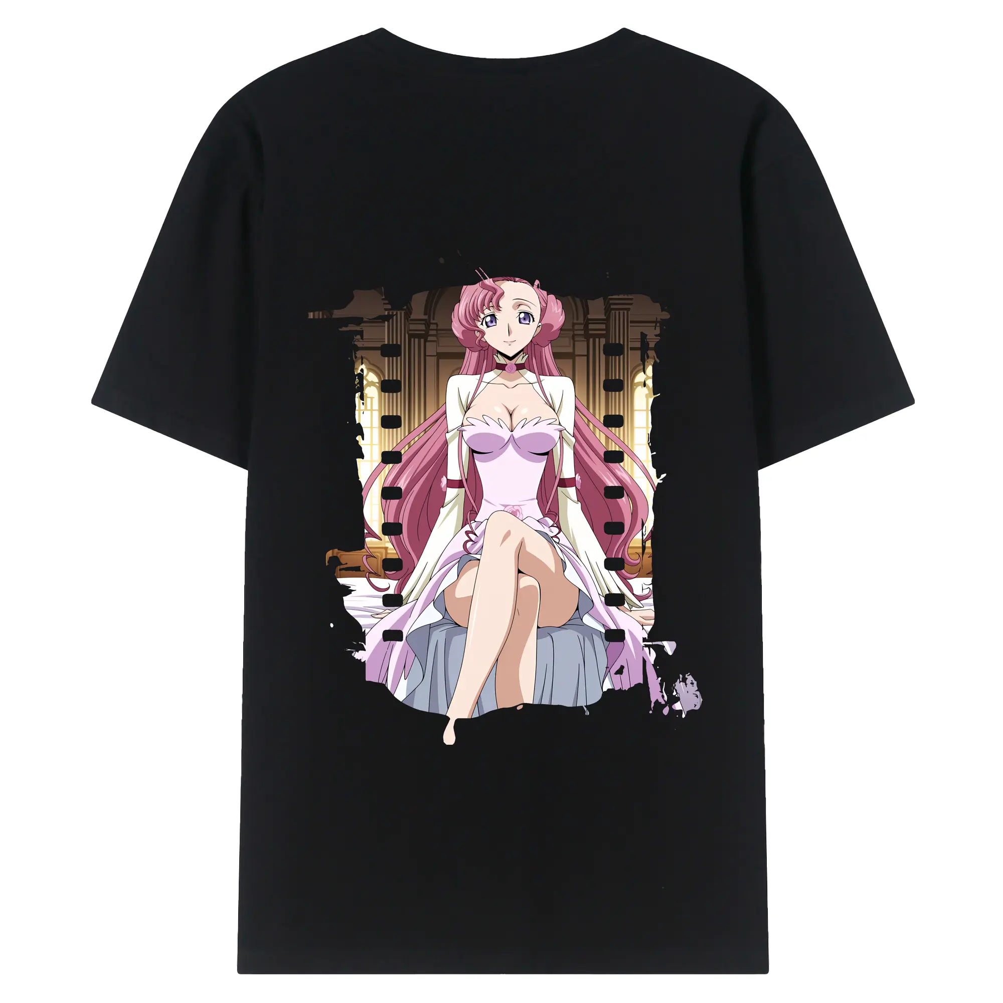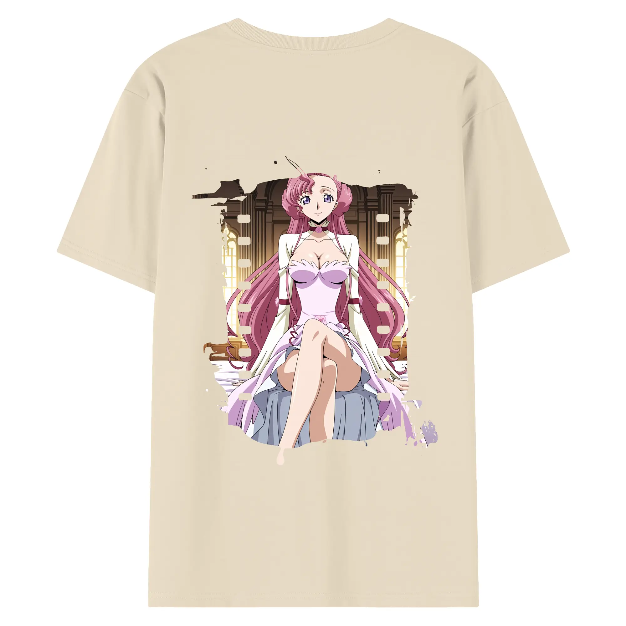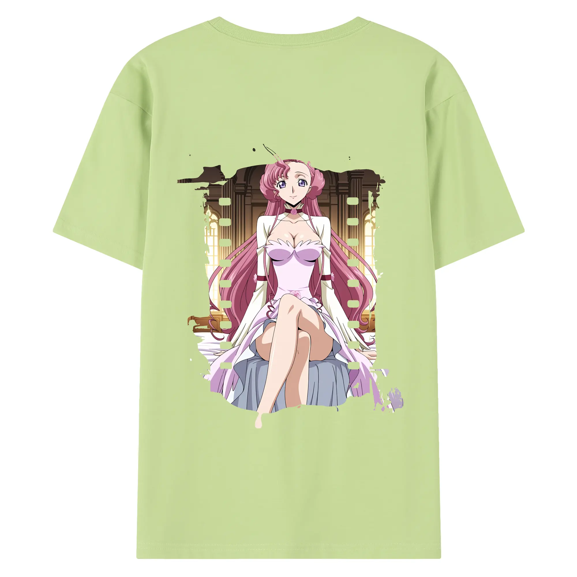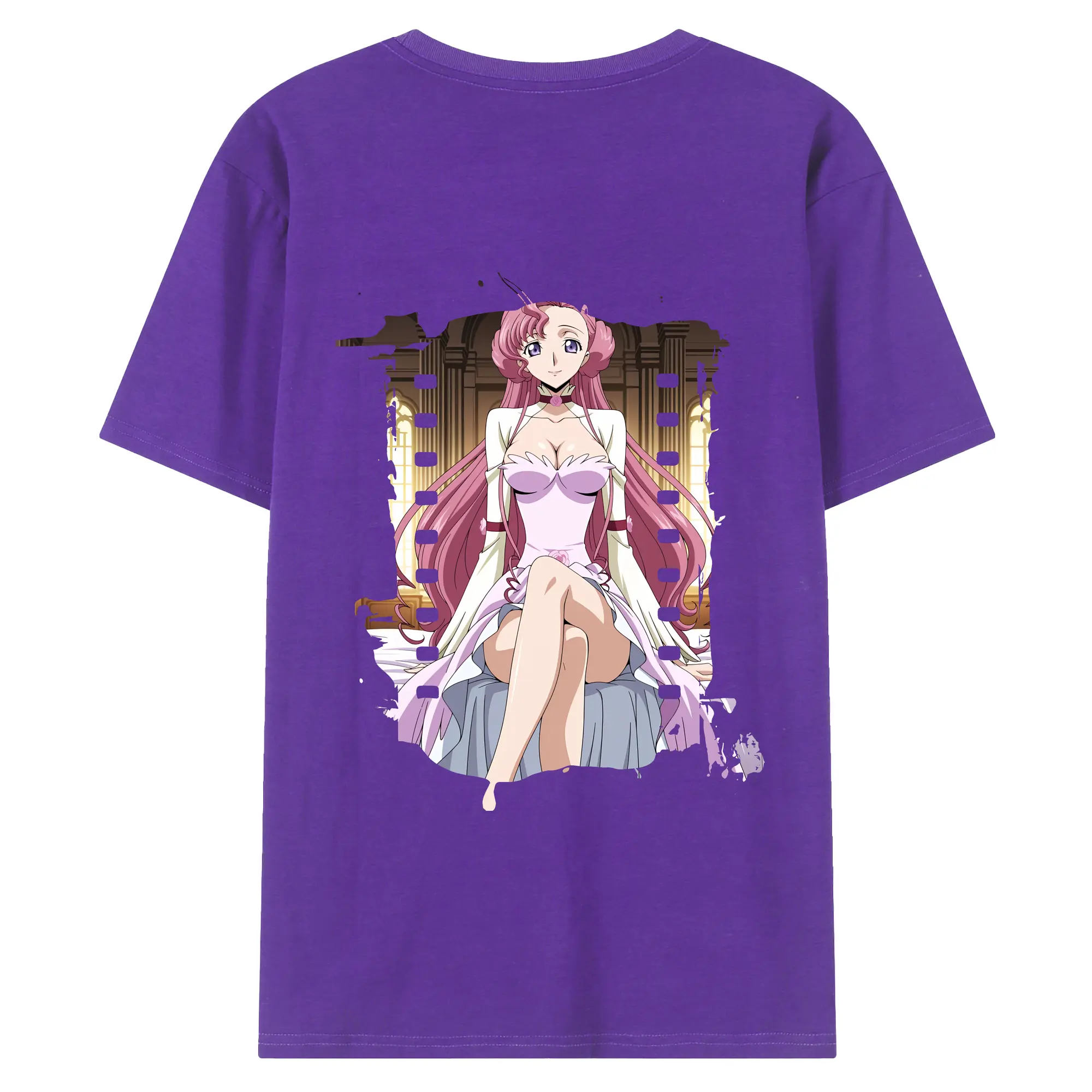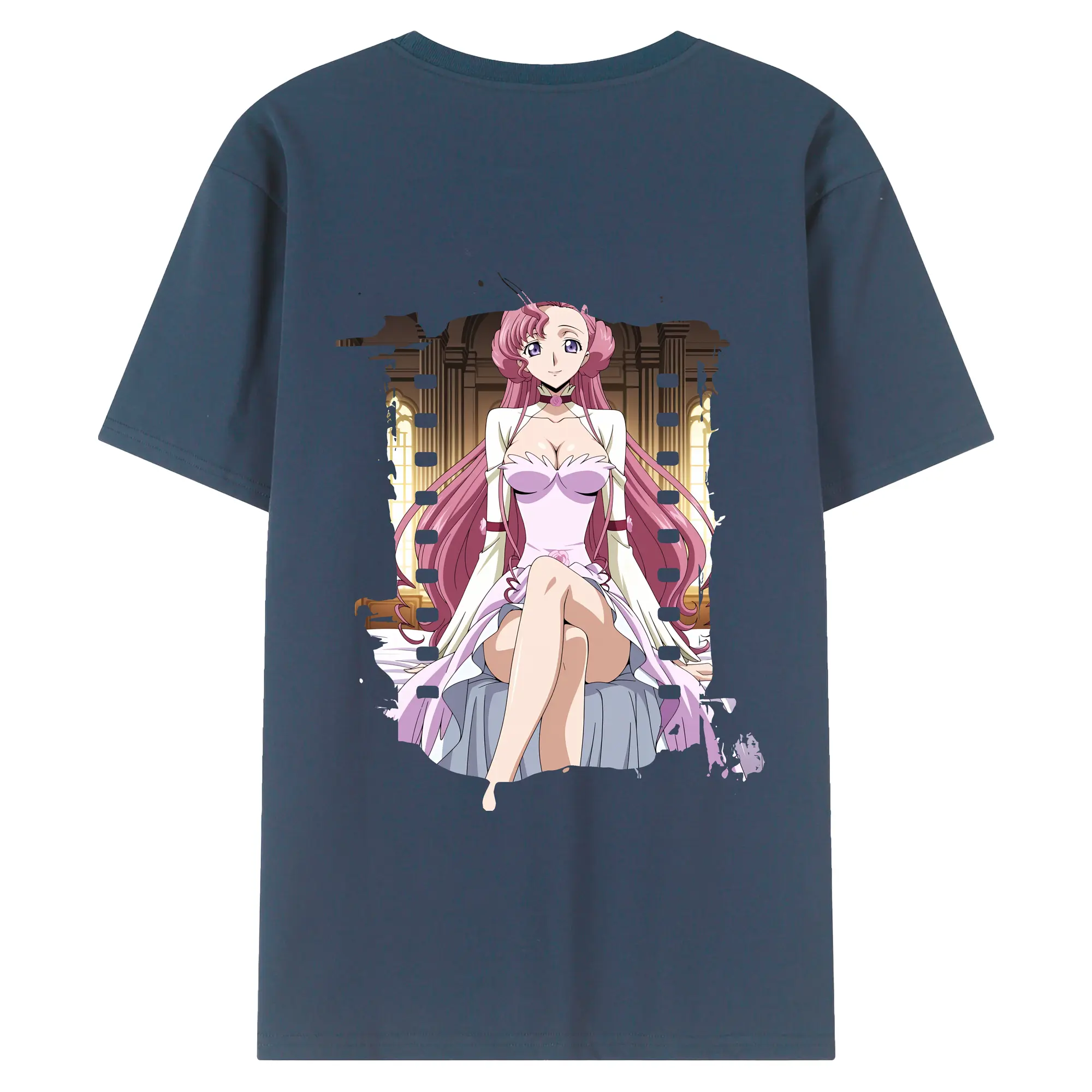 コードギアス 反逆のルルーシュ グッズ ユーフェミア・リ・ブリタニア - 綿100% ヴィンテージ風 半袖Tシャツ ・ 背面プリント ・ 柔らか肌触り ・ 通気性 快適 ・ スポーツ カジュアル 外出用