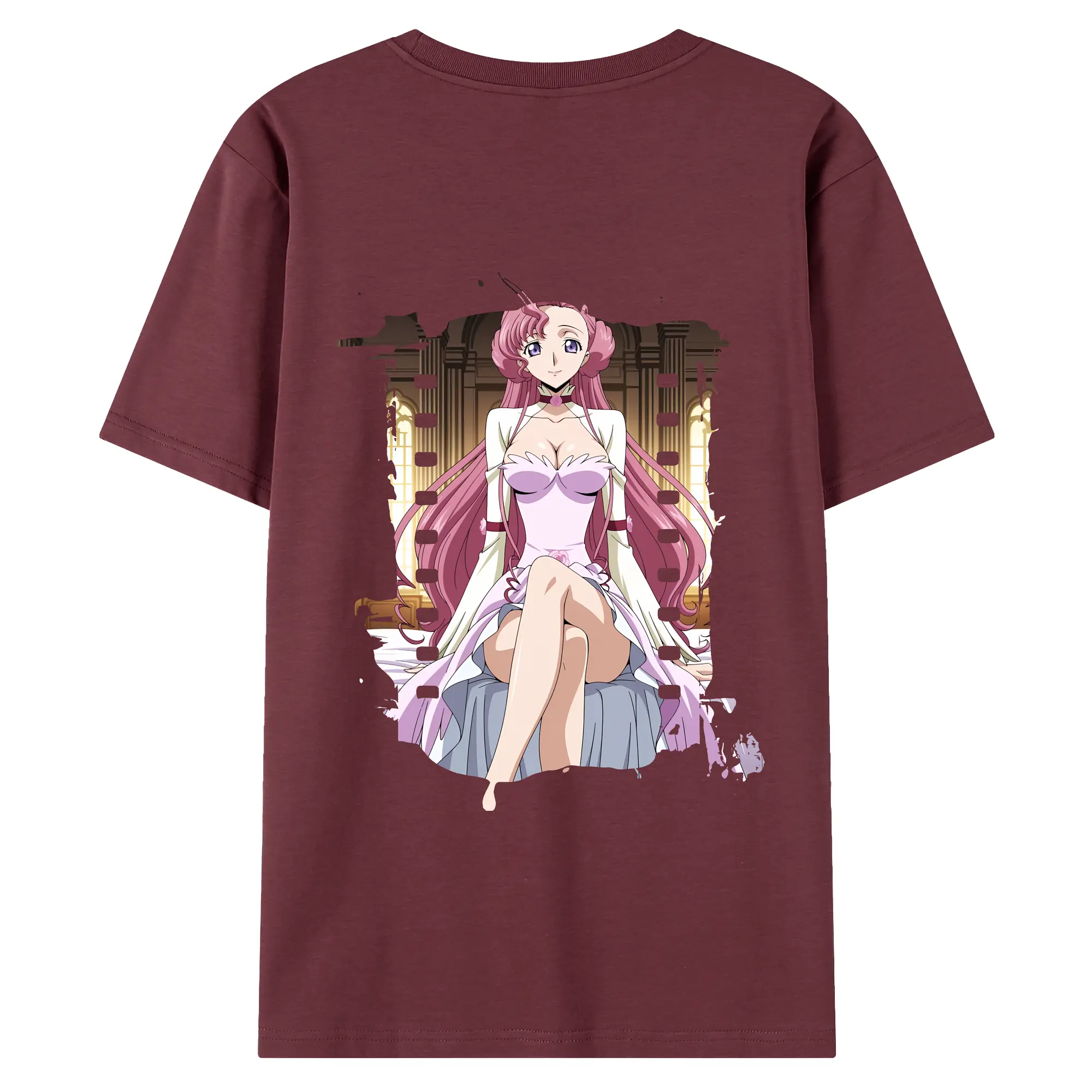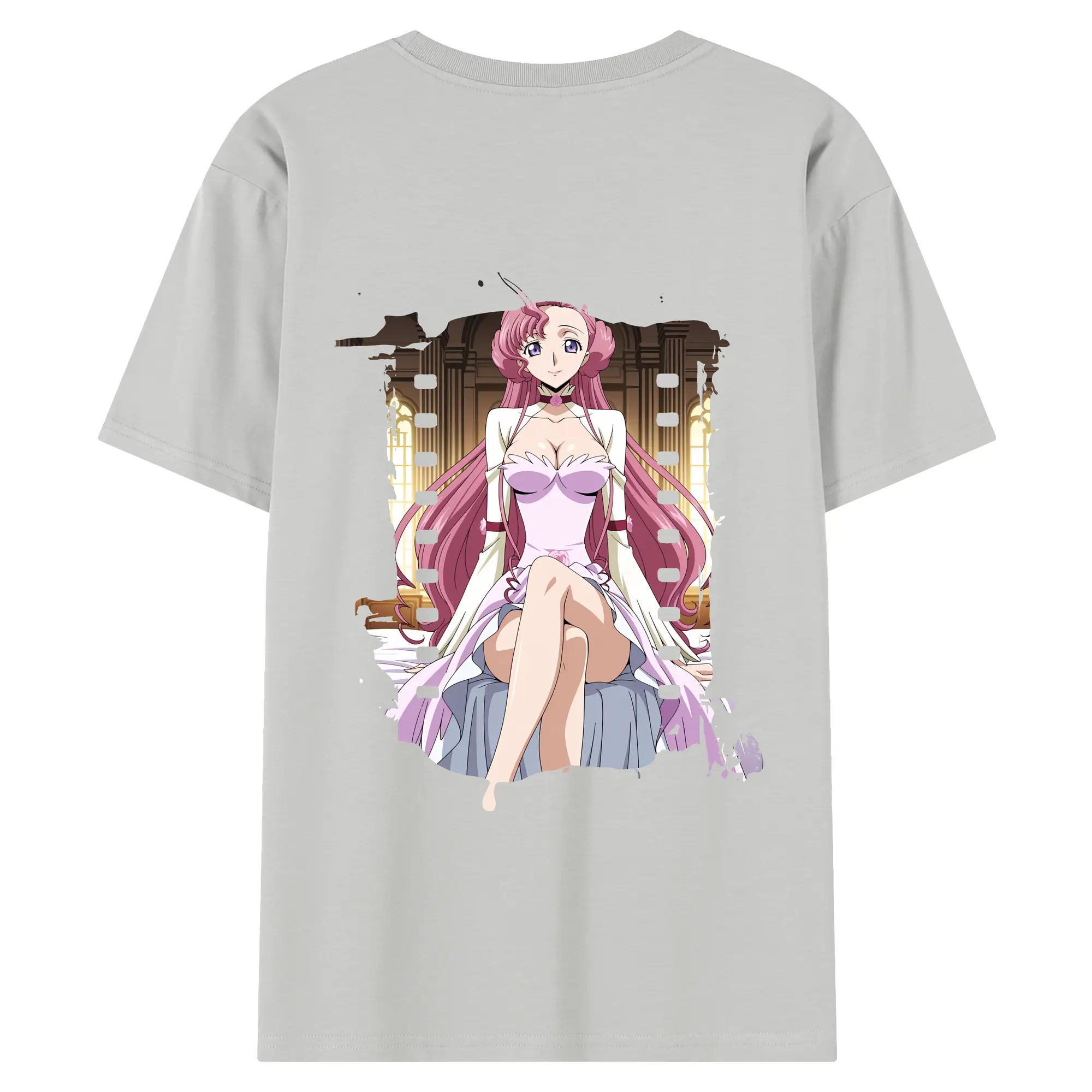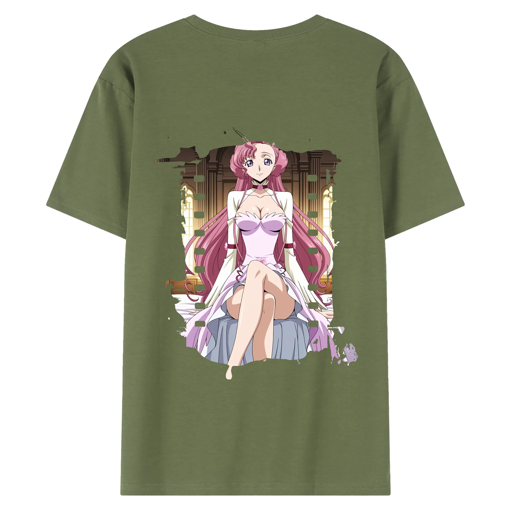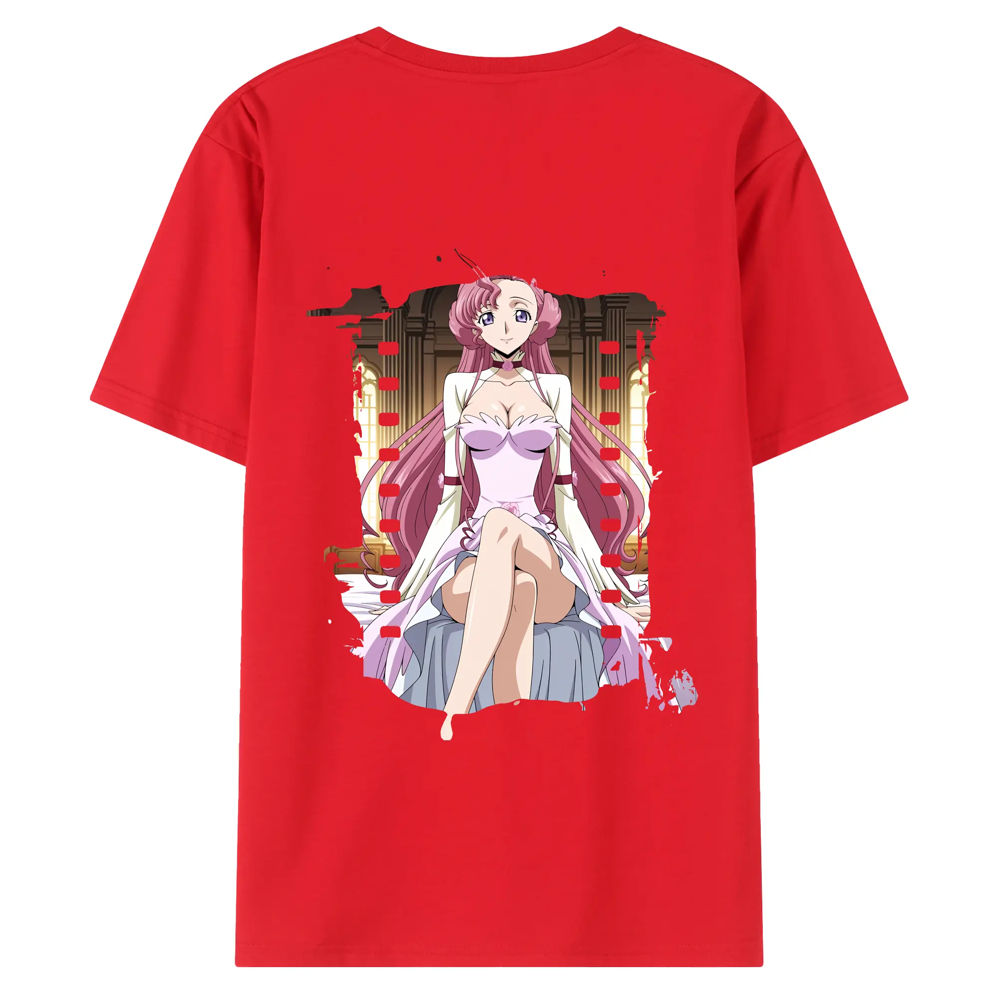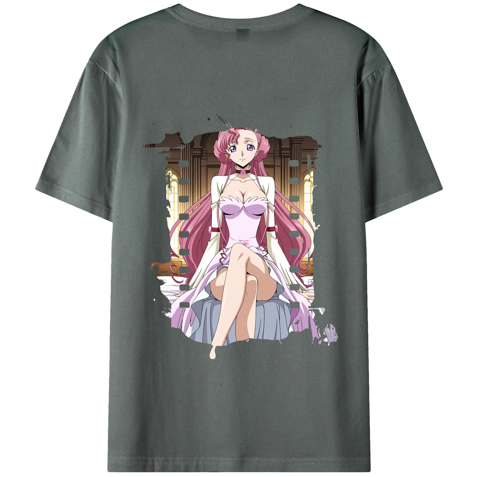 コードギアス 反逆のルルーシュ グッズ ユーフェミア・リ・ブリタニア - 綿100% ヴィンテージ風 半袖Tシャツ ・ 背面プリント ・ 柔らか肌触り ・ 通気性 快適 ・ スポーツ カジュアル 外出用