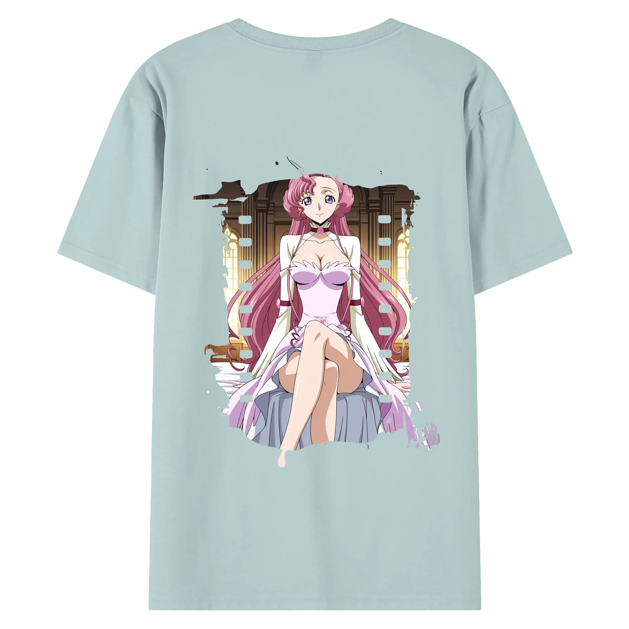 コードギアス 反逆のルルーシュ グッズ ユーフェミア・リ・ブリタニア - 綿100% 半袖Tシャツ ・ フロントプリント ・ 快適 通気性 ・ 日常使い 散歩 スポーツ用