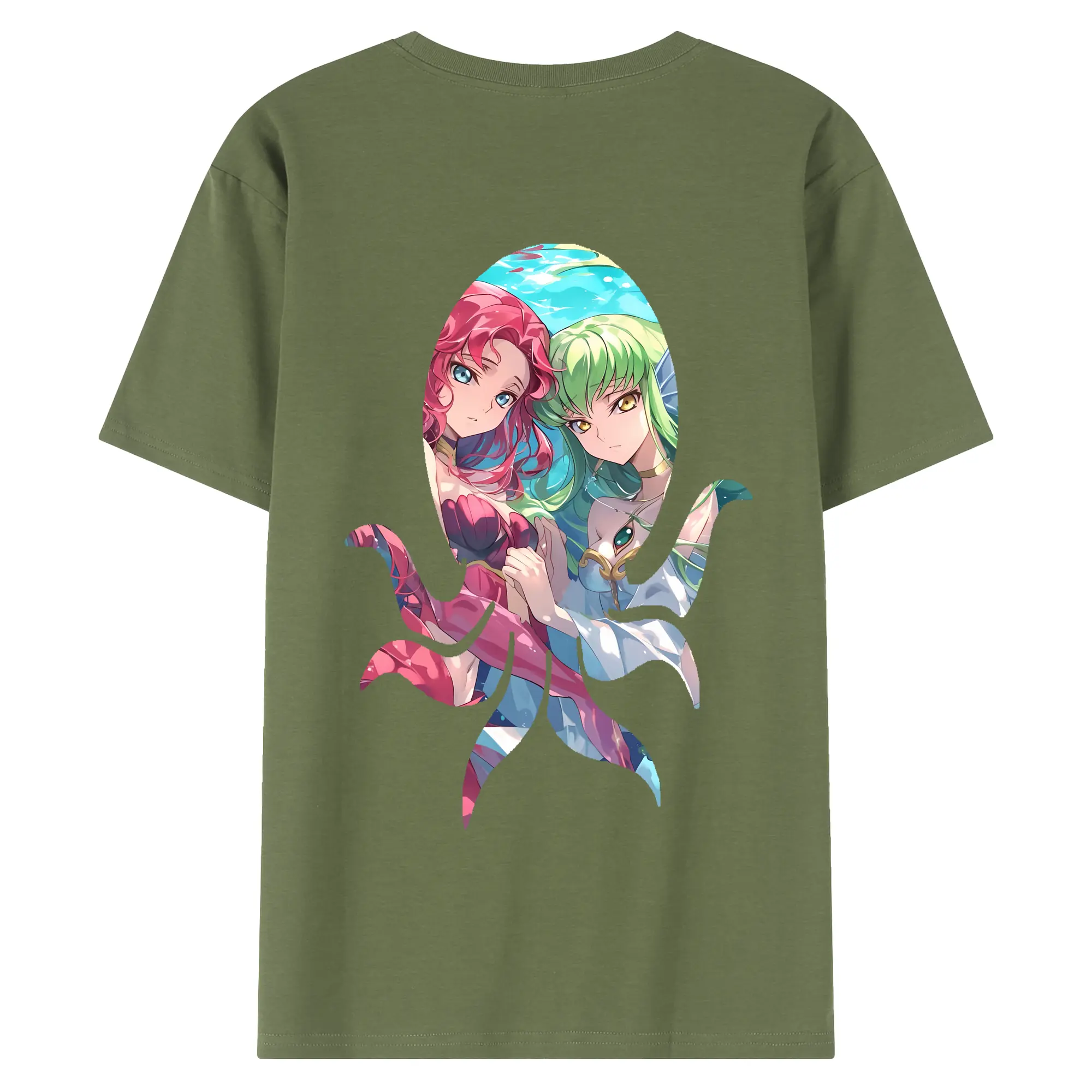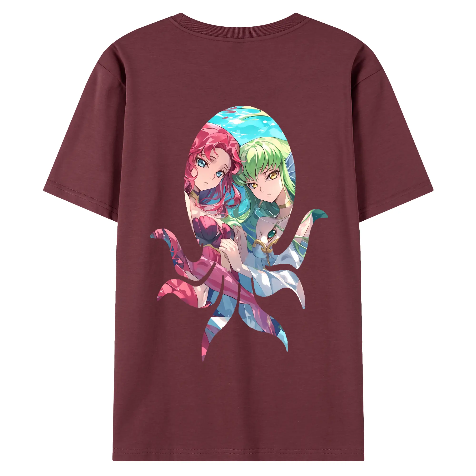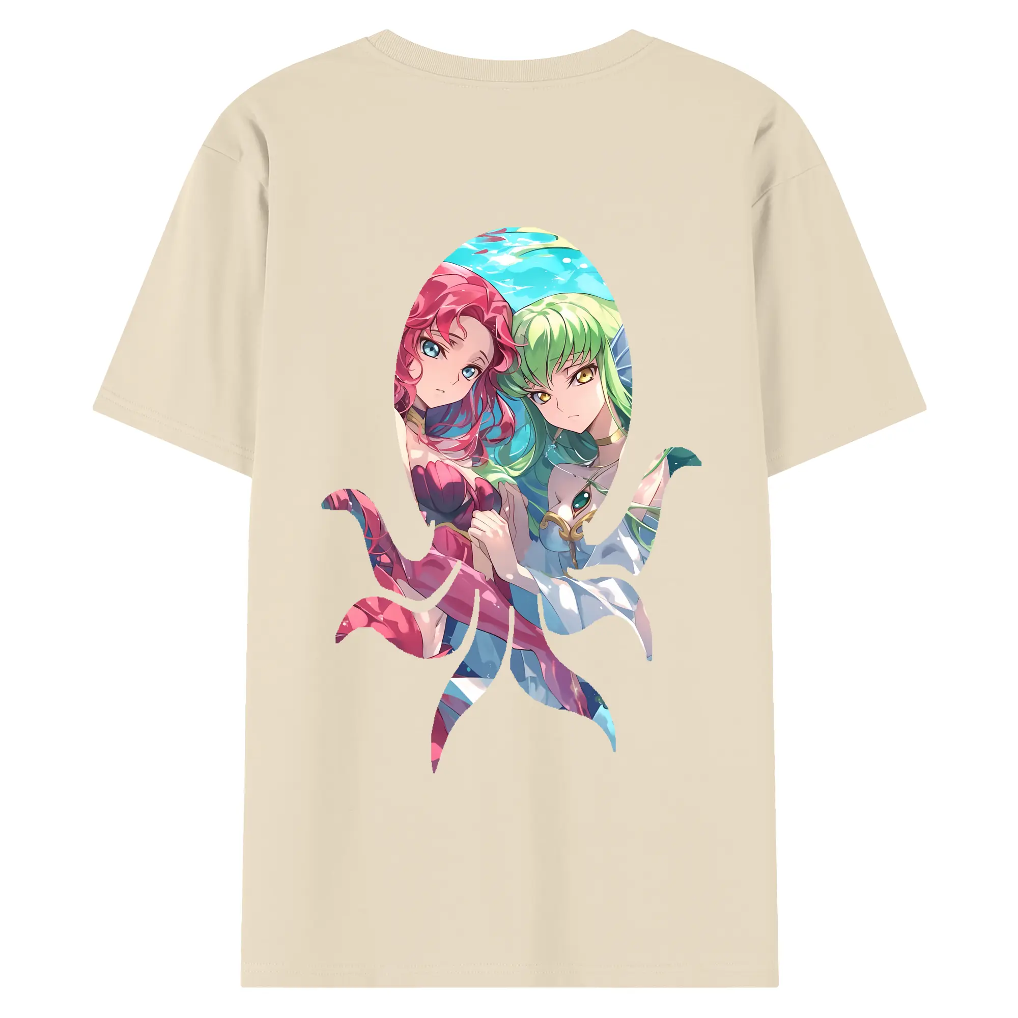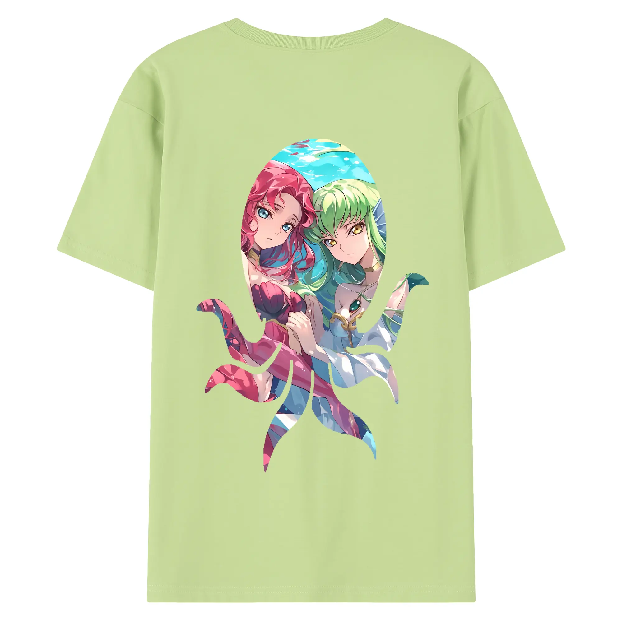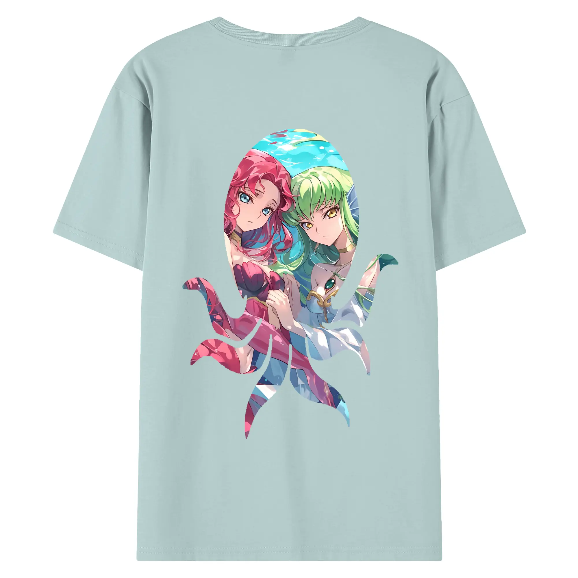 コードギアス 反逆のルルーシュ グッズ ユーフェミア・リ・ブリタニア - 綿100% ヴィンテージ風 半袖Tシャツ ・ 背面プリント ・ 柔らか肌触り ・ 通気性 快適 ・ スポーツ カジュアル 外出用