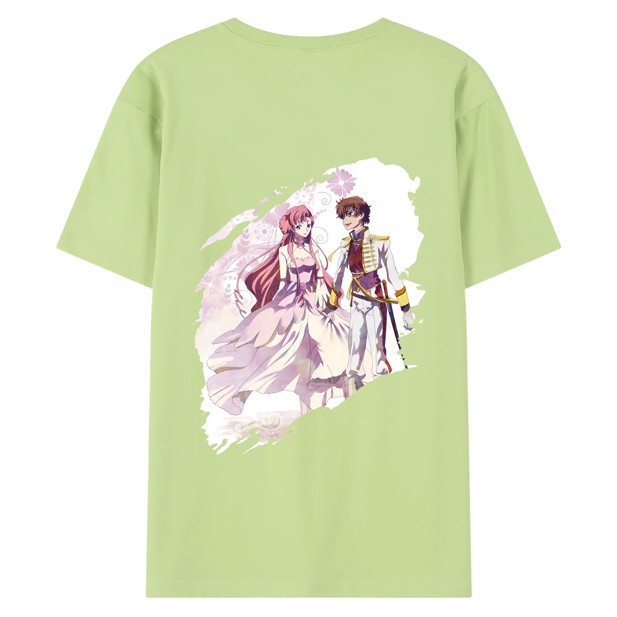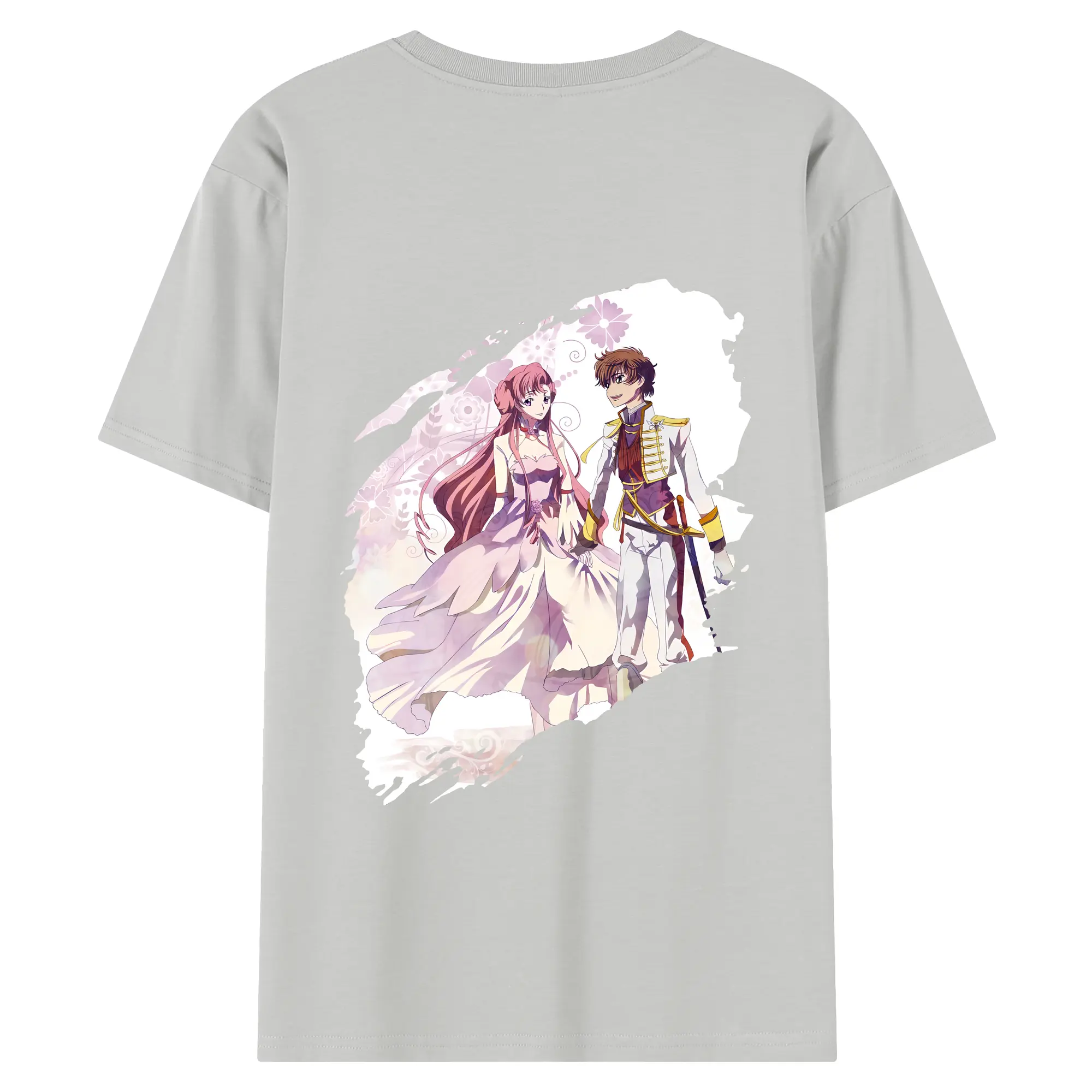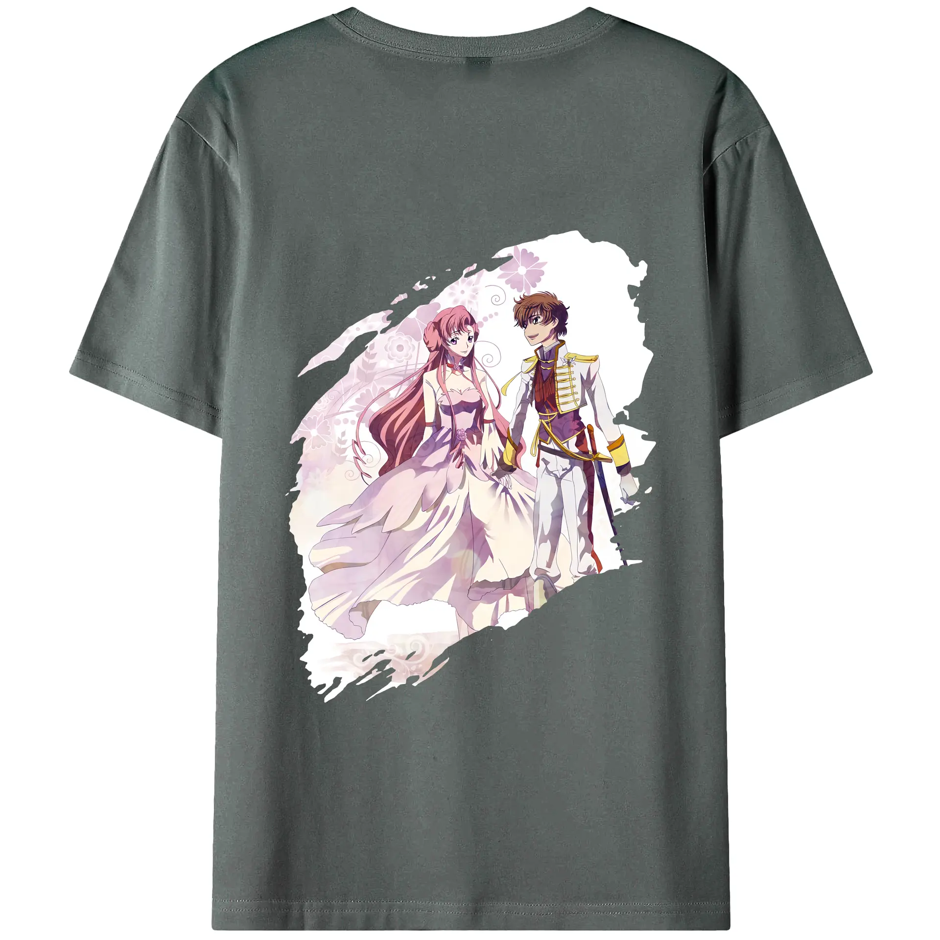 コードギアス 反逆のルルーシュ グッズ ユーフェミア・リ・ブリタニア - 綿100% ヴィンテージ風 半袖Tシャツ ・ 背面プリント ・ 柔らか肌触り ・ 通気性 快適 ・ スポーツ カジュアル 外出用