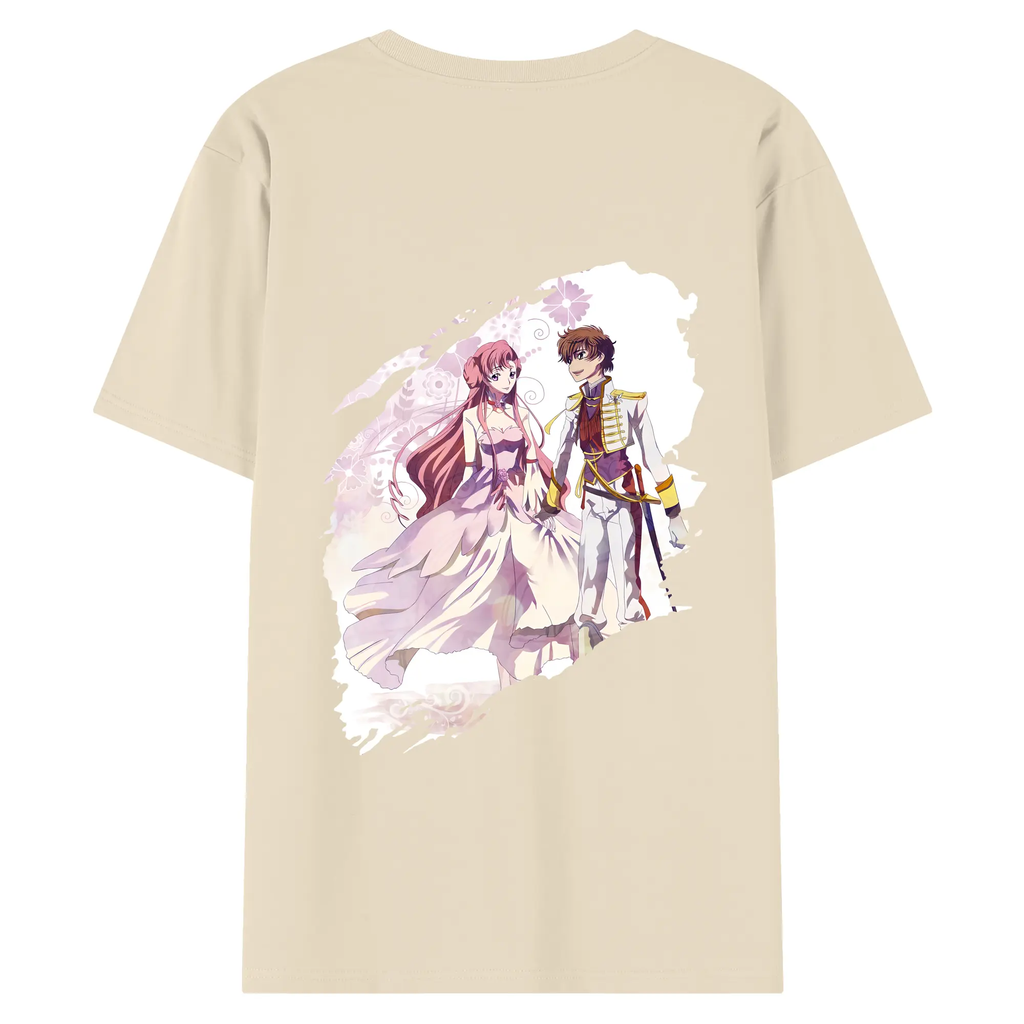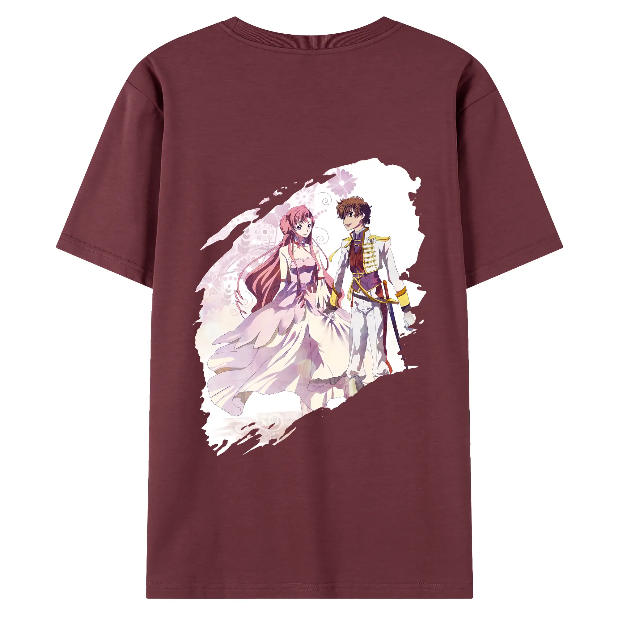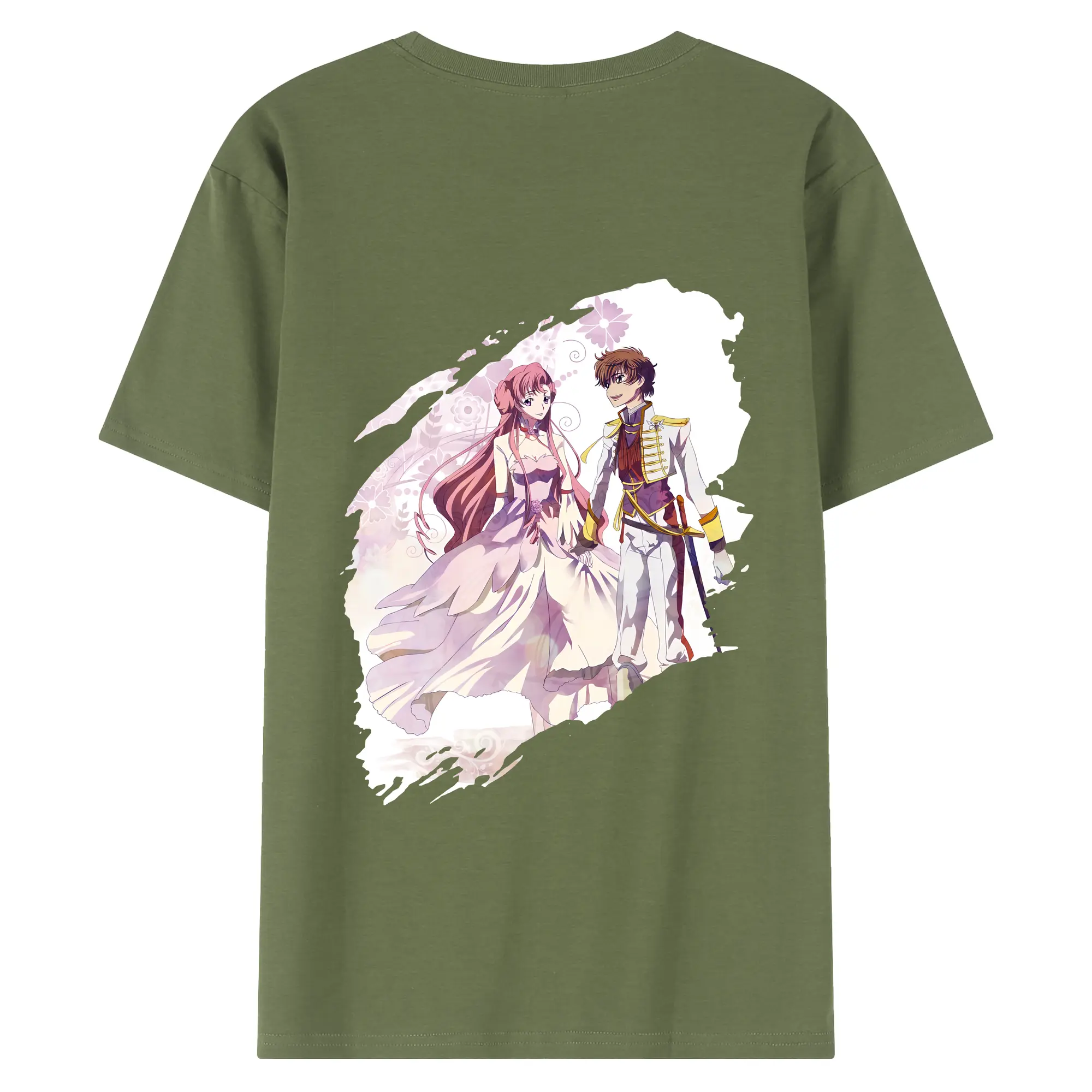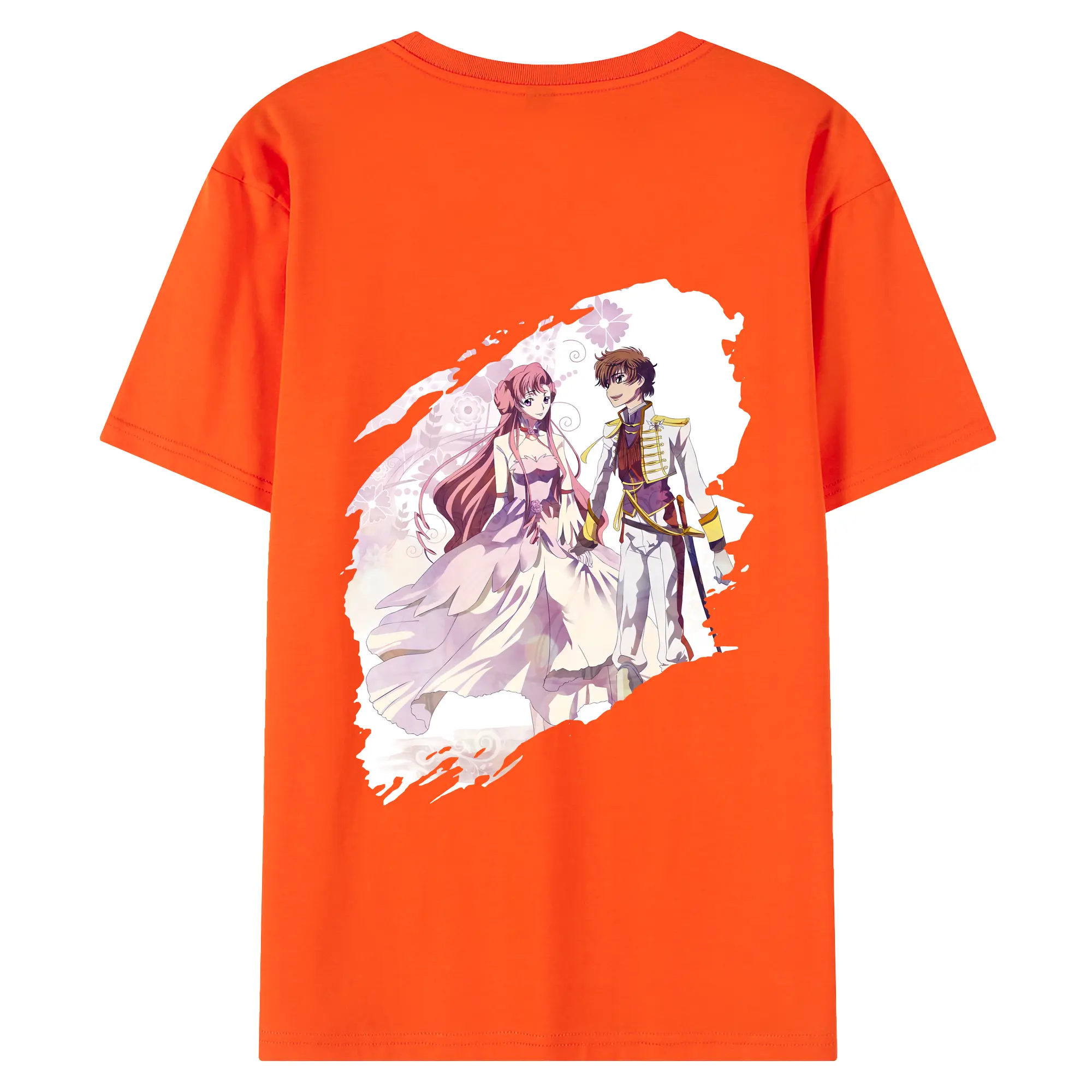 コードギアス 反逆のルルーシュ グッズ ユーフェミア・リ・ブリタニア - 綿100% ヴィンテージ風 半袖Tシャツ ・ 背面プリント ・ 柔らか肌触り ・ 通気性 快適 ・ スポーツ カジュアル 外出用