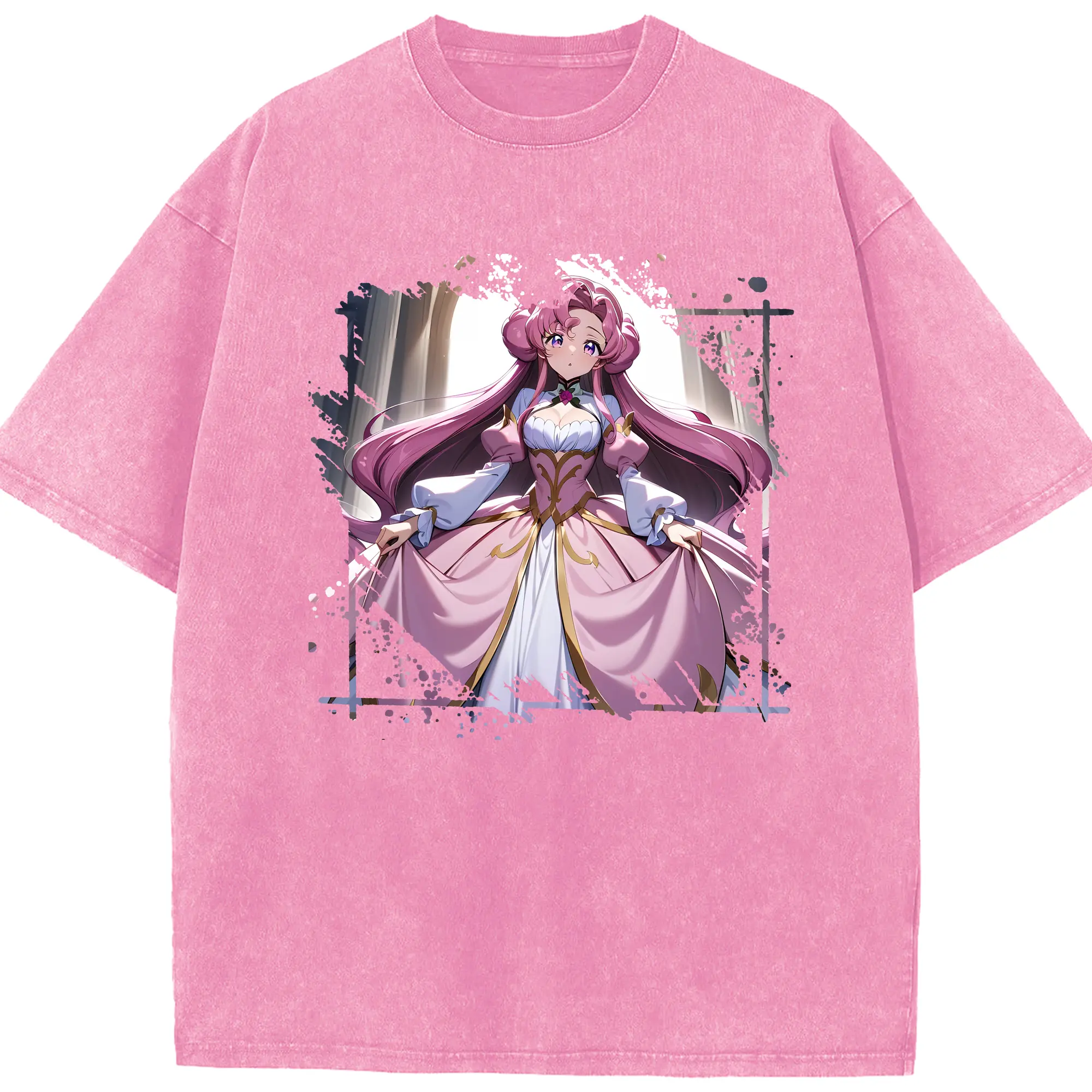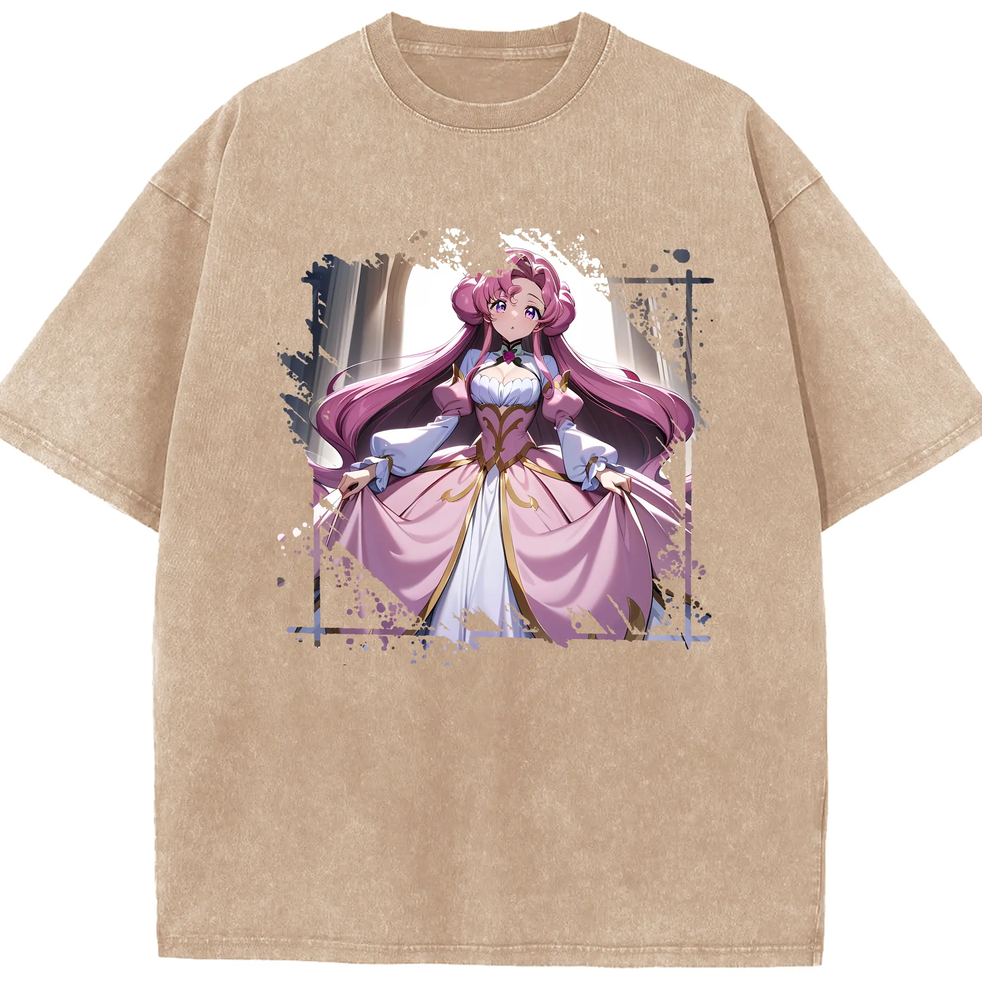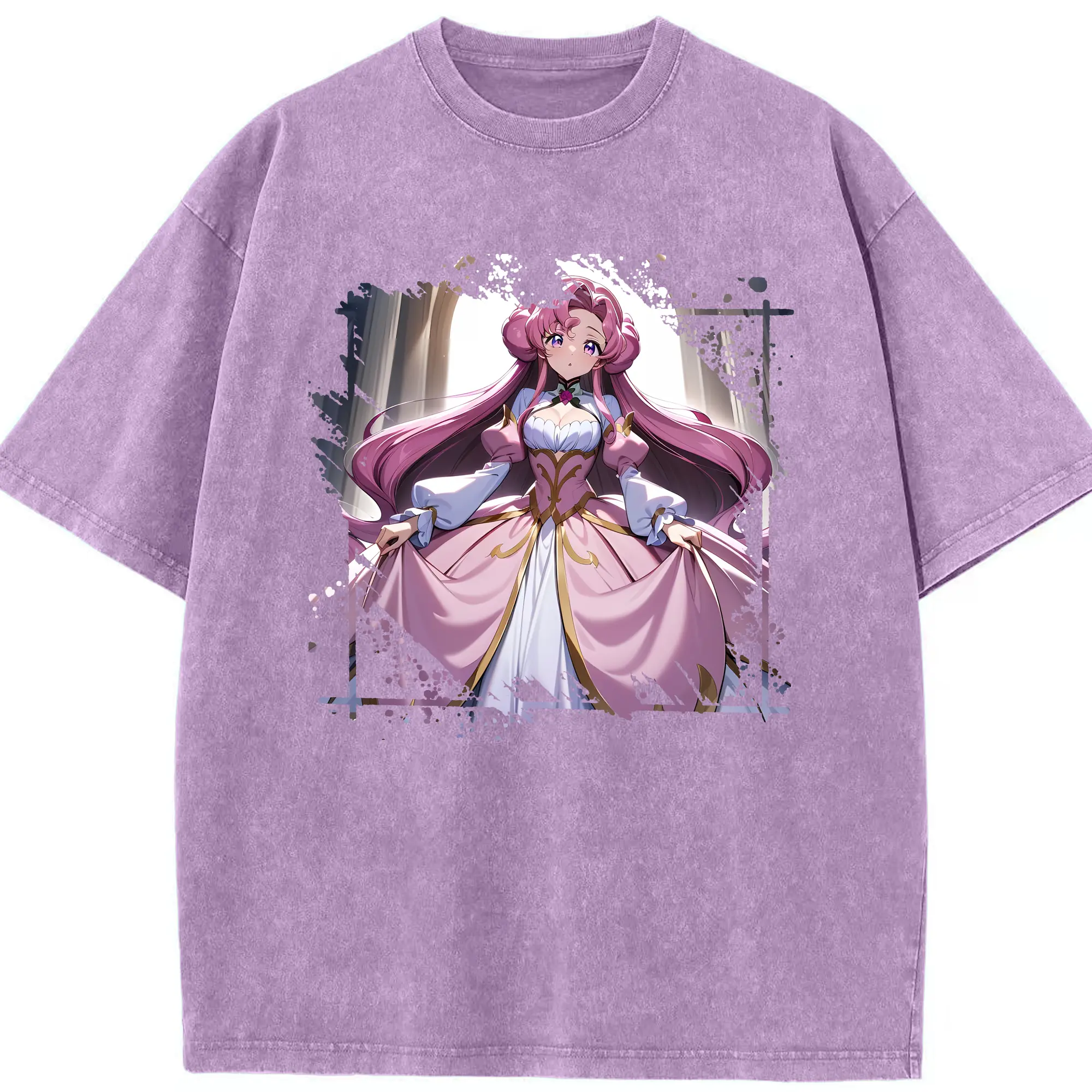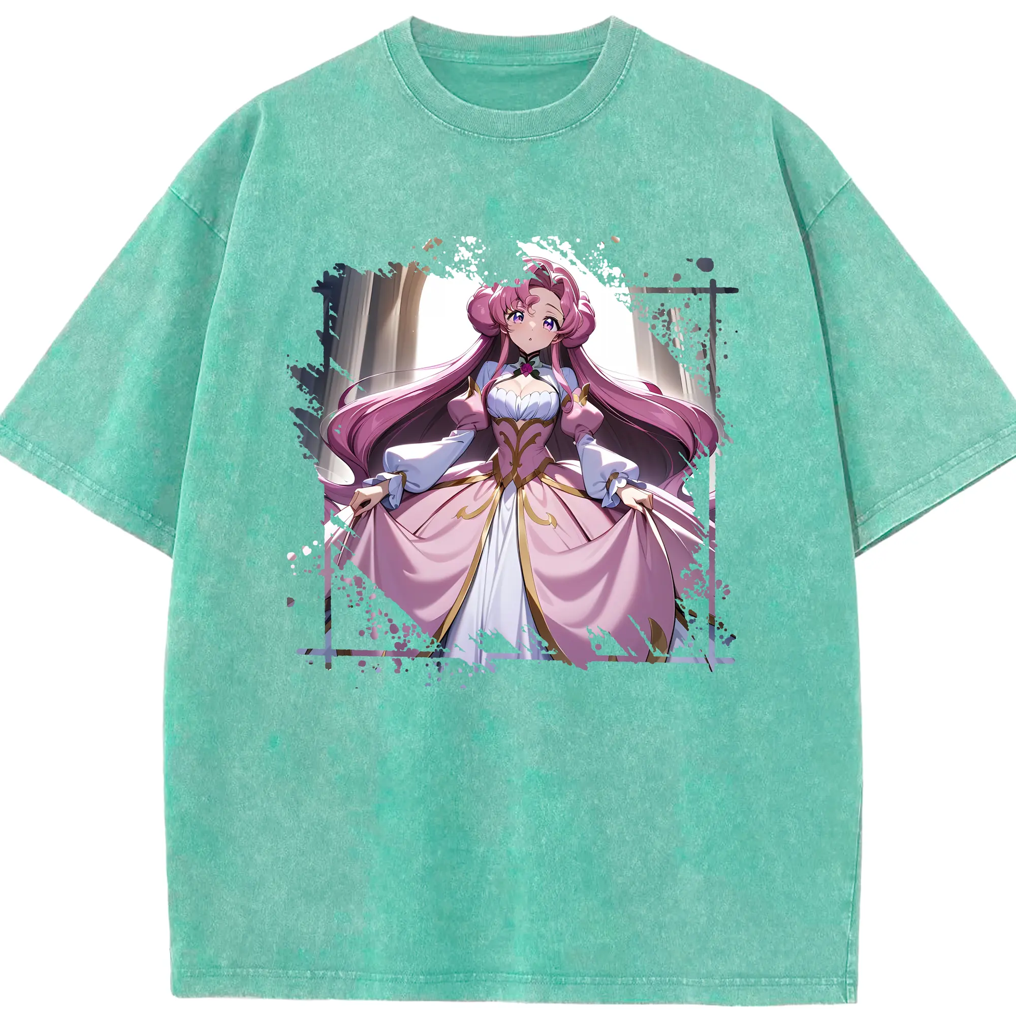 コードギアス 反逆のルルーシュ グッズ ユーフェミア・リ・ブリタニア - 綿100% ヴィンテージ風 半袖Tシャツ ・ 背面プリント ・ 柔らか肌触り ・ 通気性 快適 ・ スポーツ カジュアル 外出用