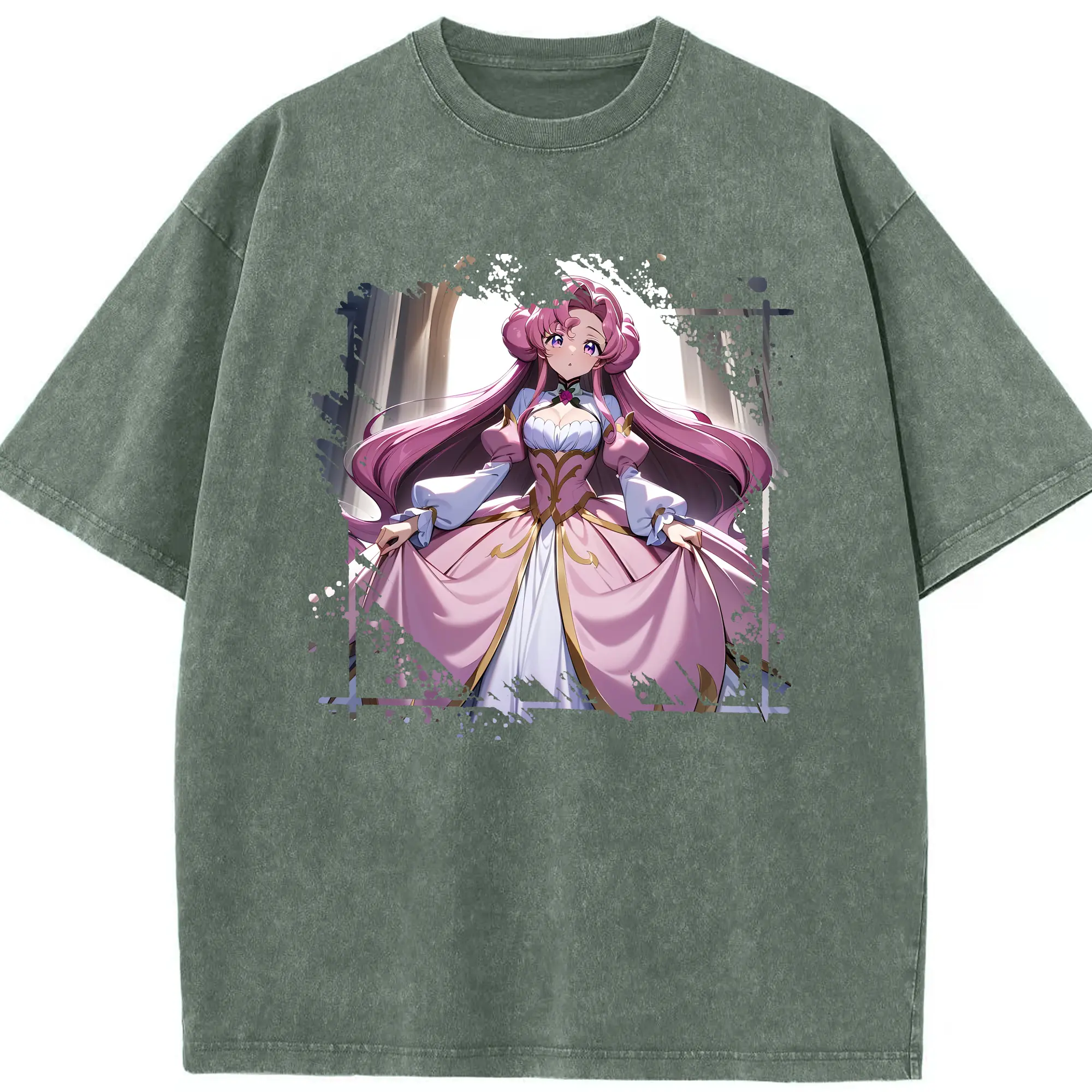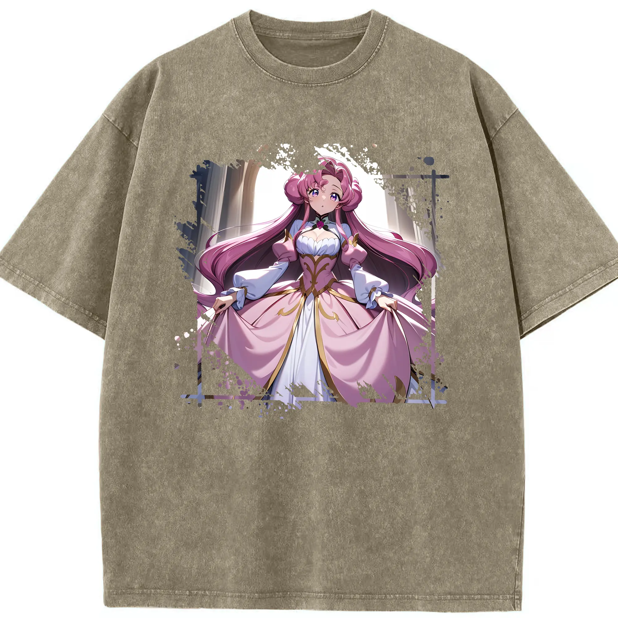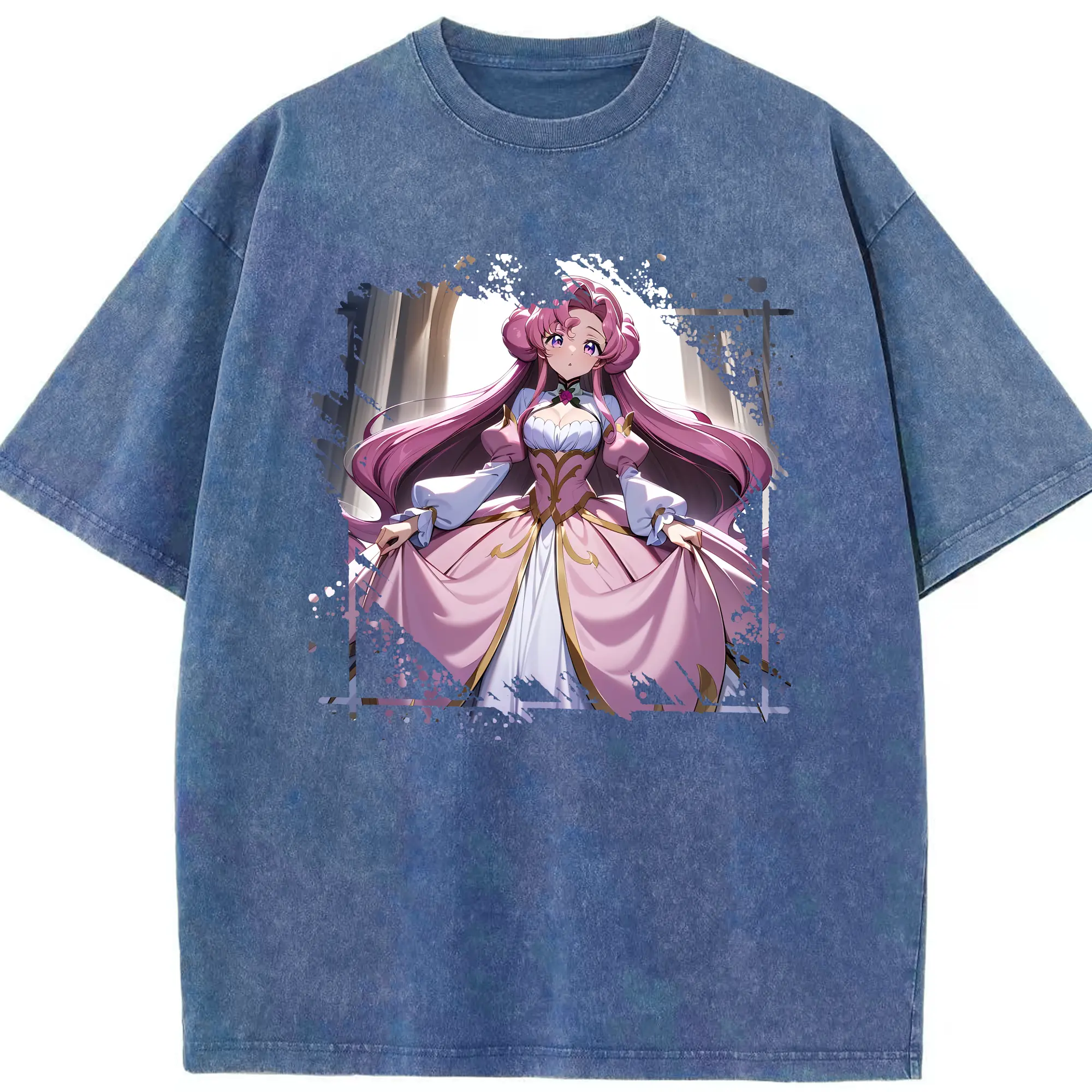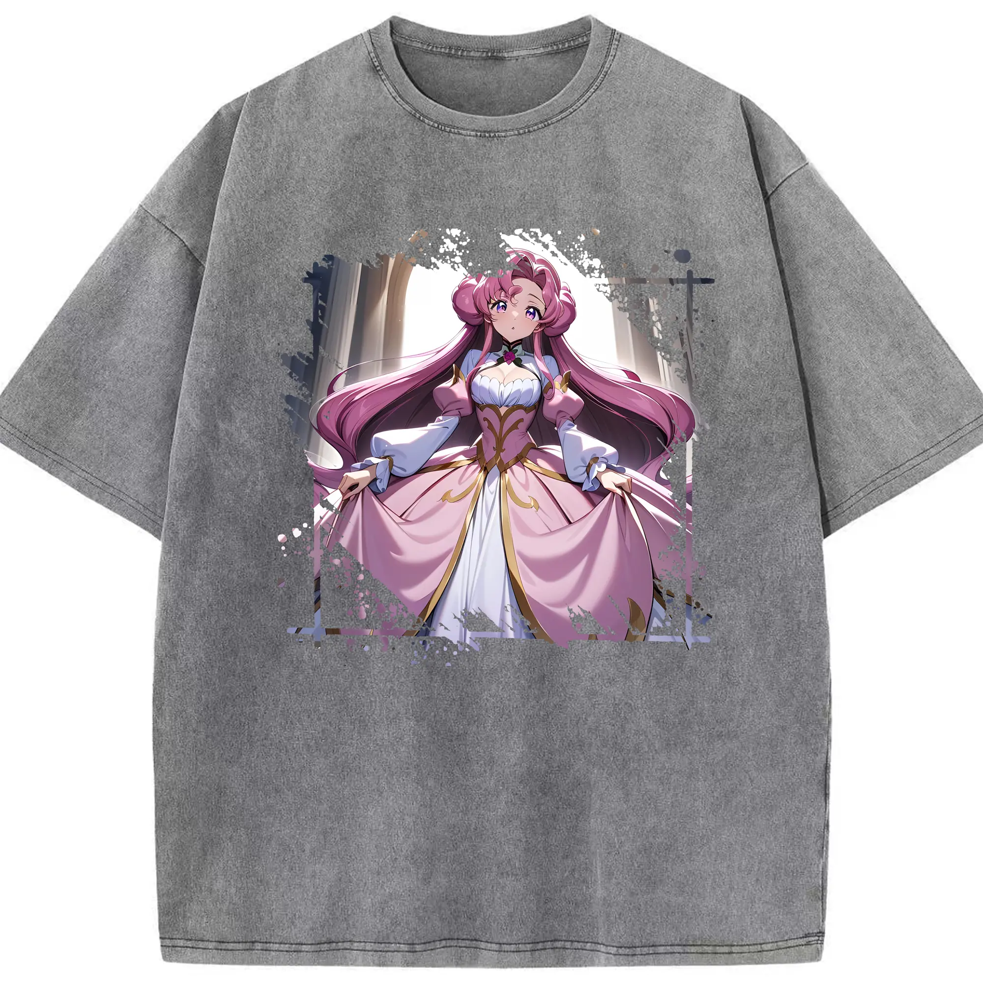 コードギアス 反逆のルルーシュ グッズ ユーフェミア・リ・ブリタニア - 綿100% ヴィンテージ風 半袖Tシャツ ・ 背面プリント ・ 柔らか肌触り ・ 通気性 快適 ・ スポーツ カジュアル 外出用