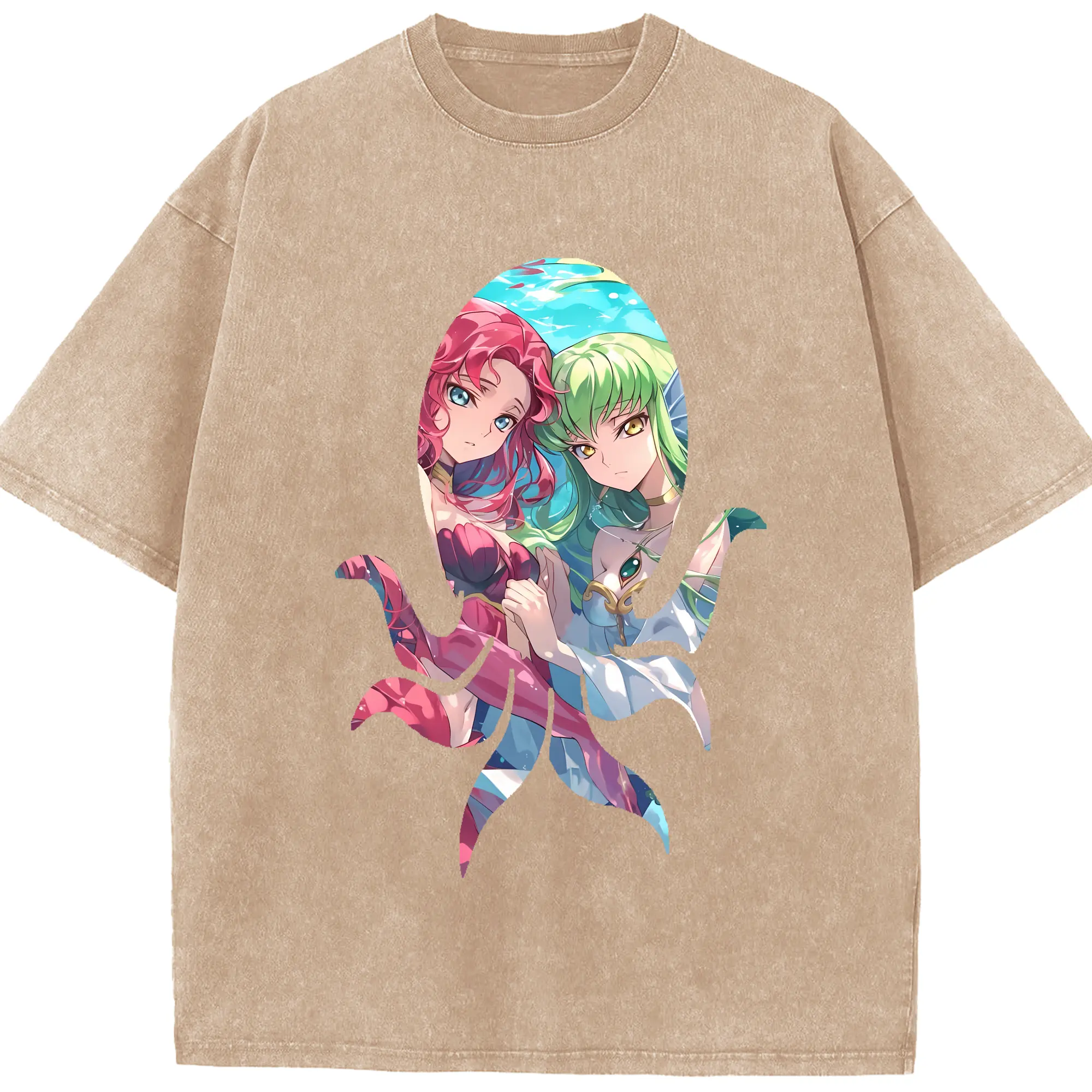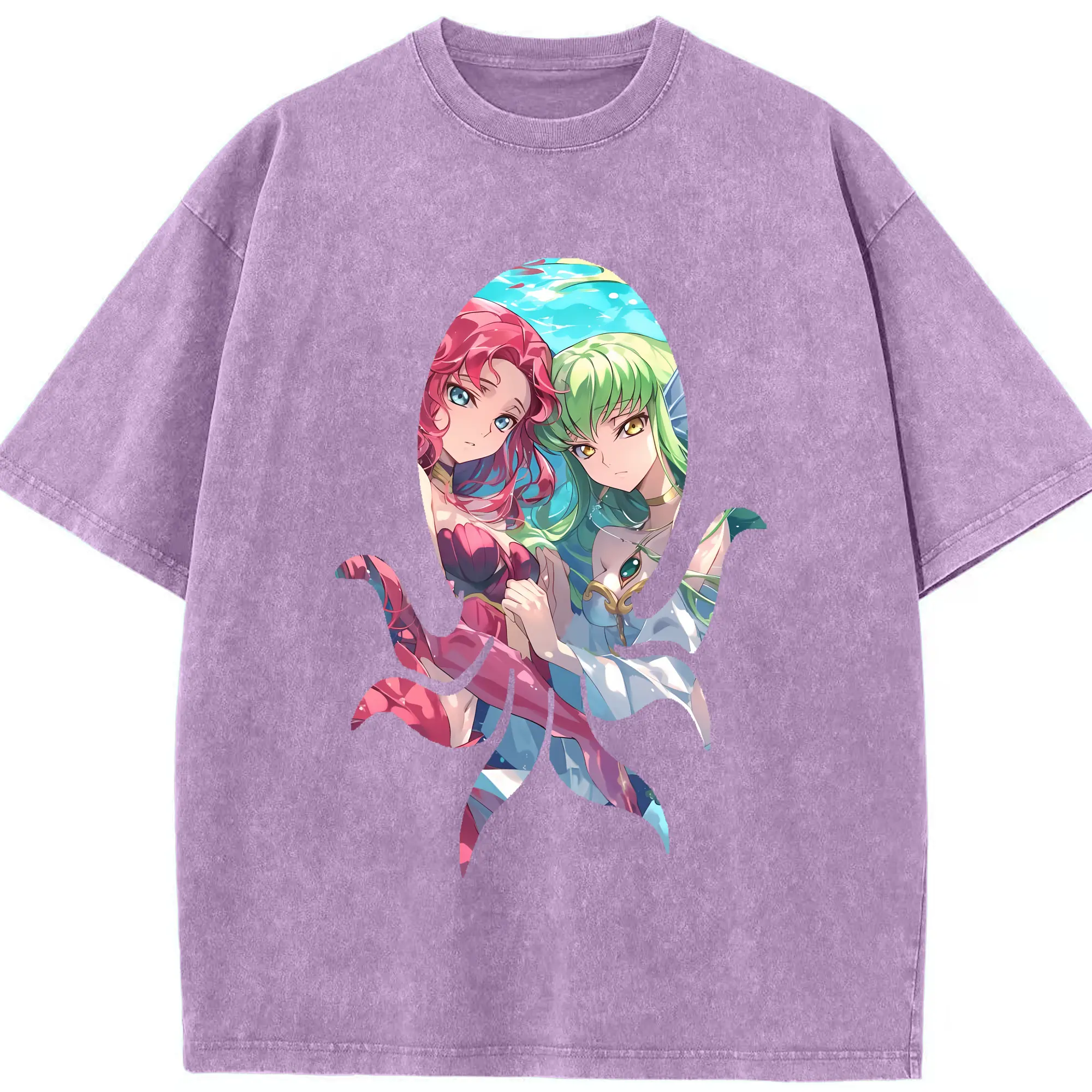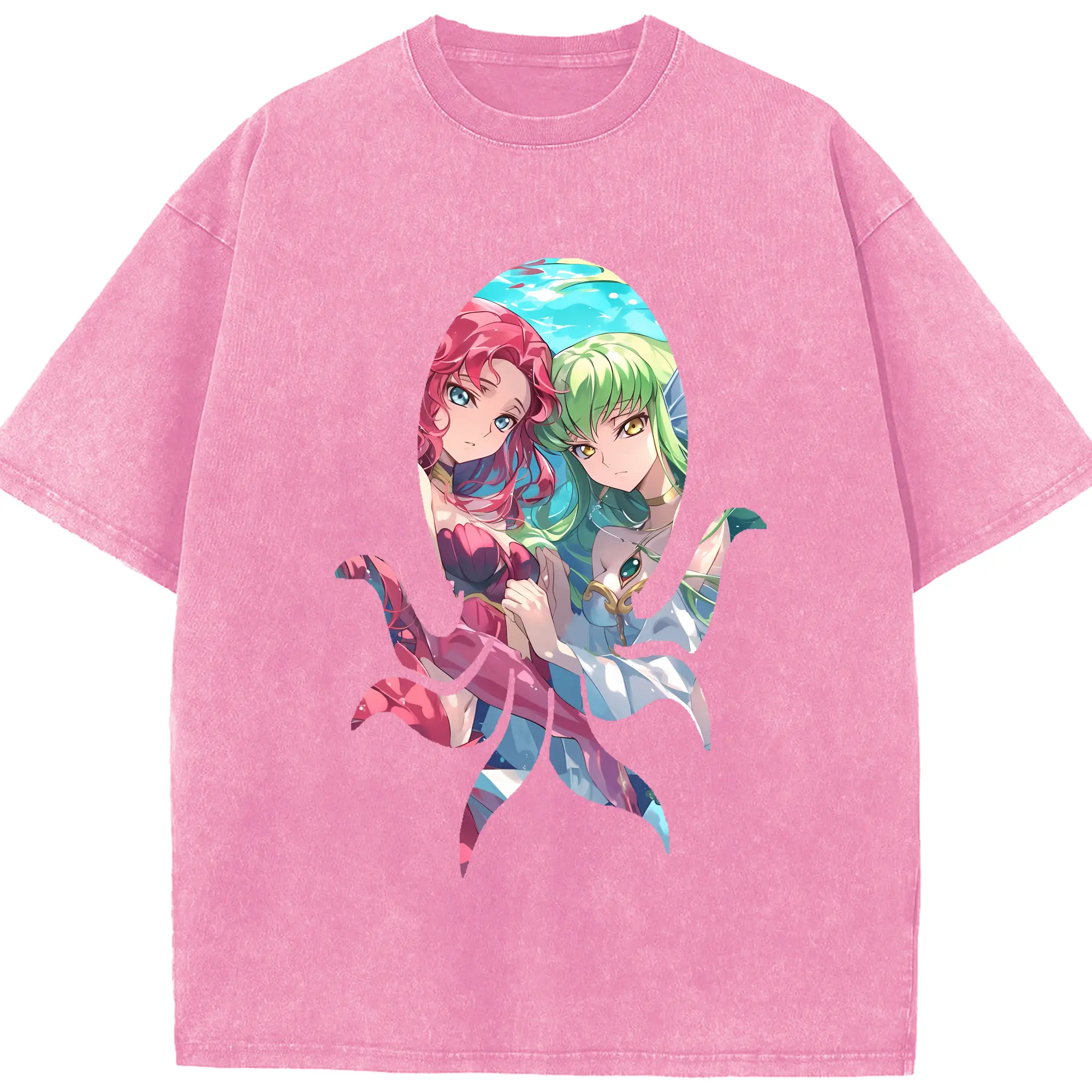コードギアス 反逆のルルーシュ グッズ ユーフェミア・リ・ブリタニア - 綿100% ヴィンテージ風 半袖Tシャツ ・ 背面プリント ・ 柔らか肌触り ・ 通気性 快適 ・ スポーツ カジュアル 外出用