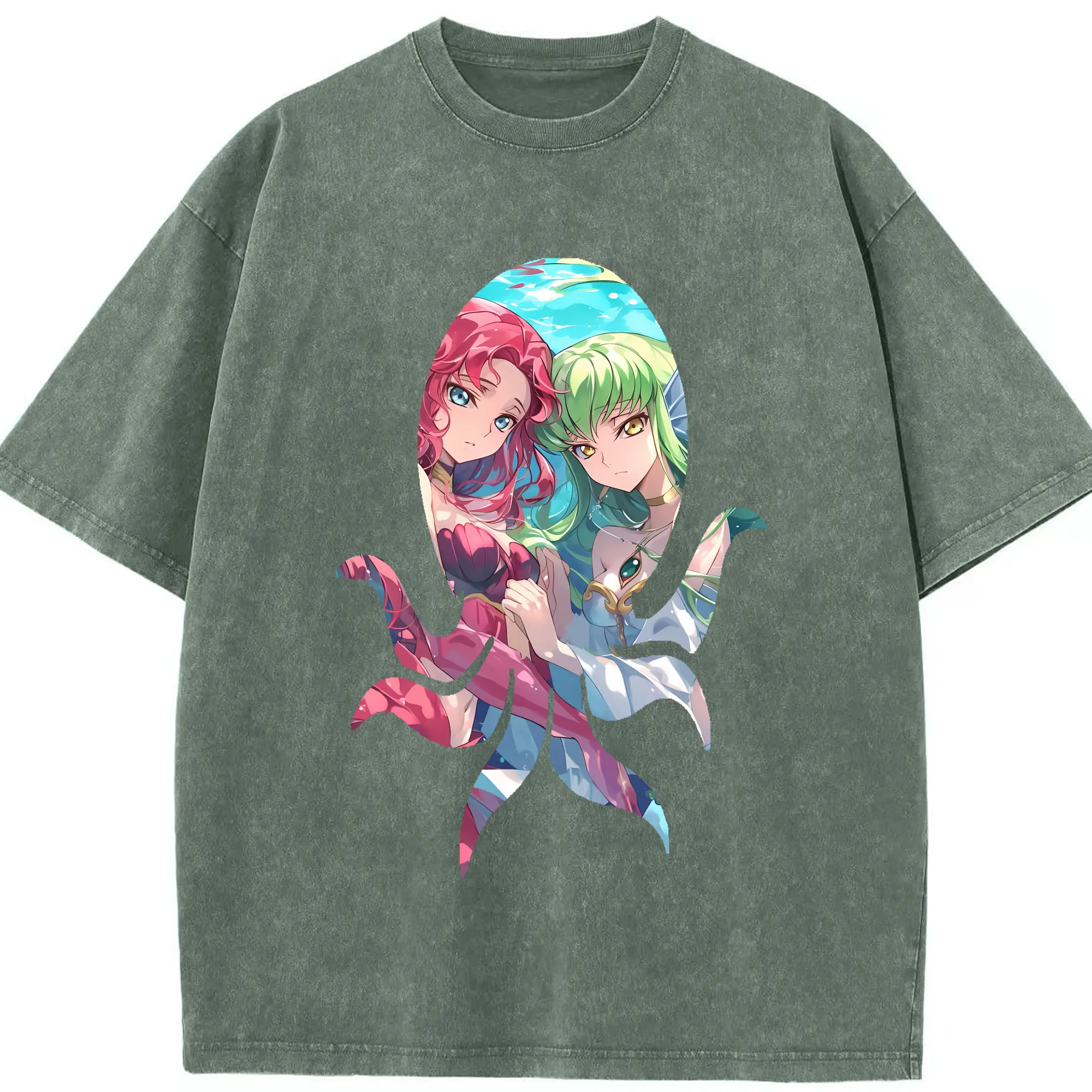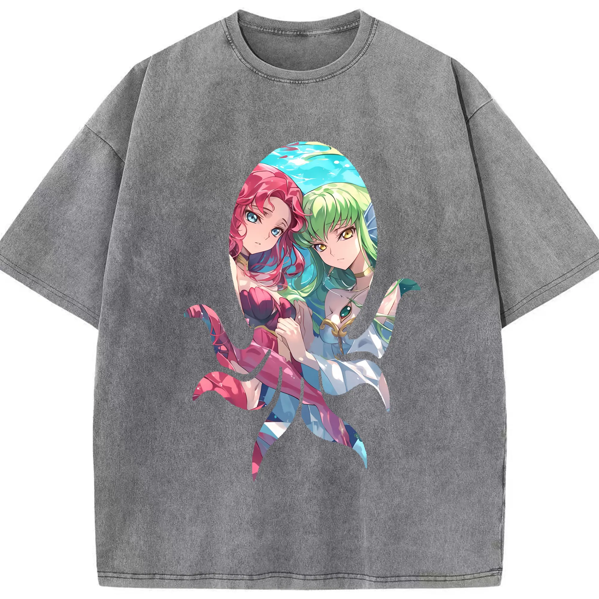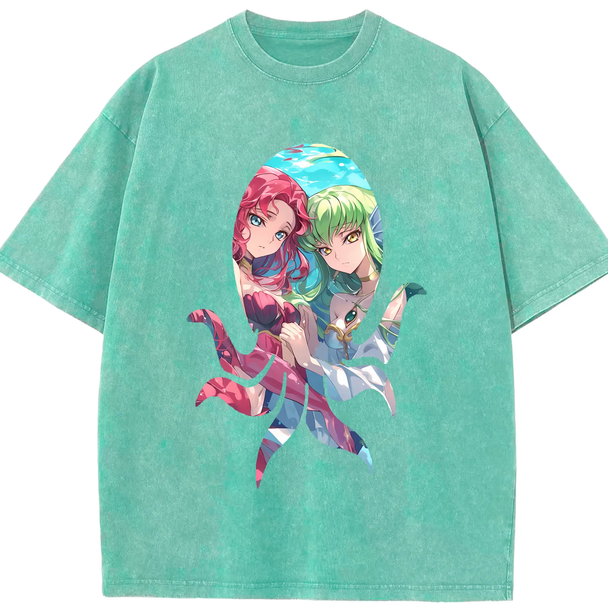 コードギアス 反逆のルルーシュ グッズ ユーフェミア・リ・ブリタニア - 綿100% ヴィンテージ風 半袖Tシャツ ・ 背面プリント ・ 柔らか肌触り ・ 通気性 快適 ・ スポーツ カジュアル 外出用