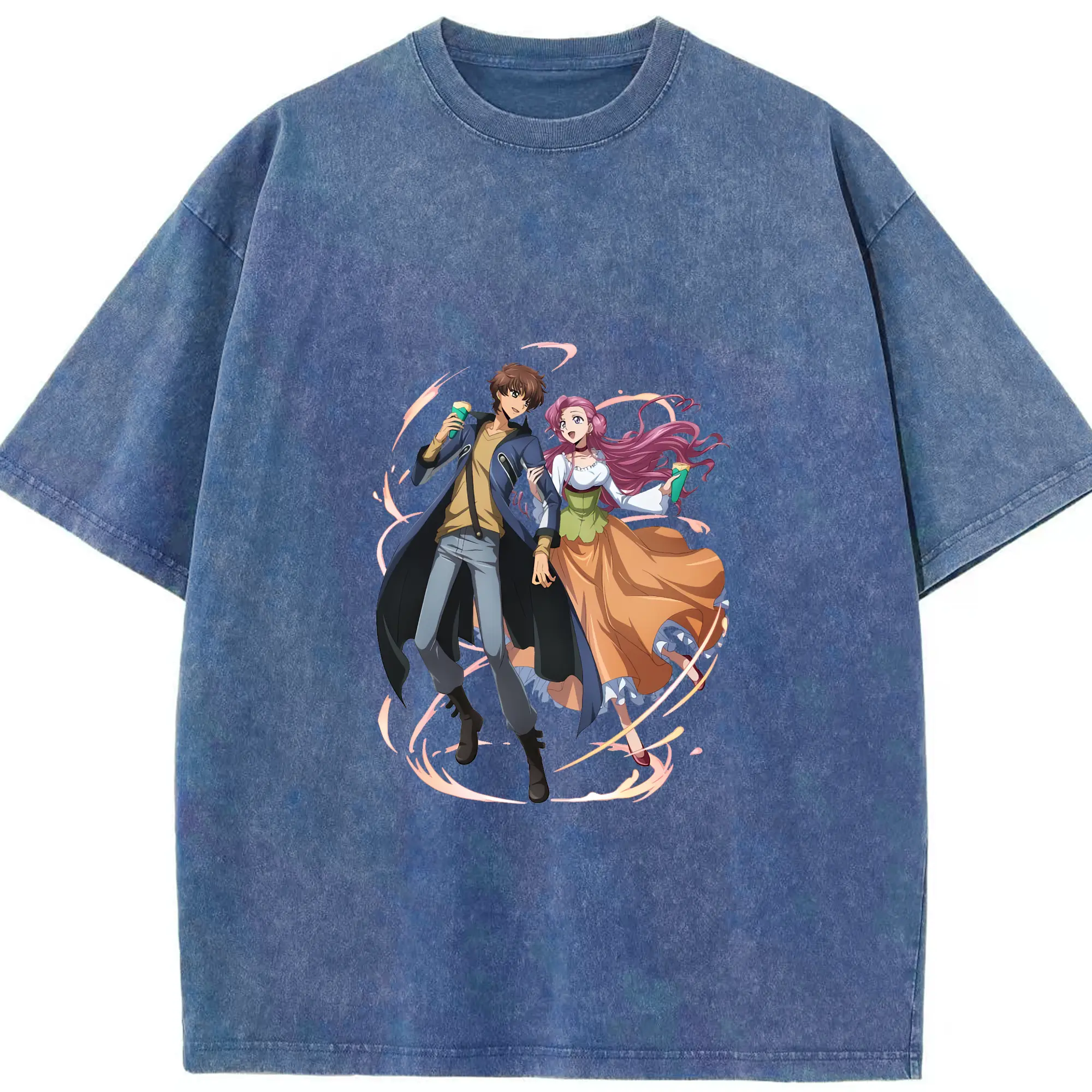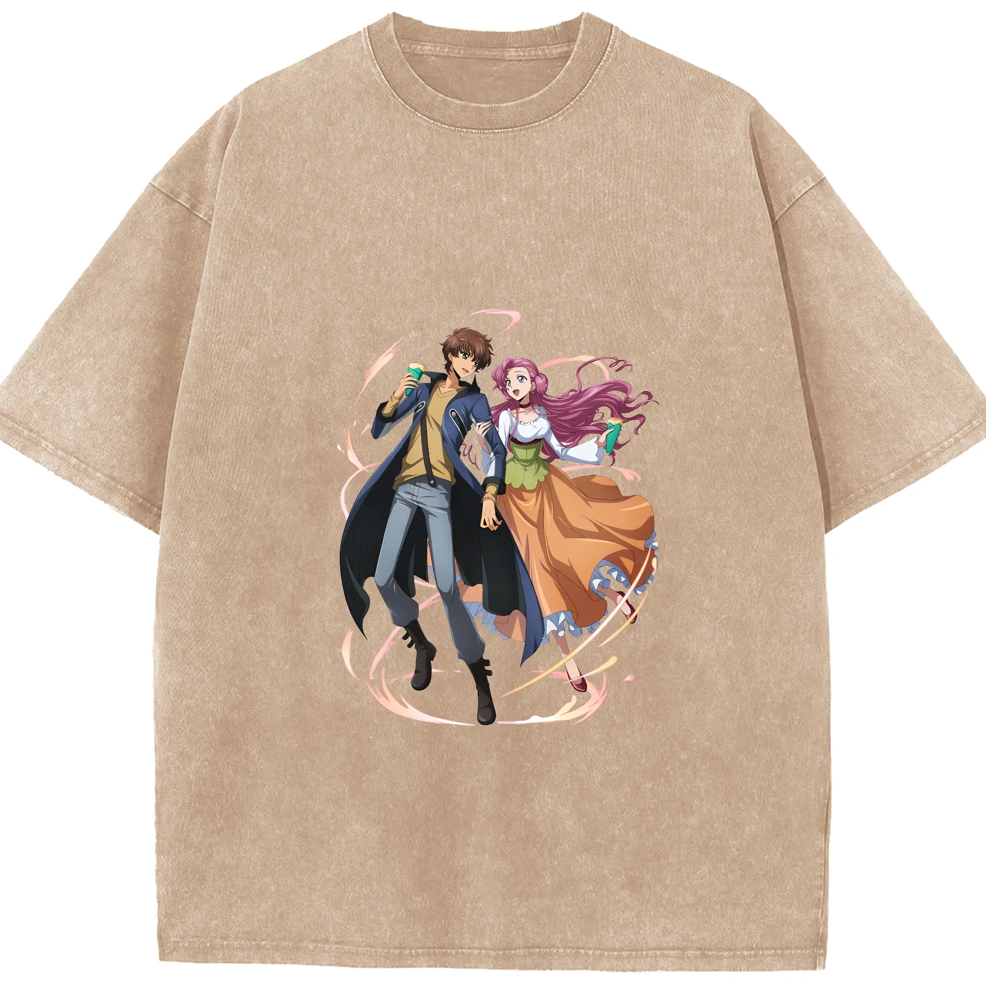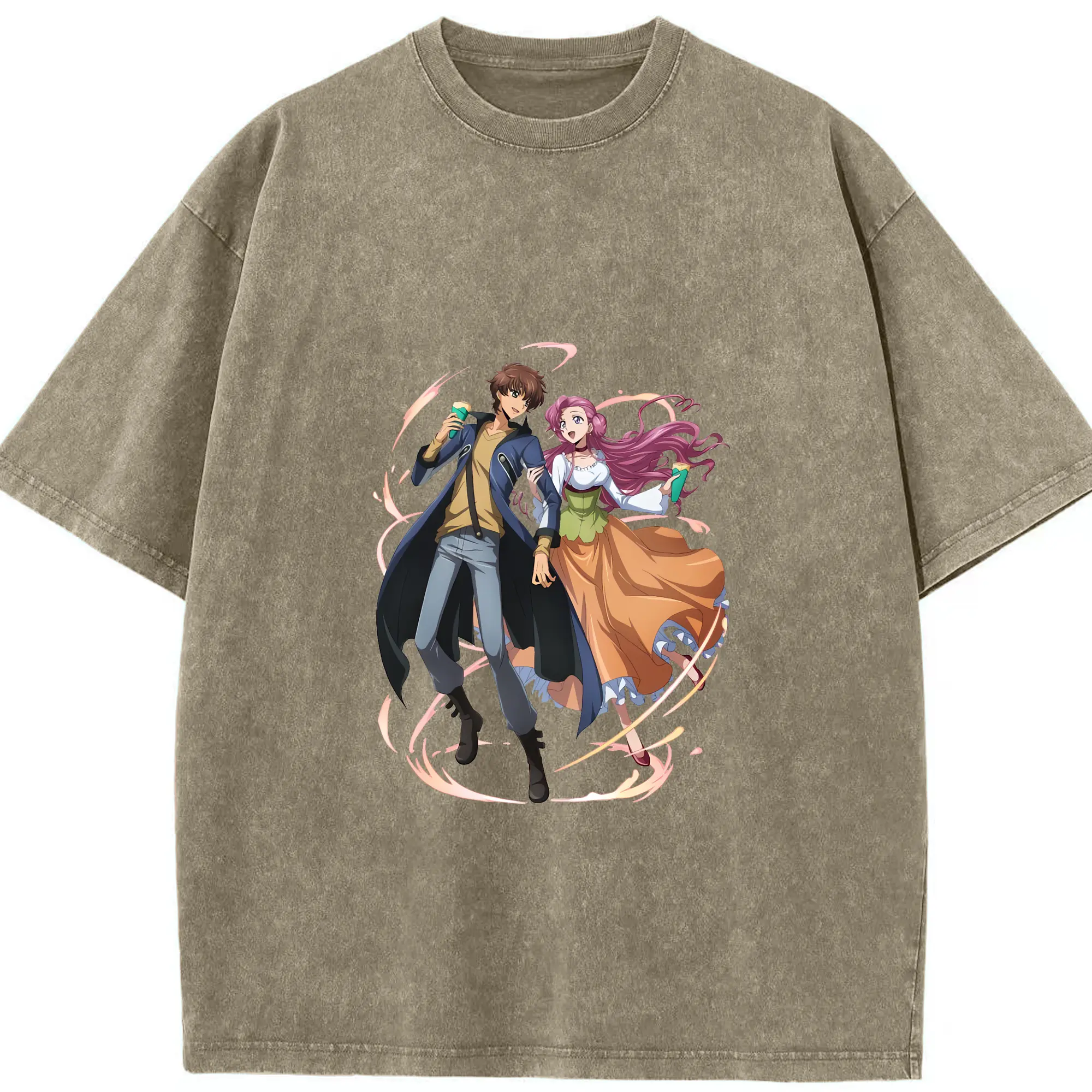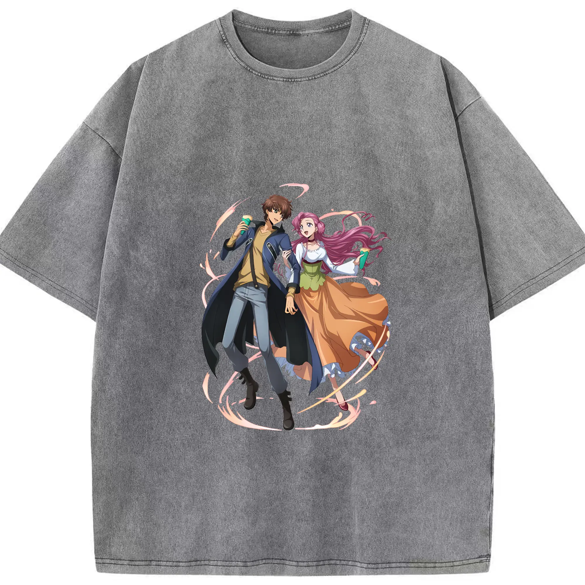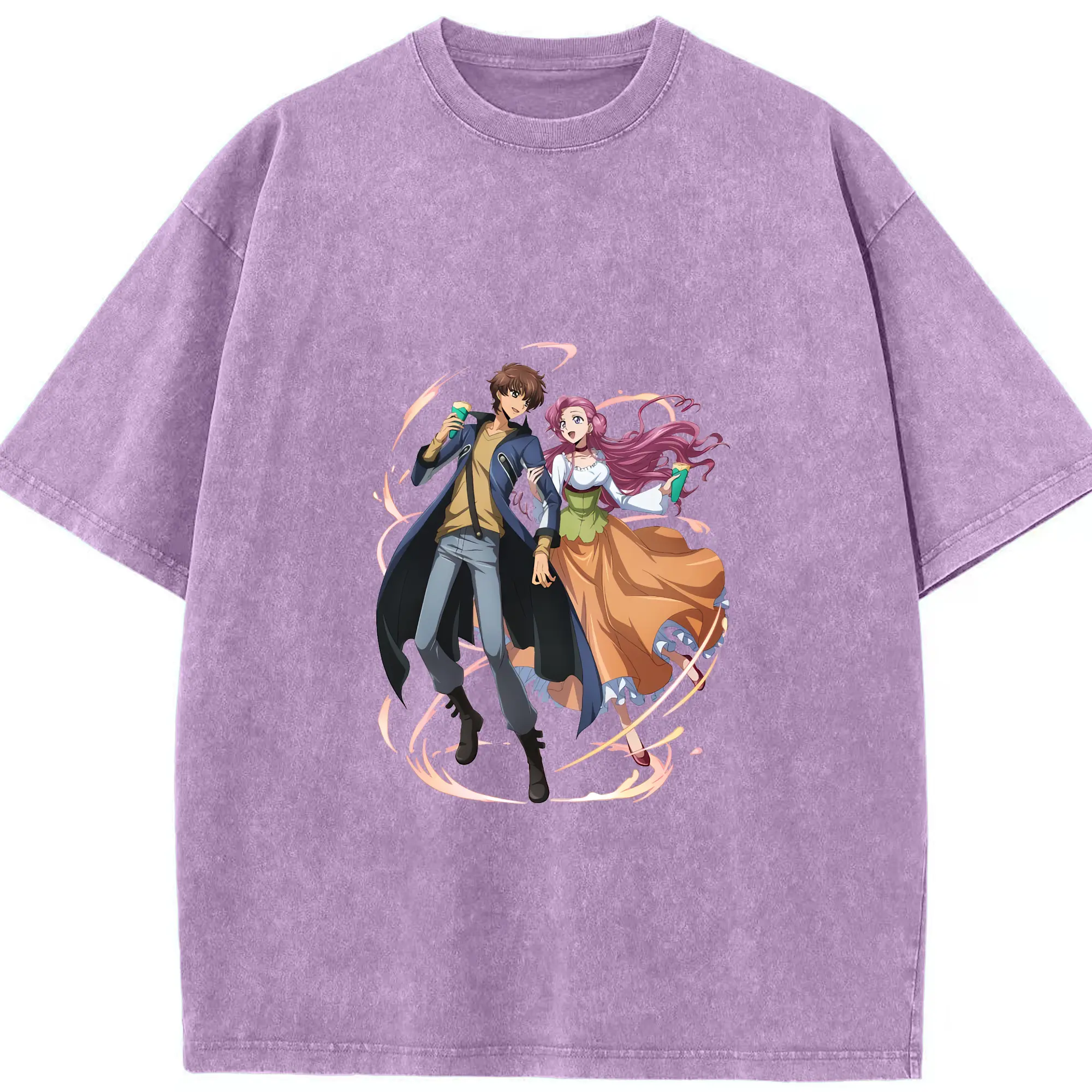 コードギアス 反逆のルルーシュ グッズ ユーフェミア・リ・ブリタニア - 綿100% ヴィンテージ風 半袖Tシャツ ・ 背面プリント ・ 柔らか肌触り ・ 通気性 快適 ・ スポーツ カジュアル 外出用