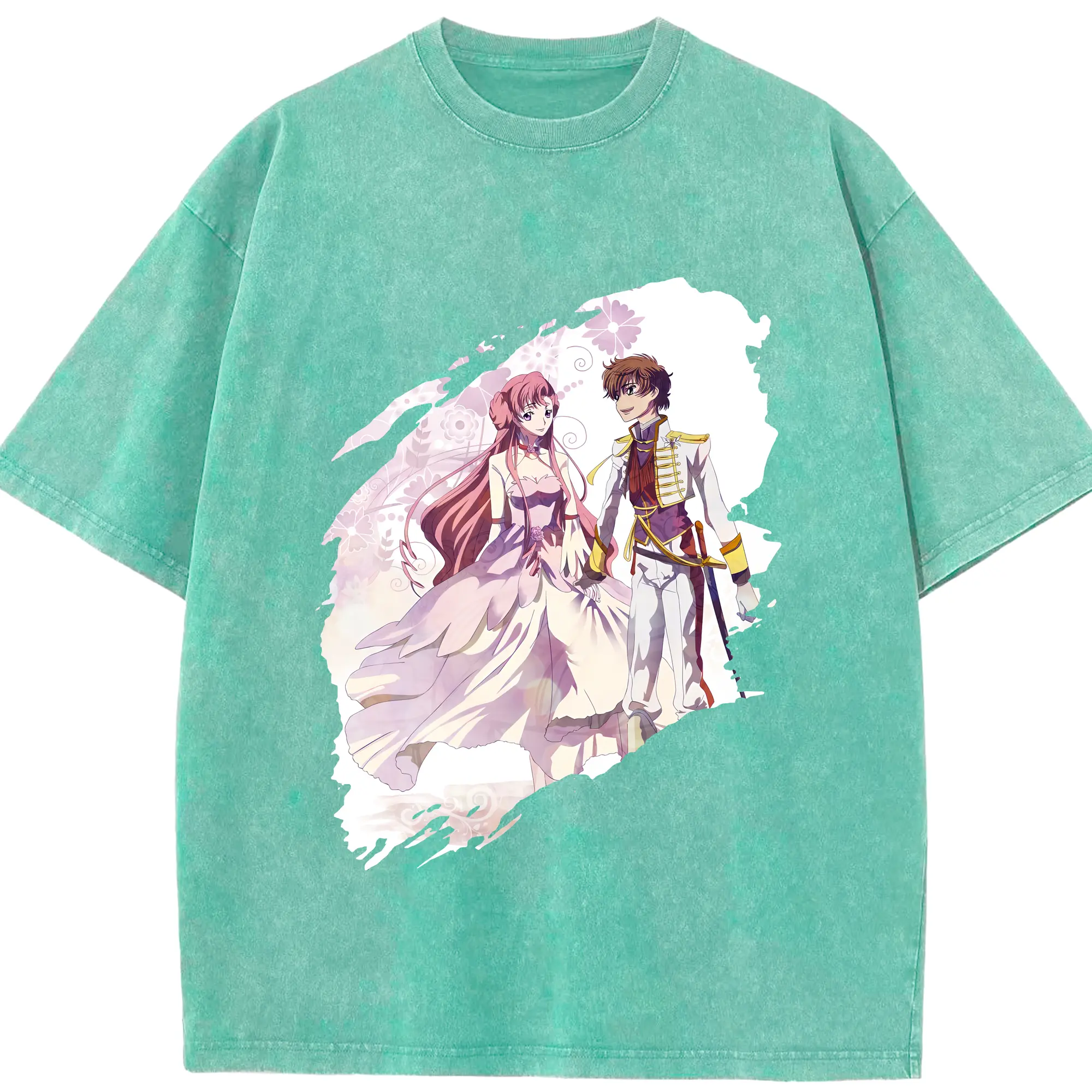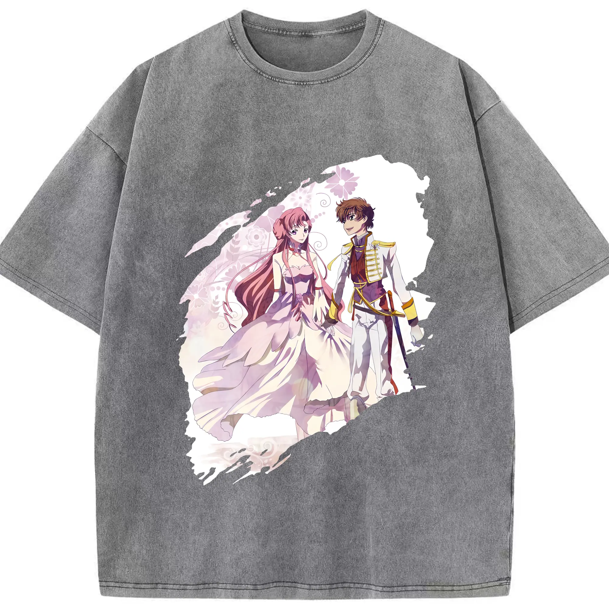 コードギアス 反逆のルルーシュ グッズ ユーフェミア・リ・ブリタニア - 綿100% ヴィンテージ風 半袖Tシャツ ・ 背面プリント ・ 柔らか肌触り ・ 通気性 快適 ・ スポーツ カジュアル 外出用