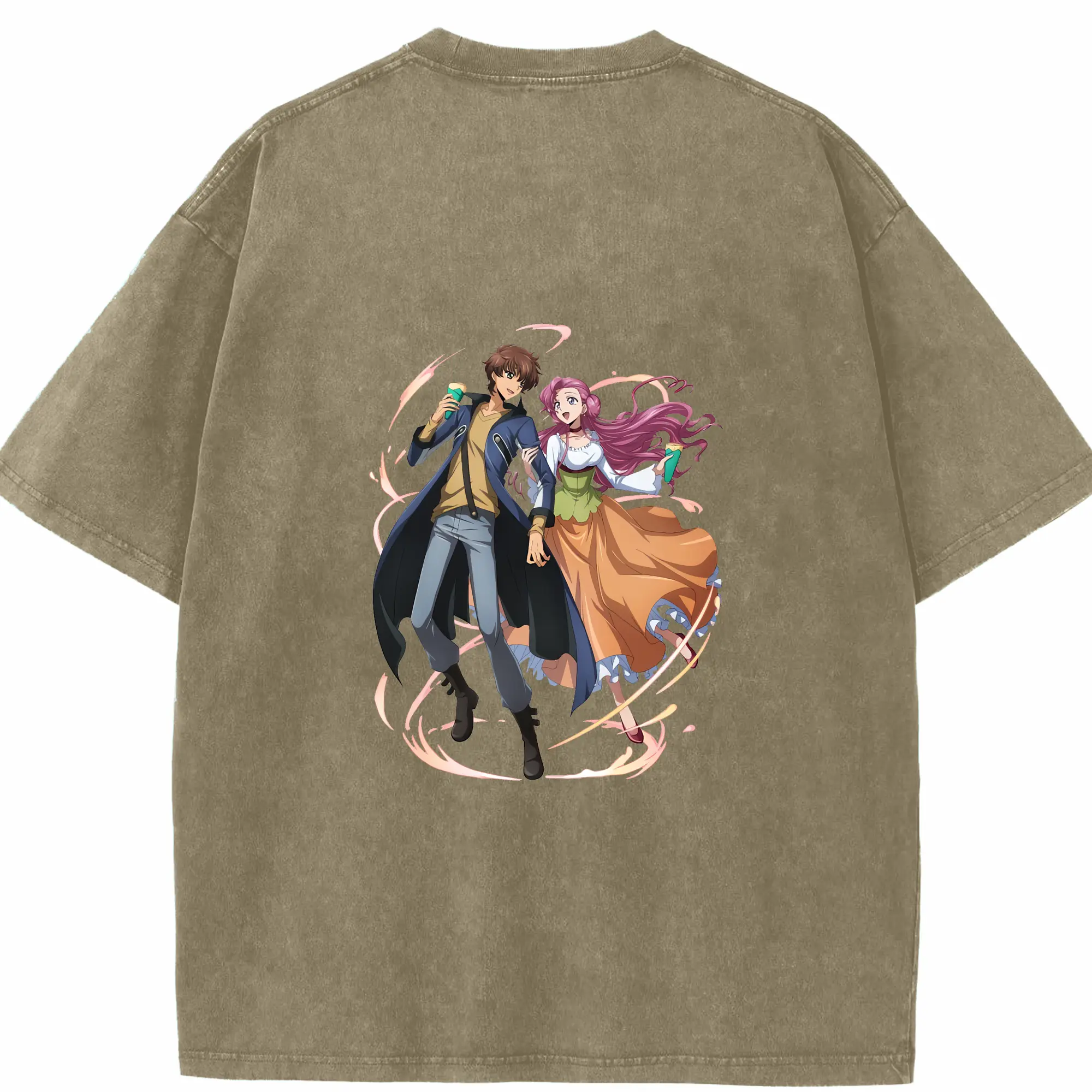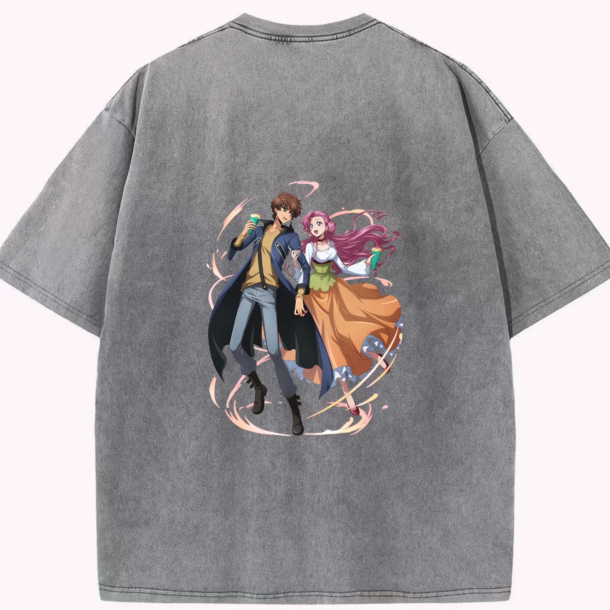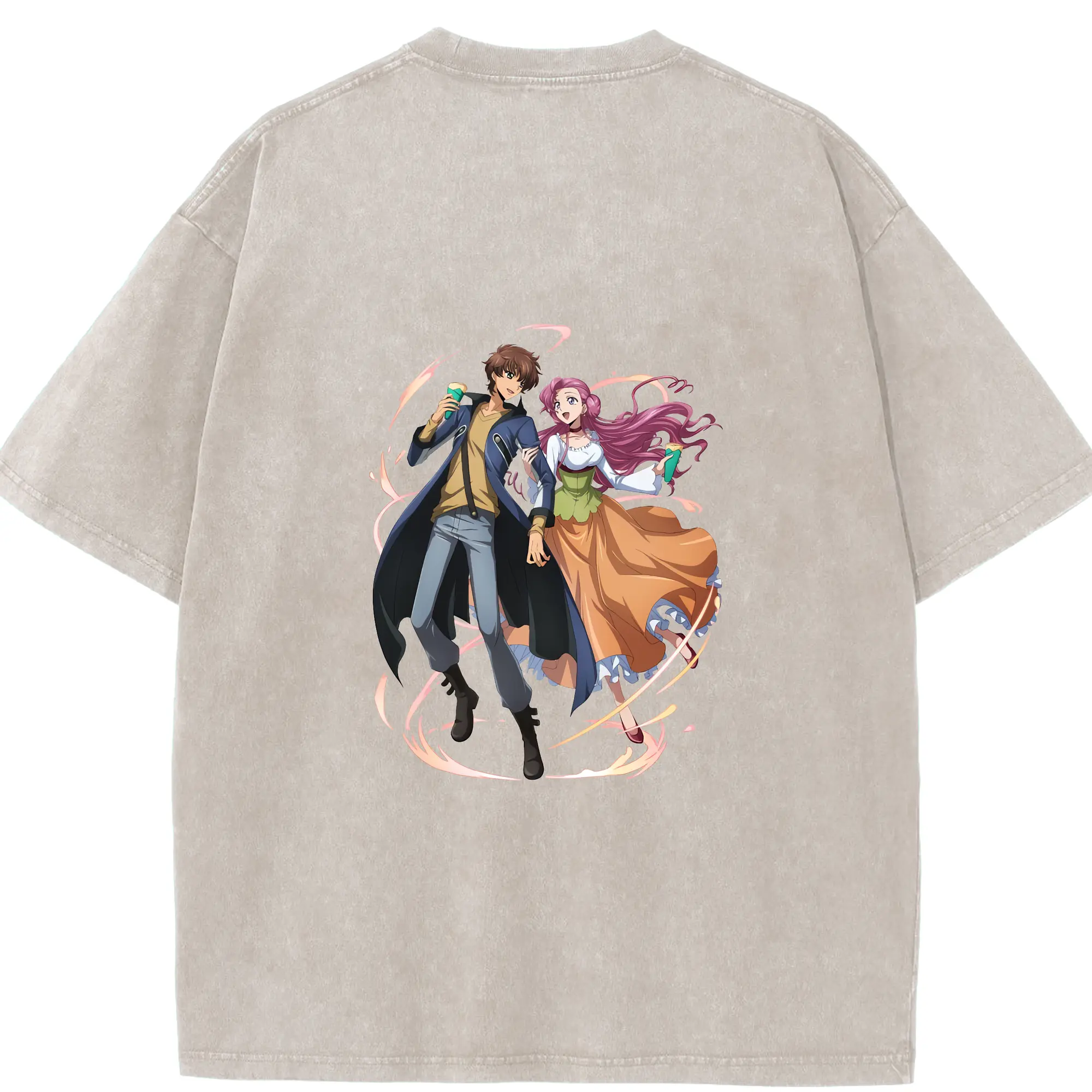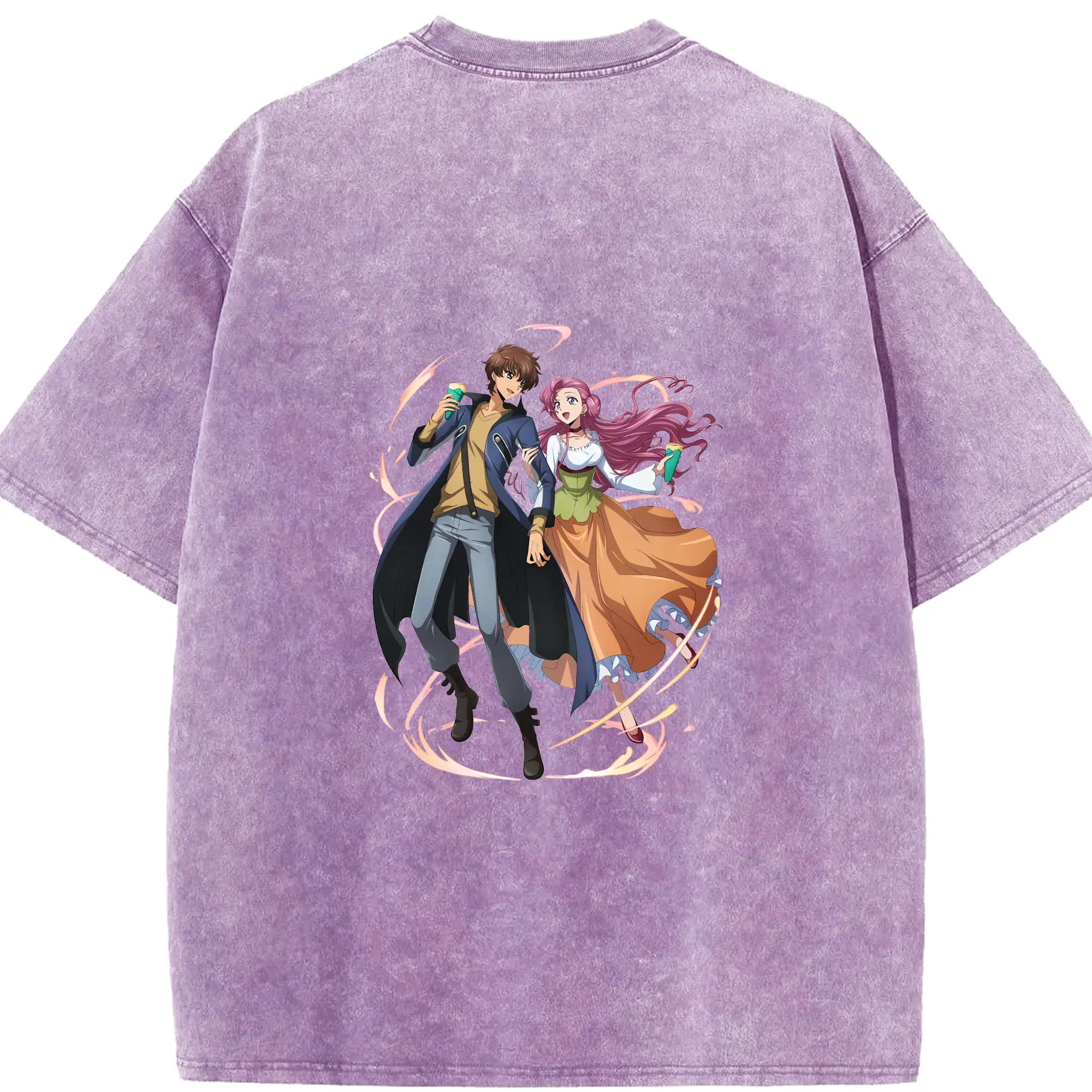 コードギアス 反逆のルルーシュ グッズ ユーフェミア・リ・ブリタニア - 綿100% ヴィンテージ風 半袖Tシャツ ・ フロントプリント ・ 柔らか肌触り ・ 通気性 快適 ・ スポーツ カジュアル 外出用