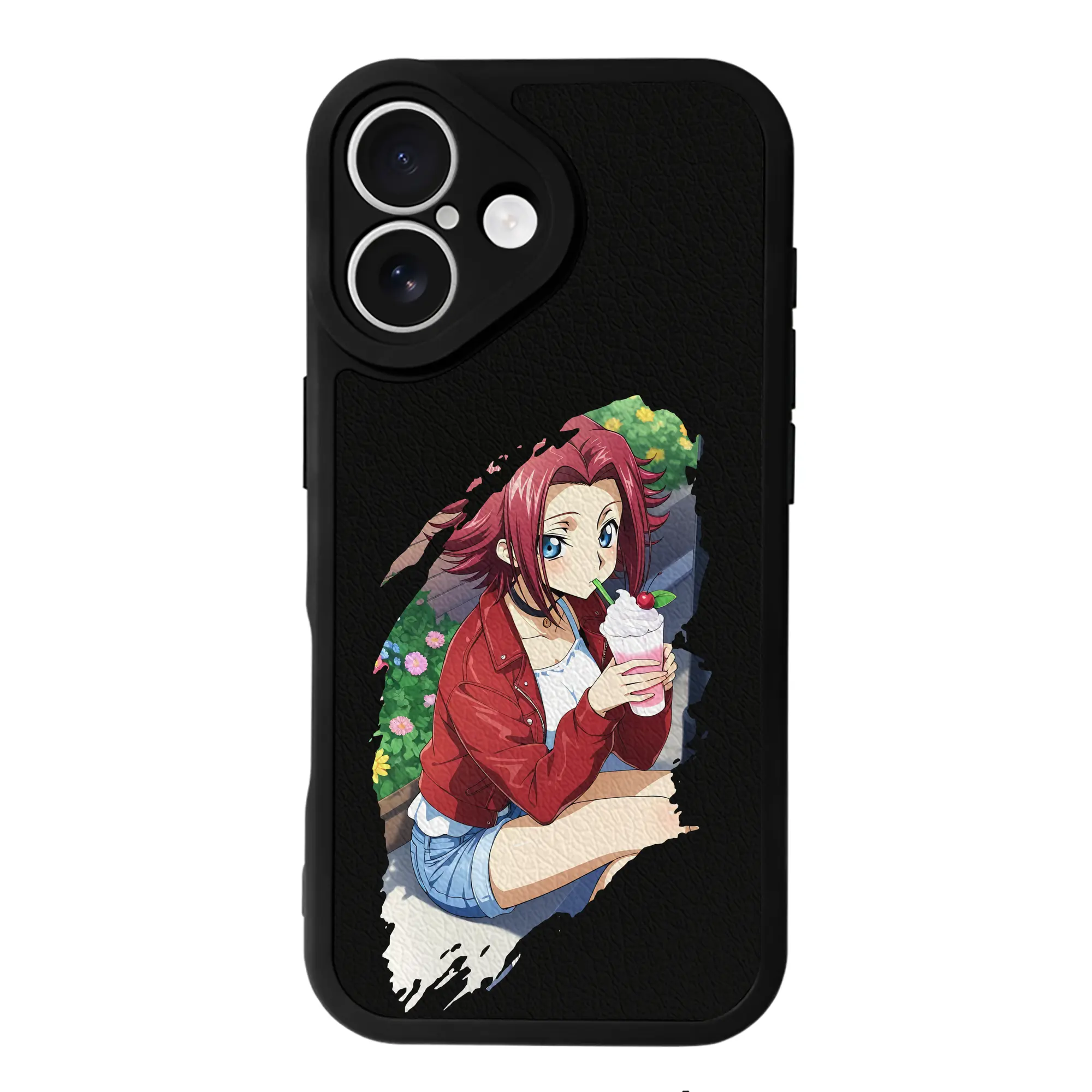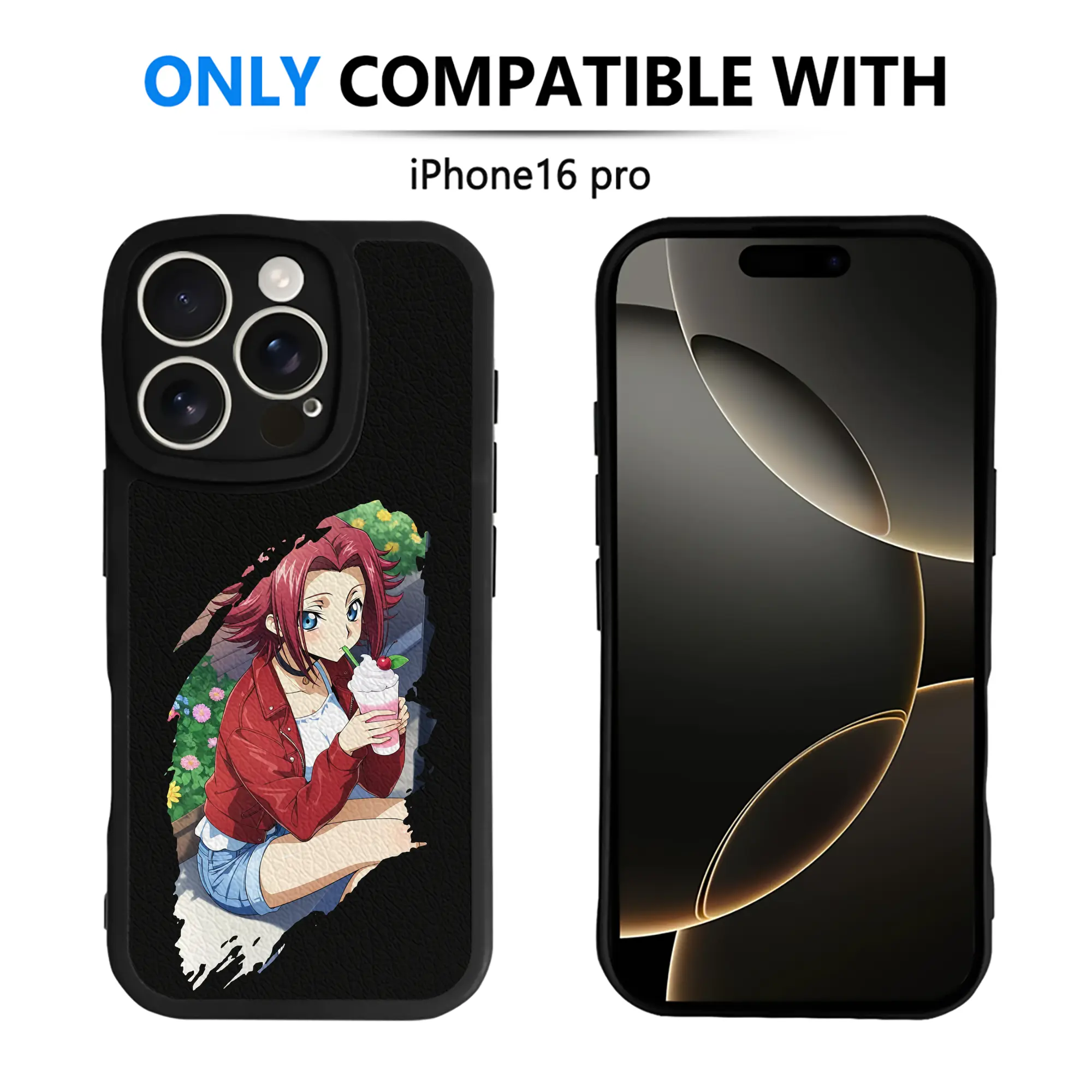 コードギアス 反逆のルルーシュ グッズ カレン・シュタットフェルト - IPhone 16シリーズ対応 ・ シリコンスマホケース ・ レザー調 ・ 高精度フィット ・ 耐衝撃 ・ ワイヤレス充電対応 ・ 精密カット
