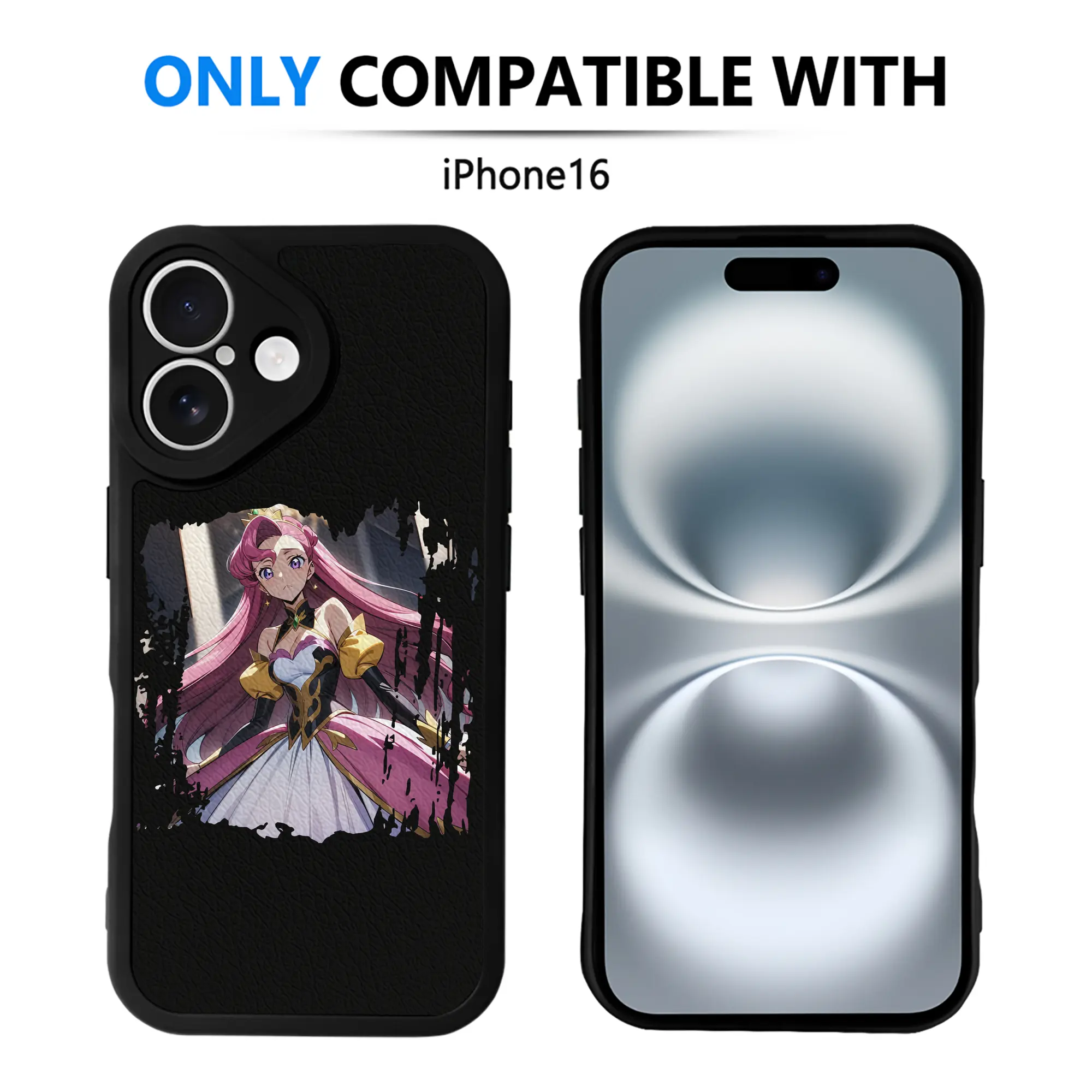 コードギアス 反逆のルルーシュ グッズ ユーフェミア・リ・ブリタニア - IPhone 16シリーズ対応 ・ シリコンスマホケース ・ レザー調 ・ 高精度フィット ・ 耐衝撃 ・ ワイヤレス充電対応 ・ 精密カット