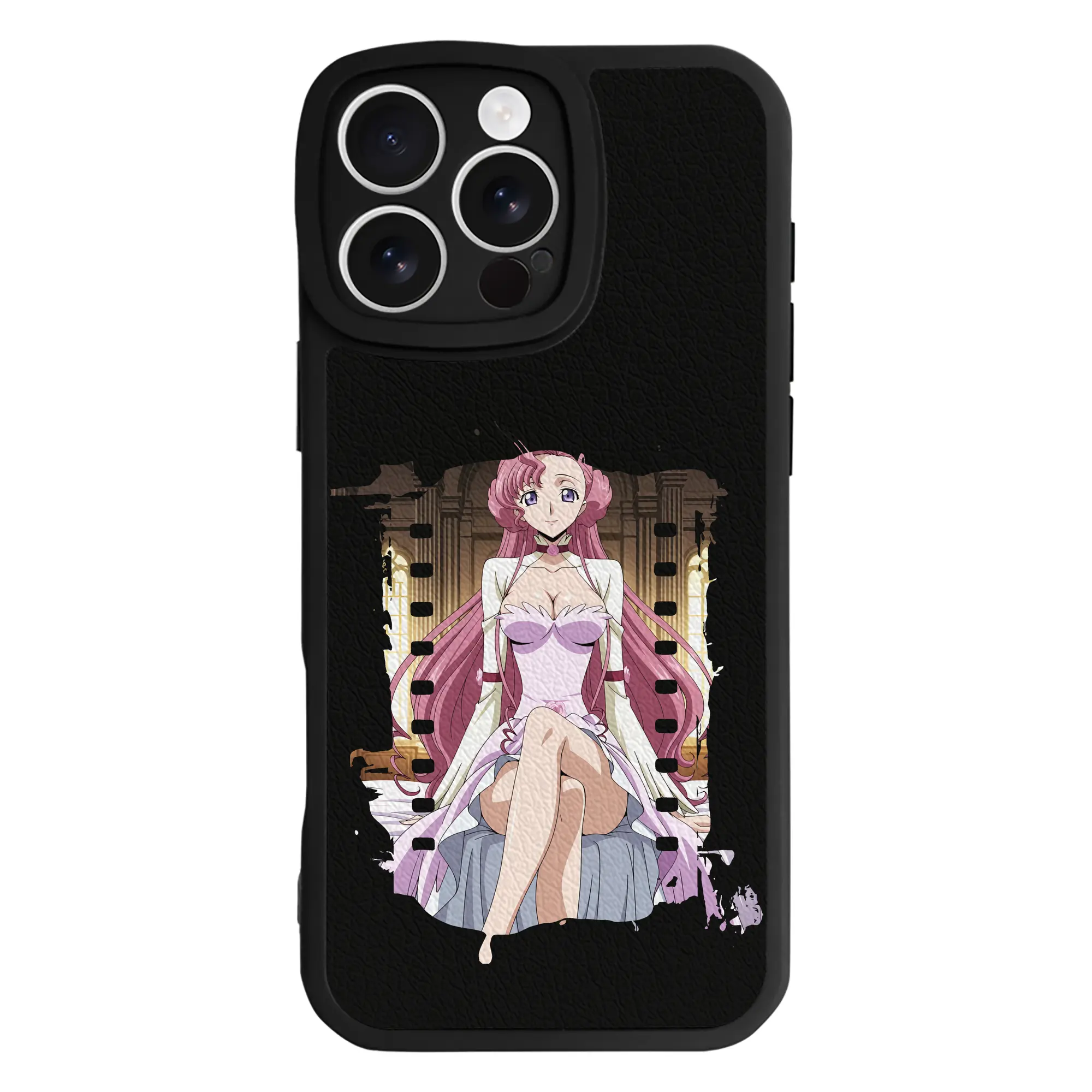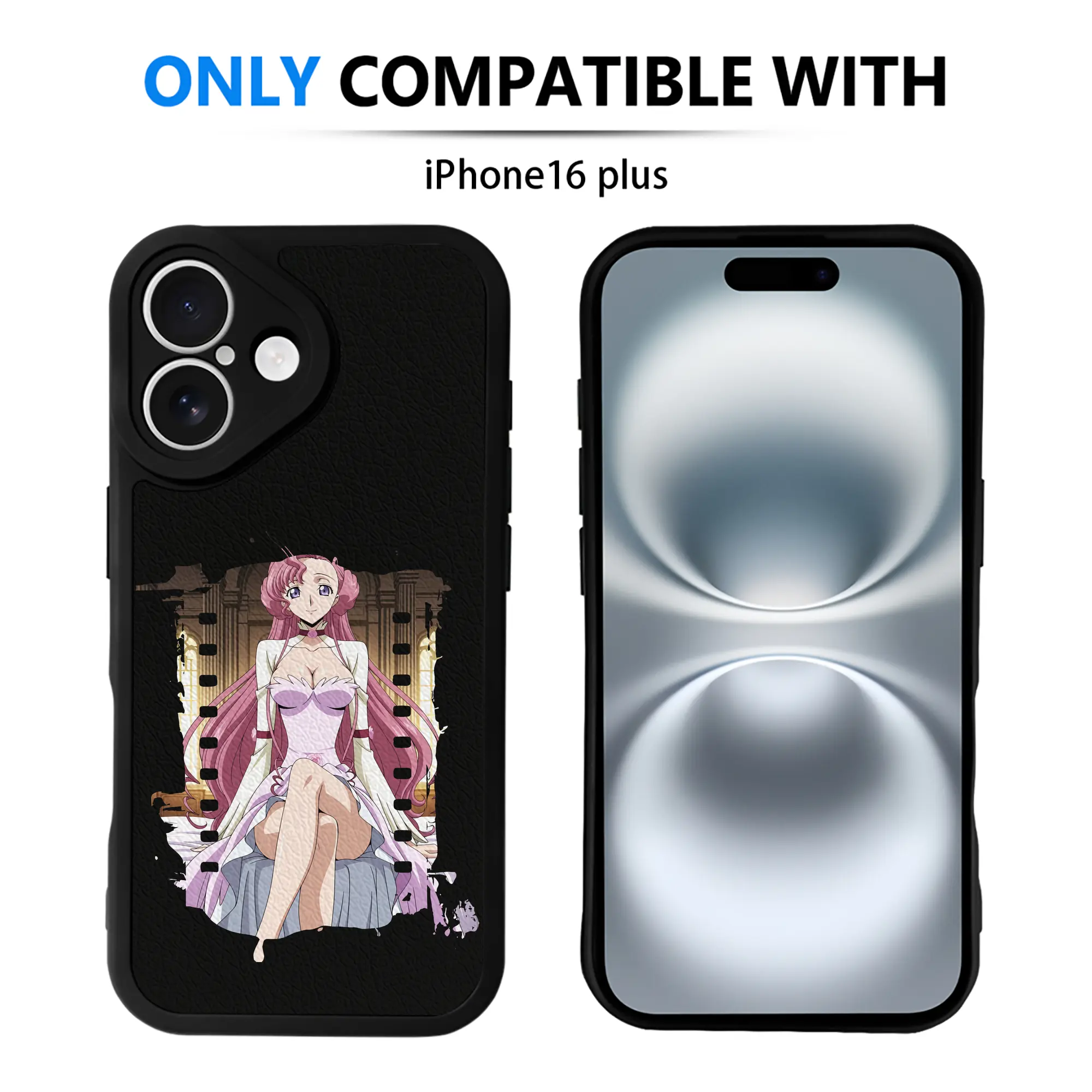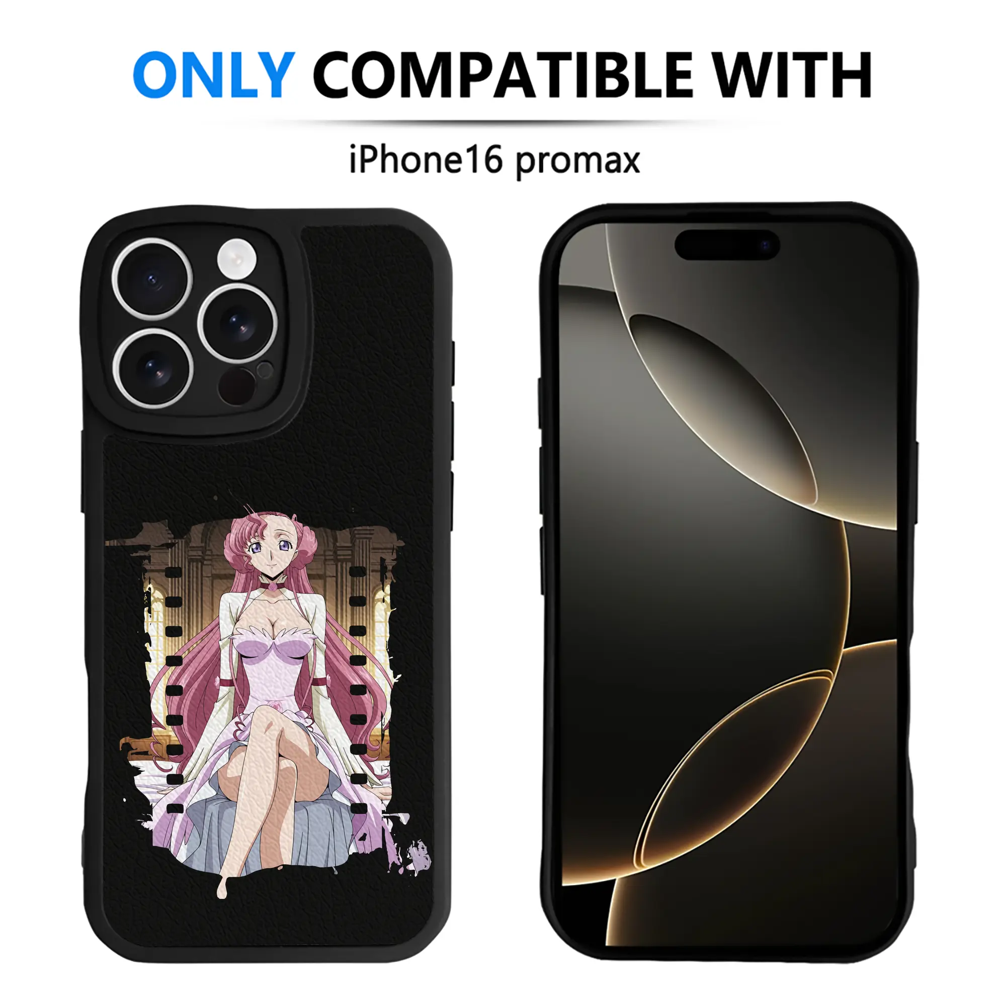 コードギアス 反逆のルルーシュ グッズ ユーフェミア・リ・ブリタニア - IPhone 16シリーズ対応 ・ シリコンスマホケース ・ レザー調 ・ 高精度フィット ・ 耐衝撃 ・ ワイヤレス充電対応 ・ 精密カット