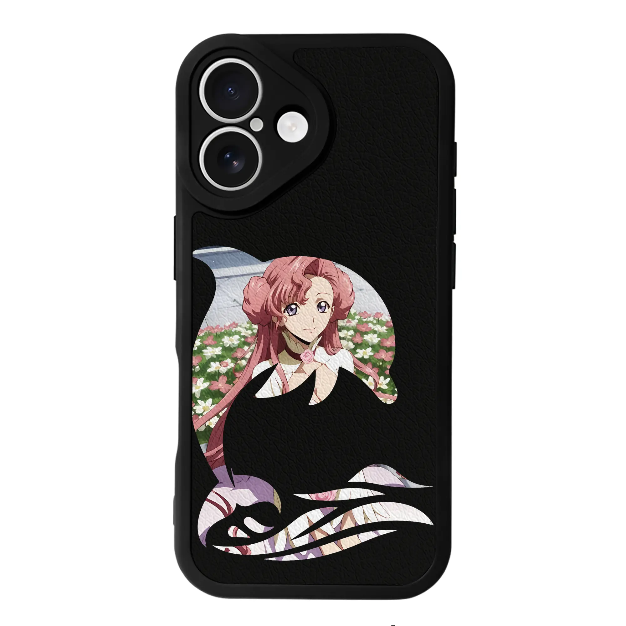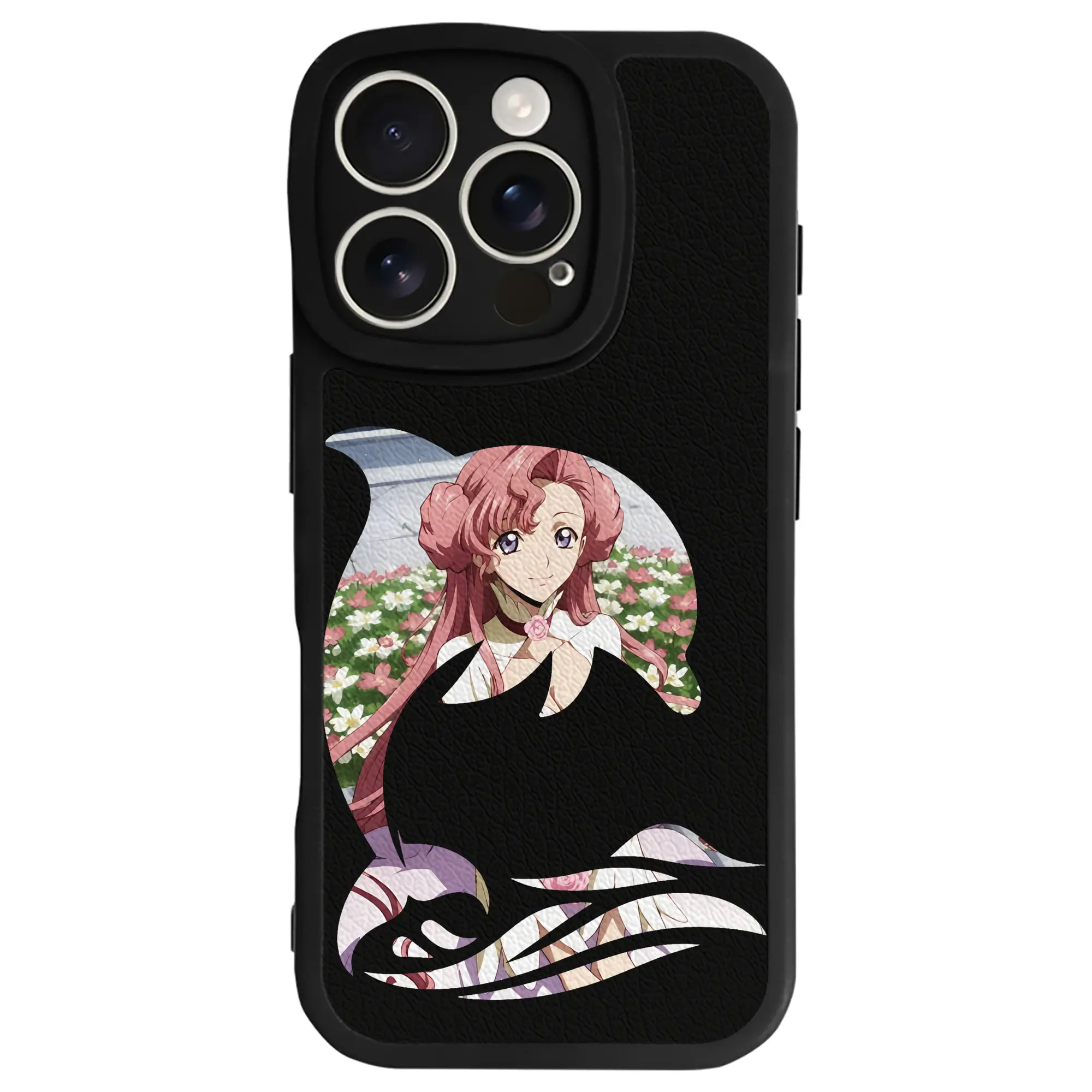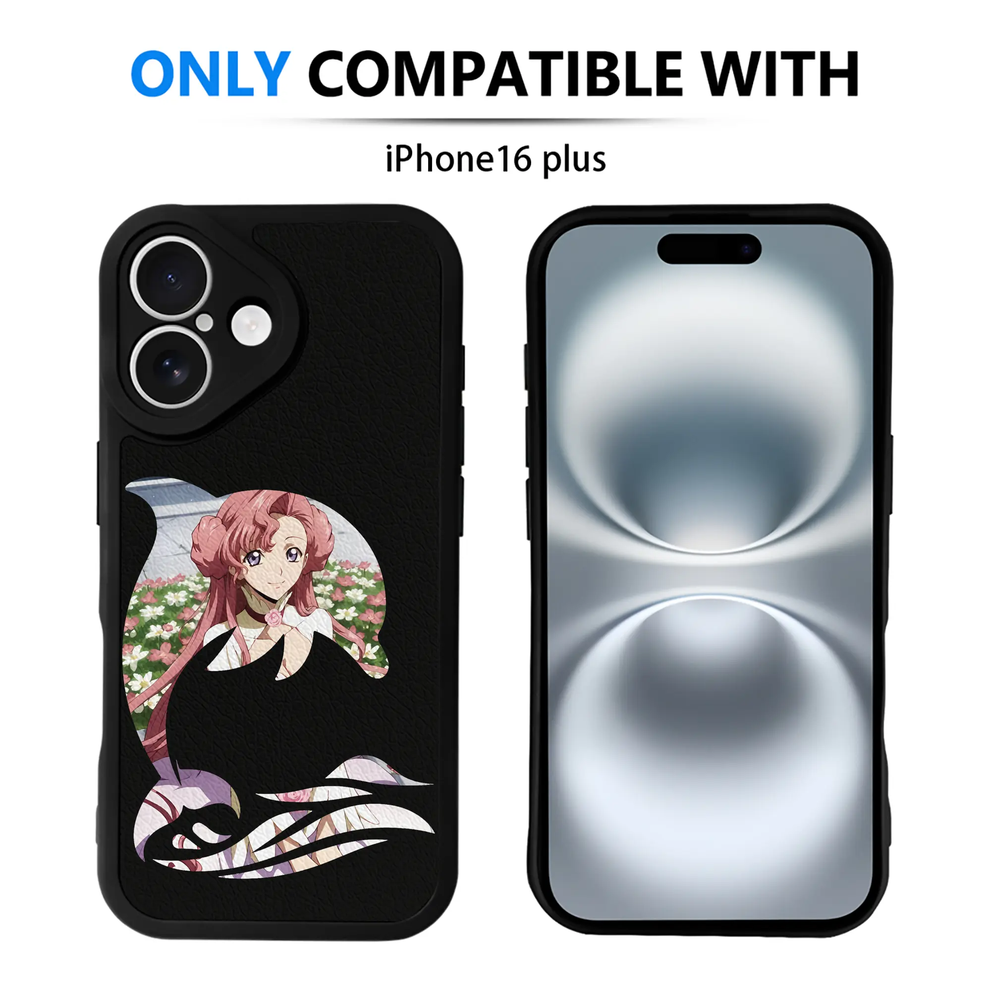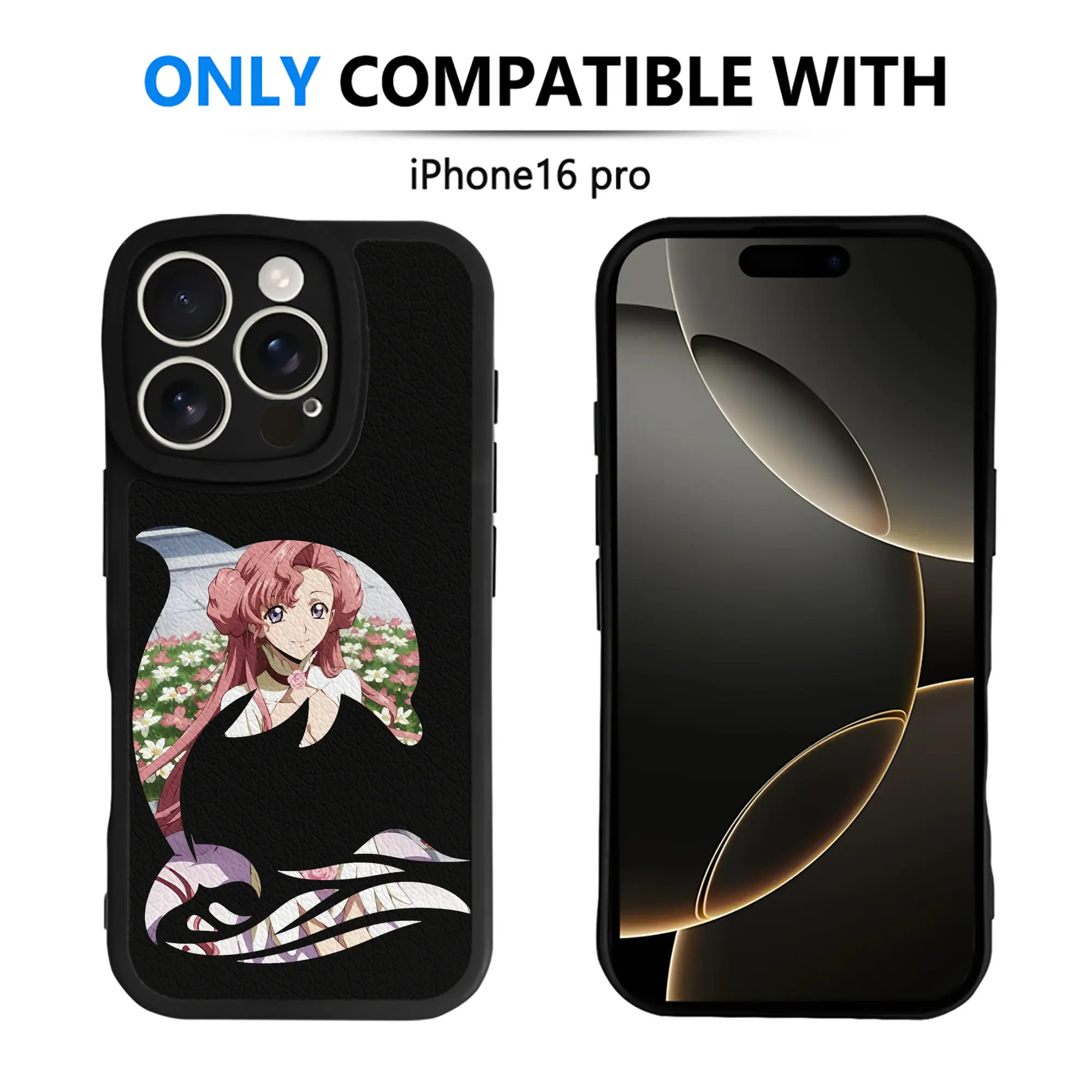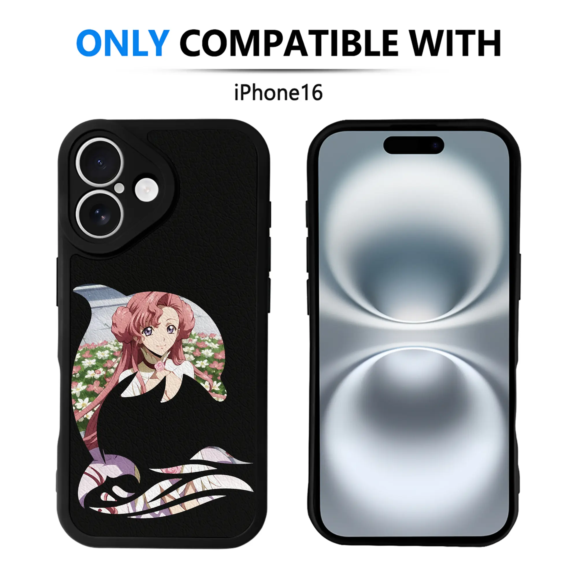 コードギアス 反逆のルルーシュ グッズ ユーフェミア・リ・ブリタニア - IPhone 16シリーズ対応 ・ シリコンスマホケース ・ レザー調 ・ 高精度フィット ・ 耐衝撃 ・ ワイヤレス充電対応 ・ 精密カット