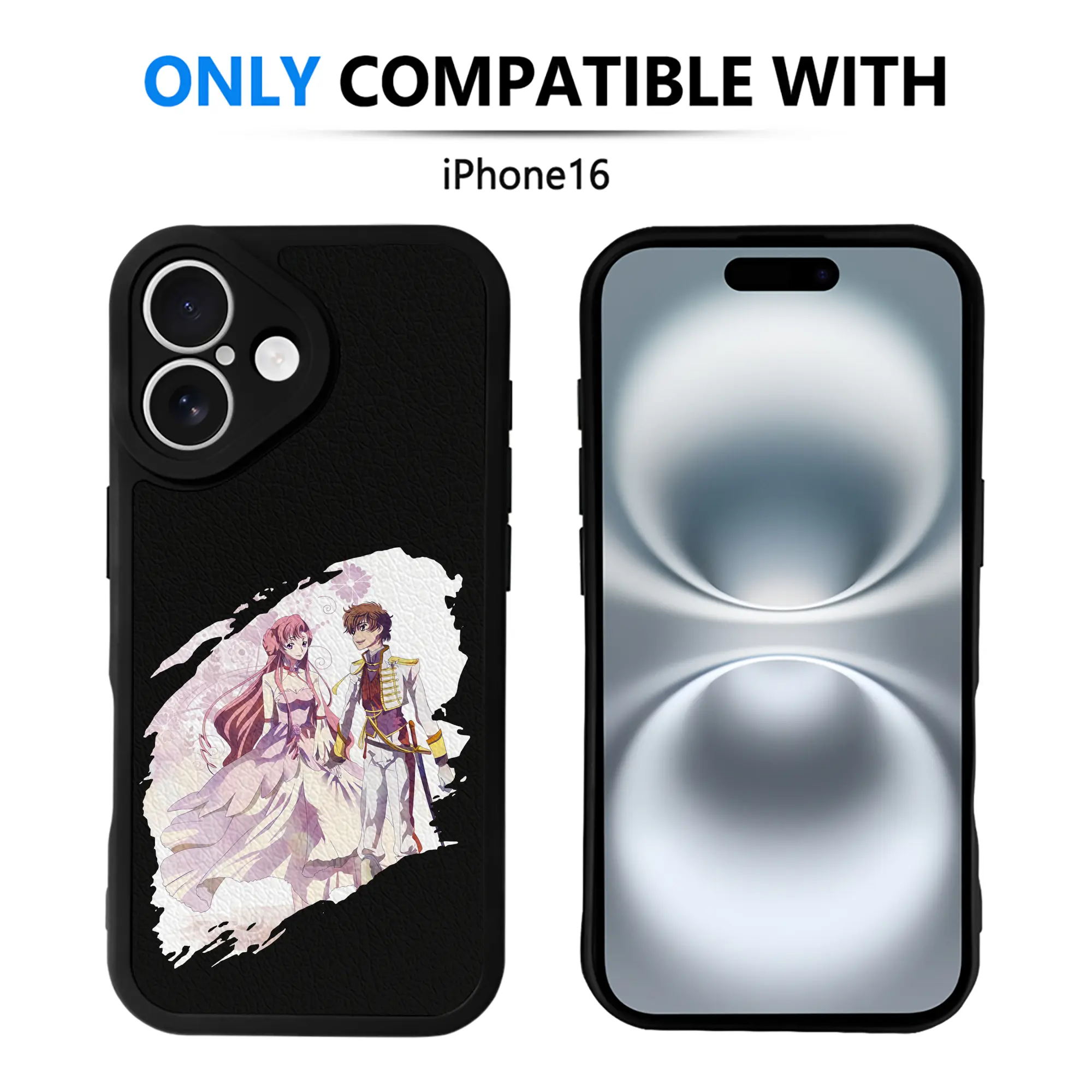 コードギアス 反逆のルルーシュ グッズ ユーフェミア・リ・ブリタニア - IPhone 16シリーズ対応 ・ シリコンスマホケース ・ レザー調 ・ 高精度フィット ・ 耐衝撃 ・ ワイヤレス充電対応 ・ 精密カット