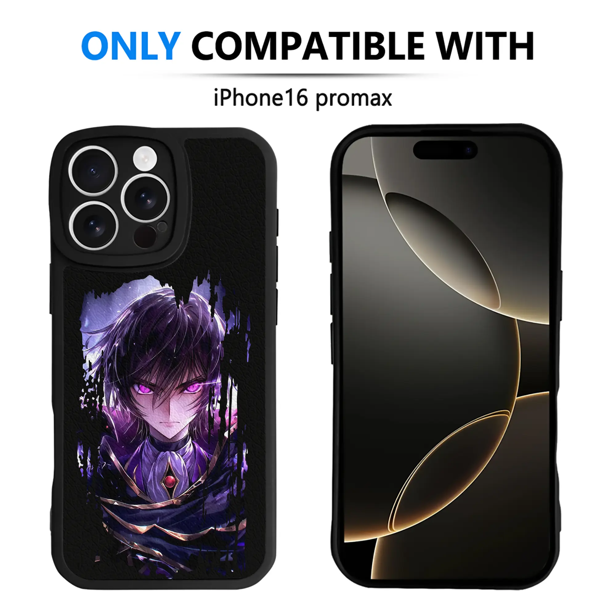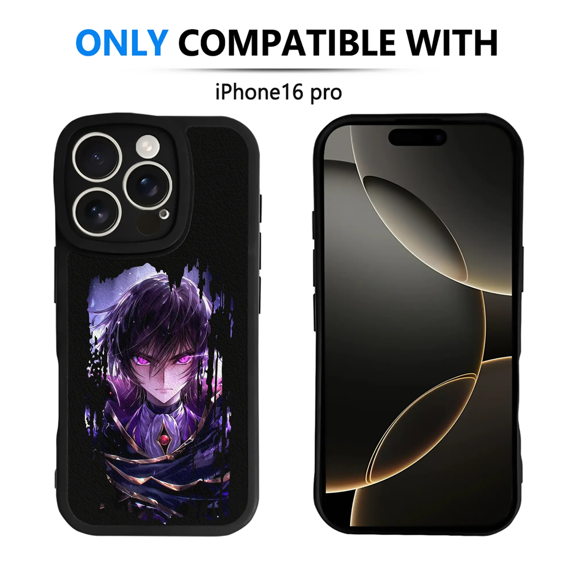 コードギアス 反逆のルルーシュ グッズ ルルーシュ・ランペルージ - IPhone 16シリーズ対応 ・ シリコンスマホケース ・ レザー調 ・ 高精度フィット ・ 耐衝撃 ・ ワイヤレス充電対応 ・ 精密カット