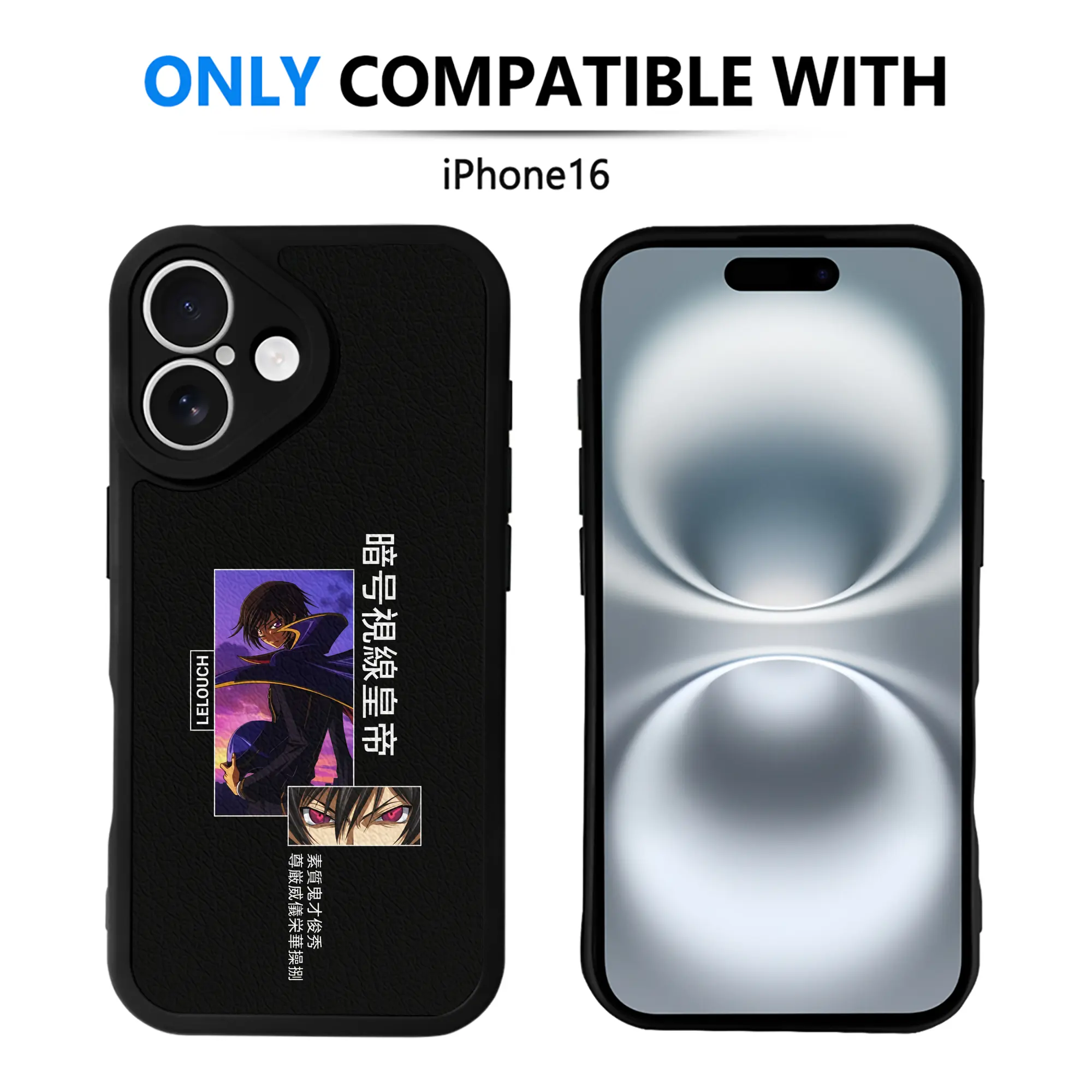 コードギアス 反逆のルルーシュ グッズ ルルーシュ・ランペルージ - IPhone 16シリーズ対応 ・ シリコンスマホケース ・ レザー調 ・ 高精度フィット ・ 耐衝撃 ・ ワイヤレス充電対応 ・ 精密カット