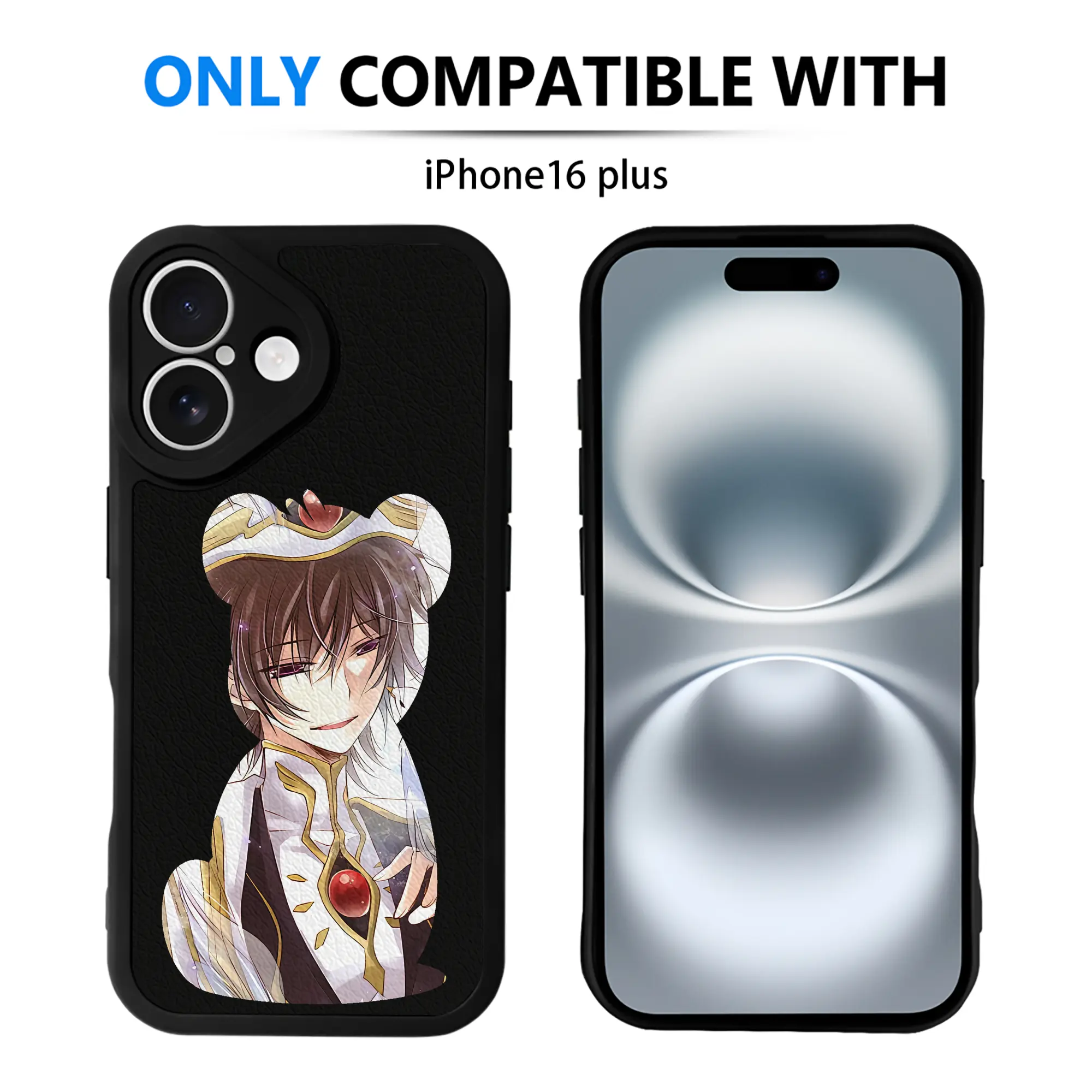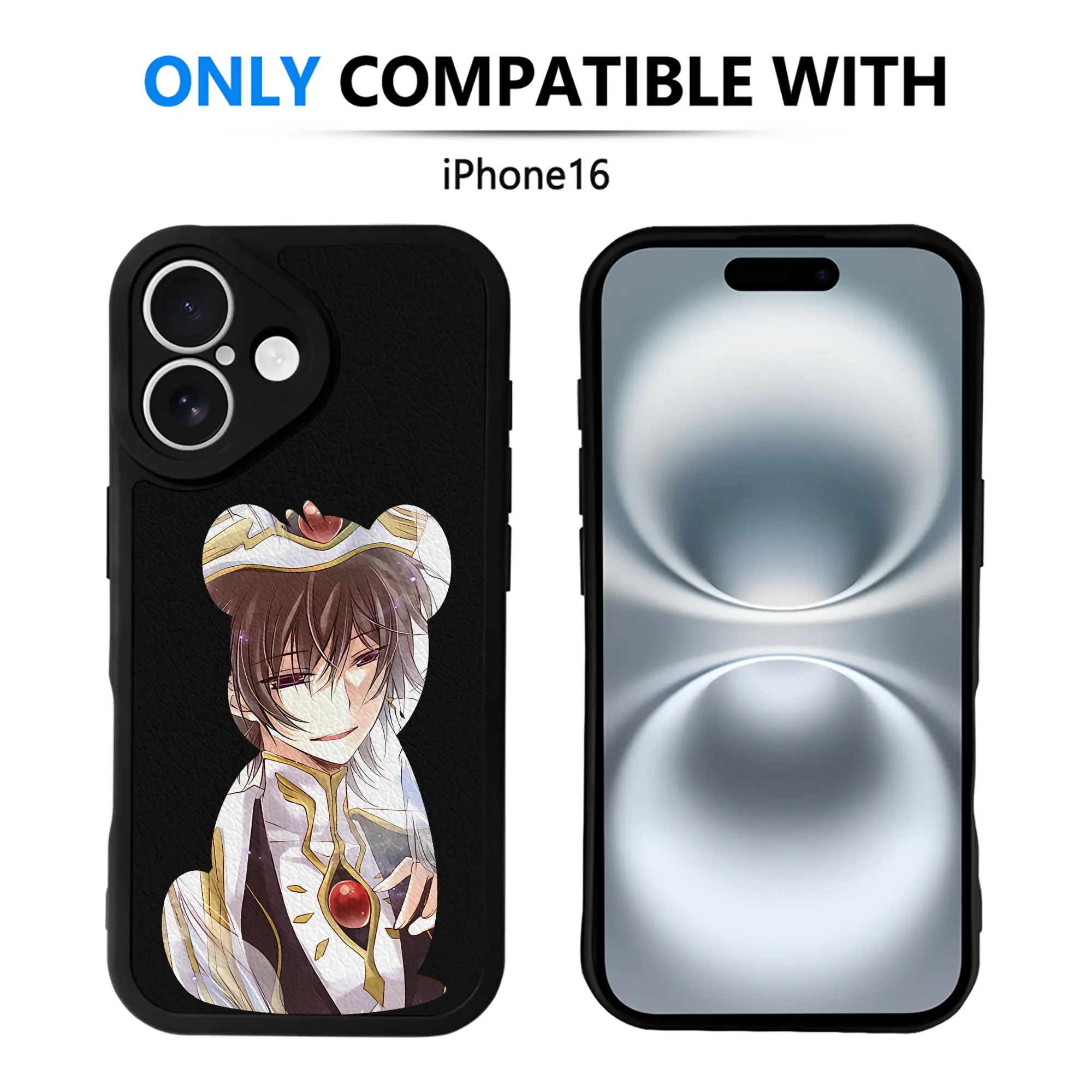 コードギアス 反逆のルルーシュ グッズ ルルーシュ・ランペルージ - IPhone 16シリーズ対応 ・ シリコンスマホケース ・ レザー調 ・ 高精度フィット ・ 耐衝撃 ・ ワイヤレス充電対応 ・ 精密カット
