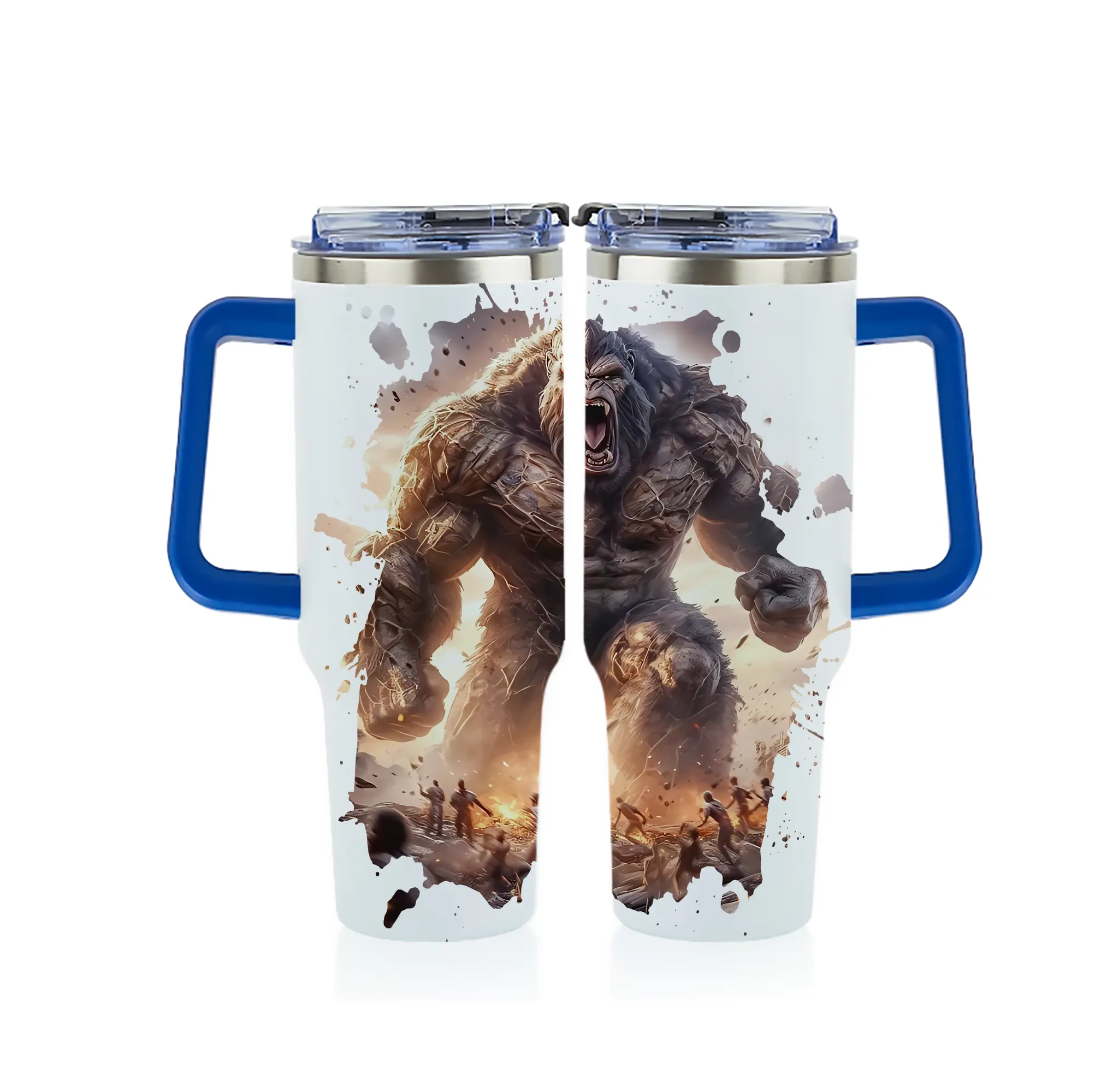 ゴジラ グッズ,キングコング - 1200mL フルプリント車用タンブラー ・ 304ステンレス 内側 ・ 201ステンレス 外側 ・ 保温 保冷 ・ 通勤 ドライブ アウトドア用