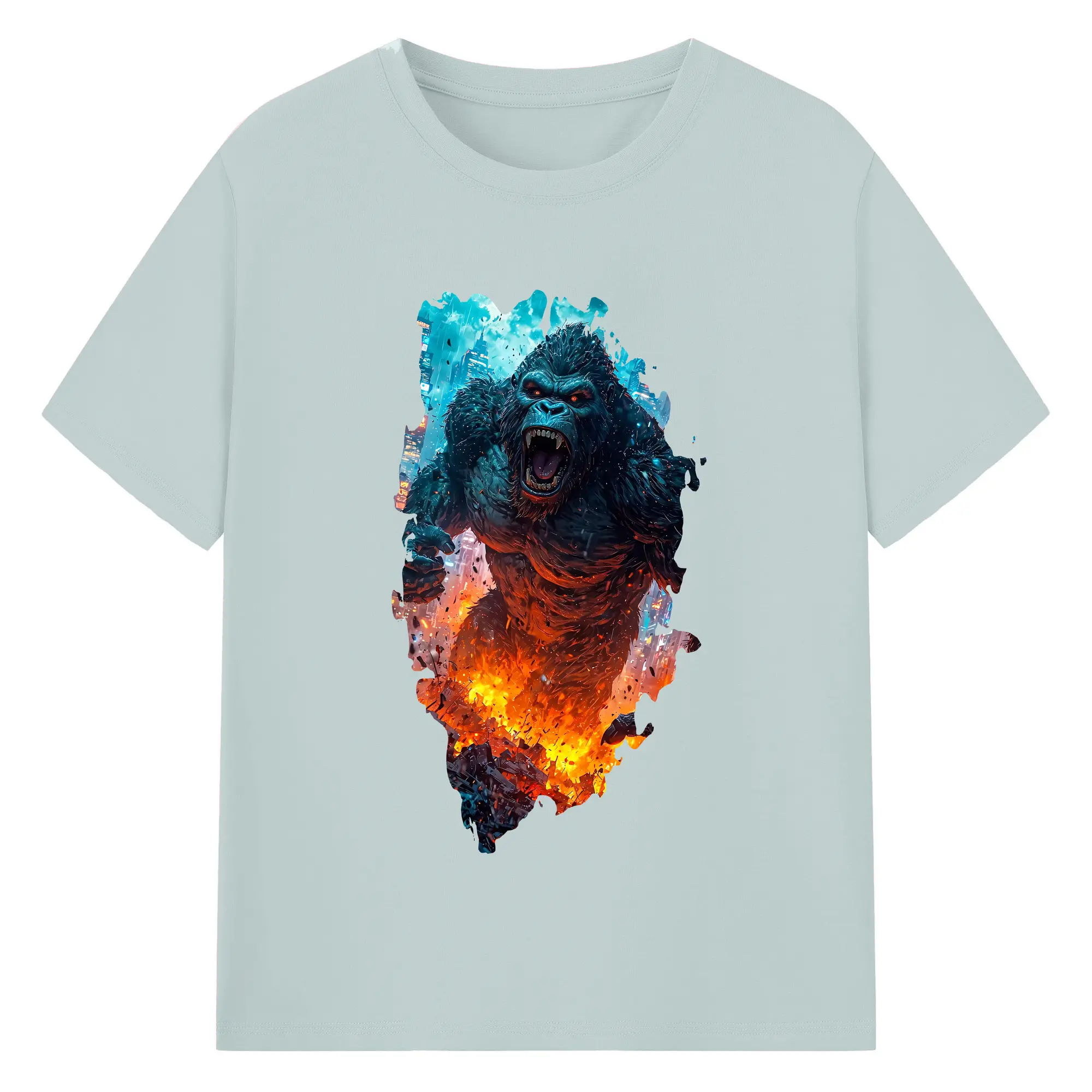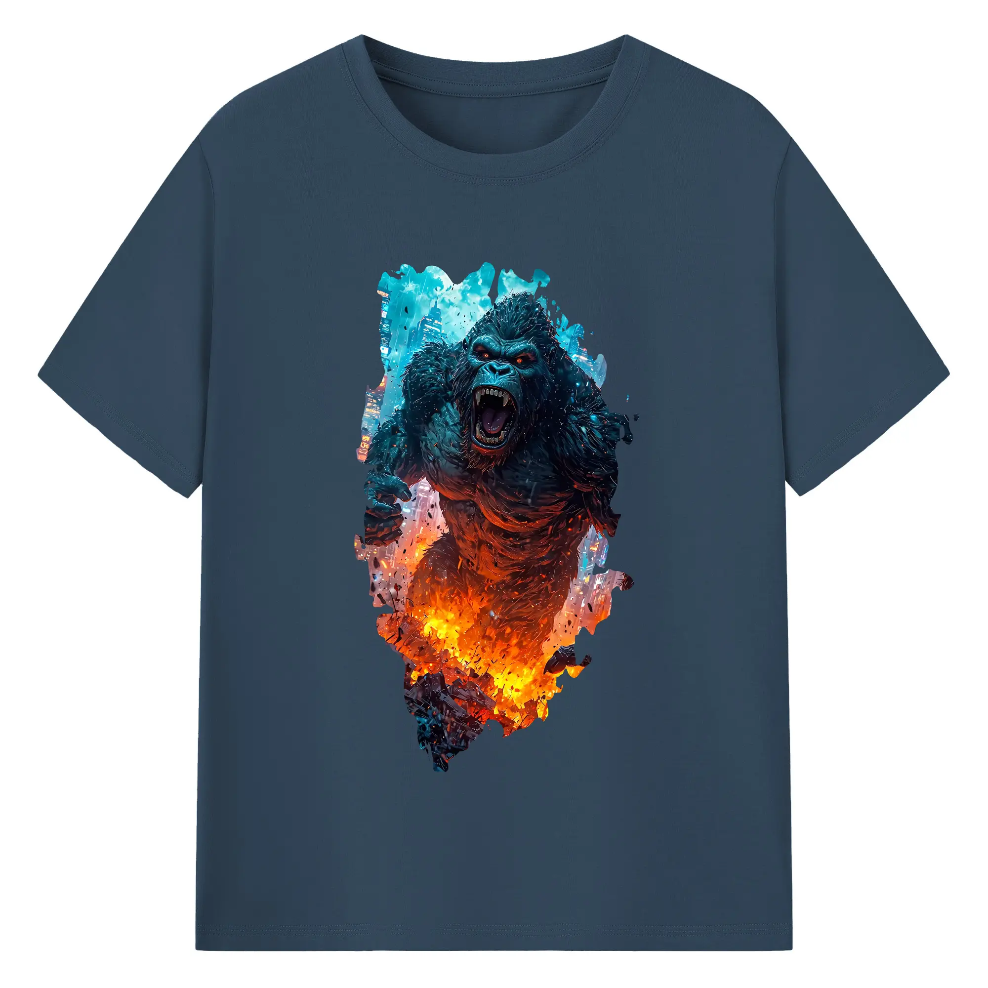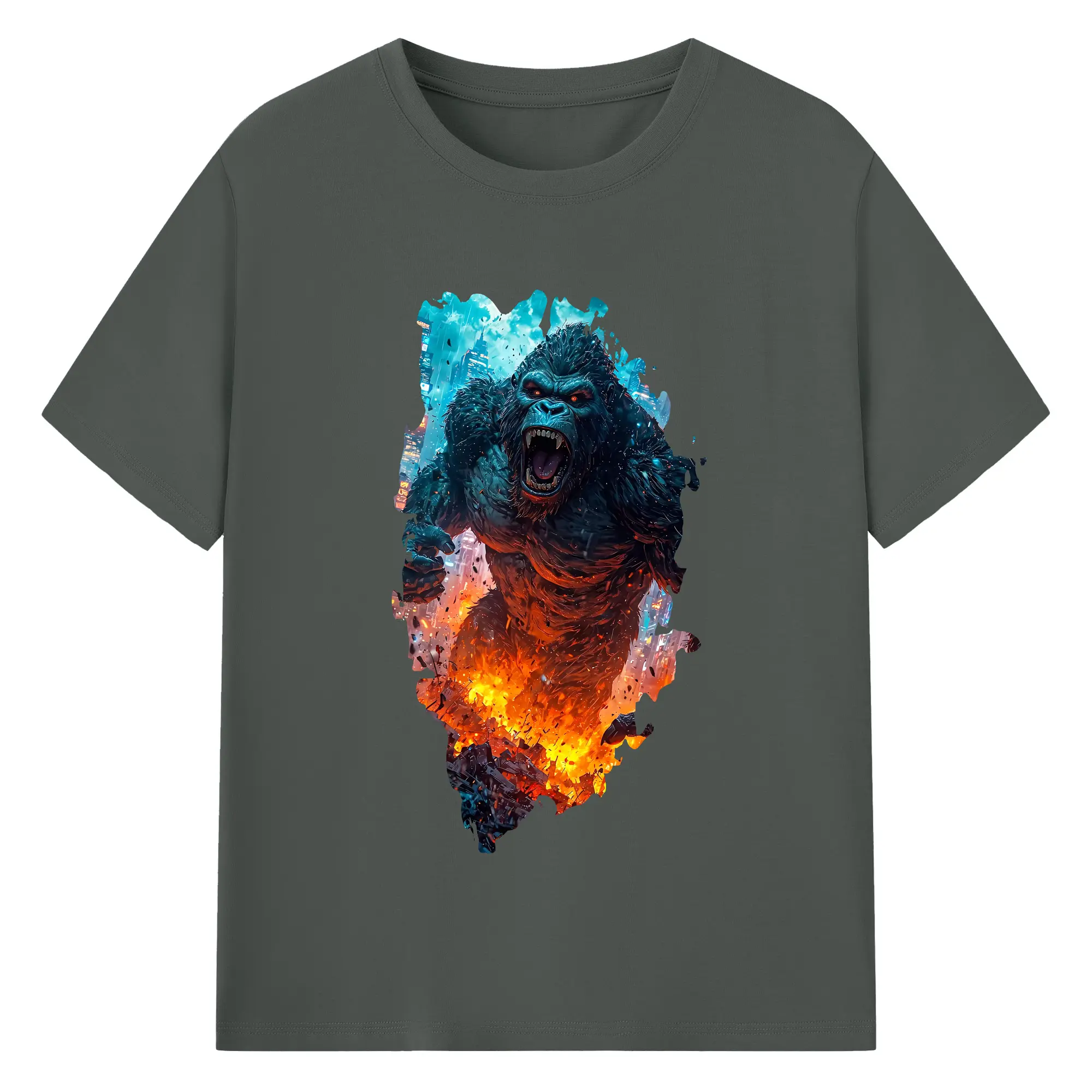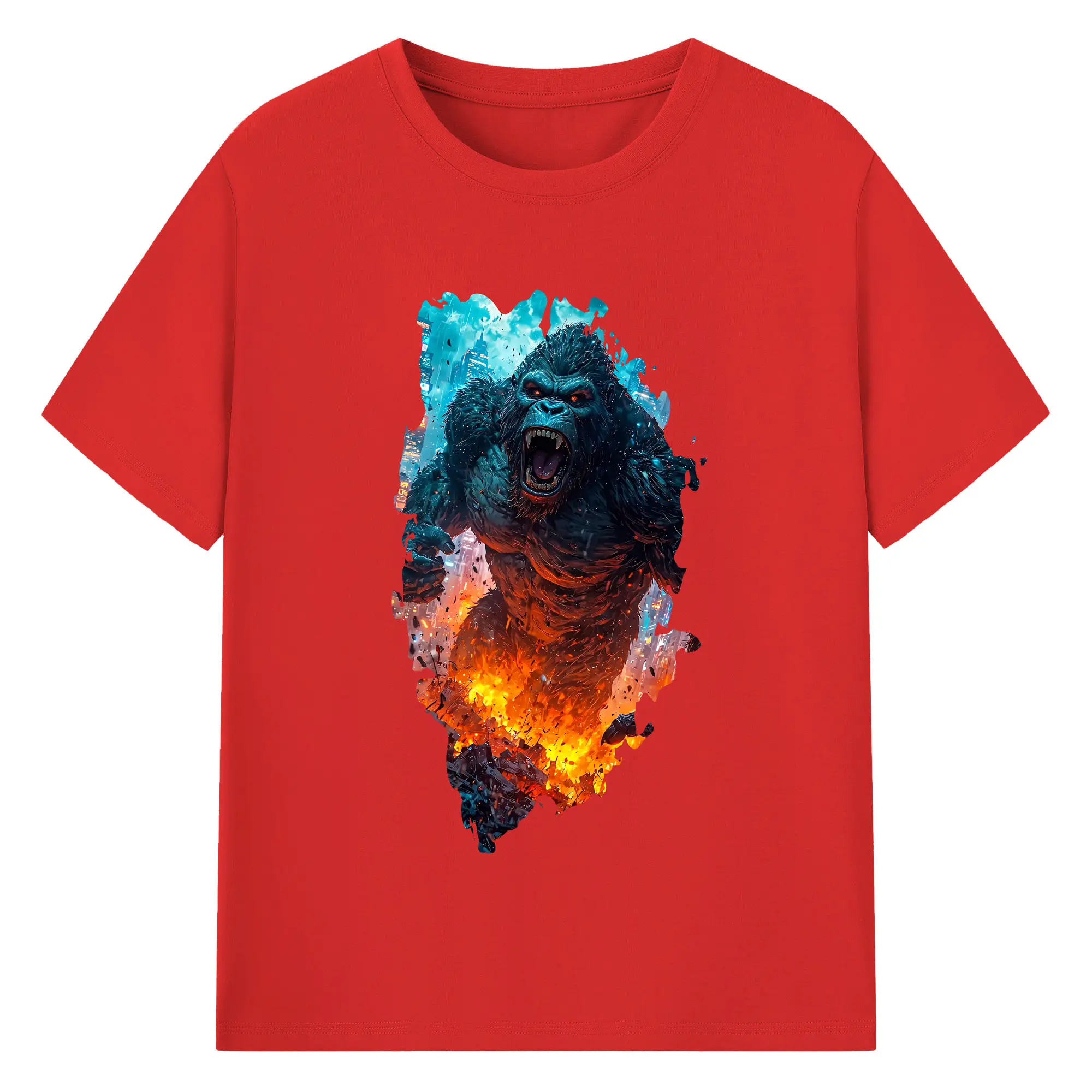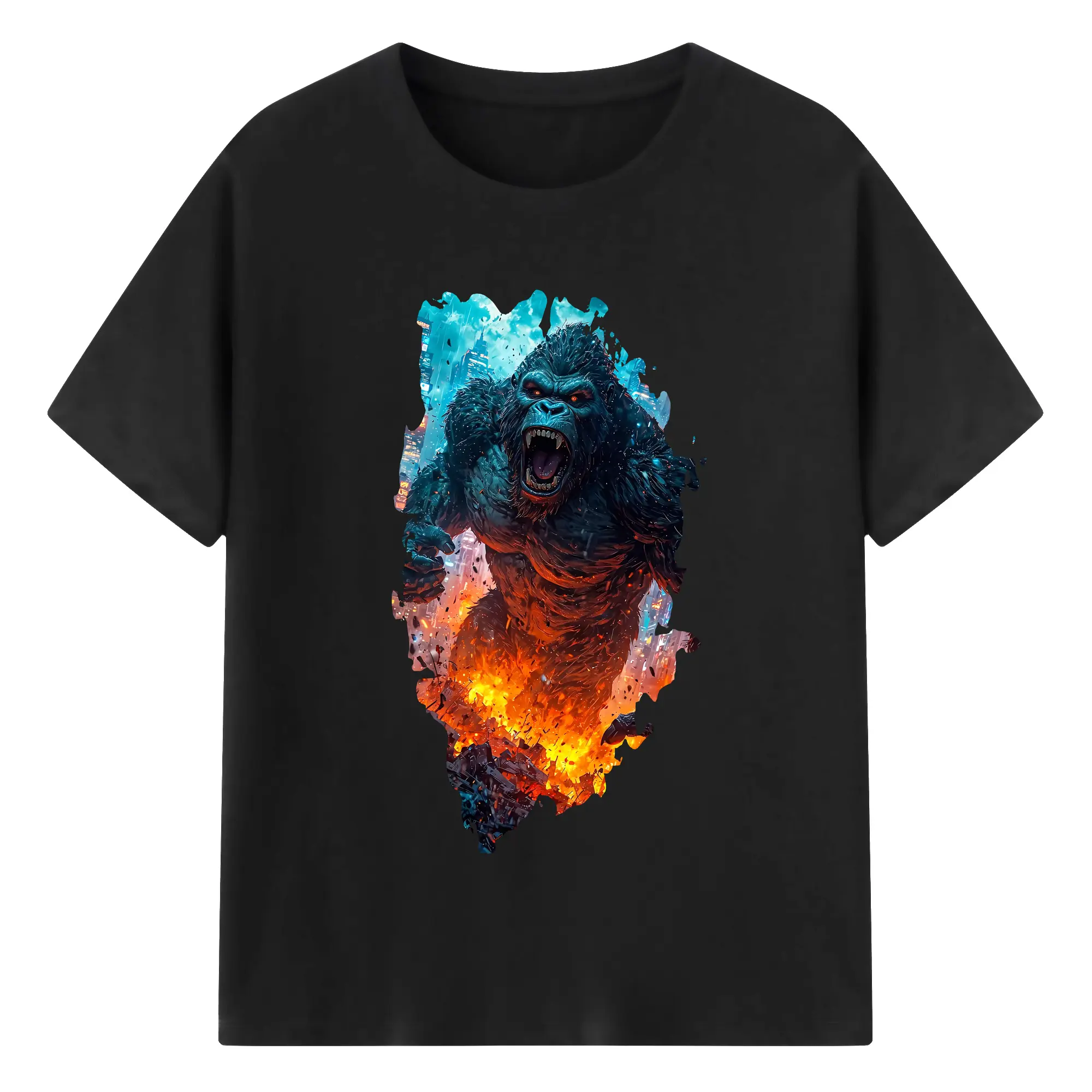 ゴジラ グッズ,キングコング - 綿100% 半袖Tシャツ ・ バックプリント ・ 快適 通気性 ・ 日常使い 散歩 スポーツ用