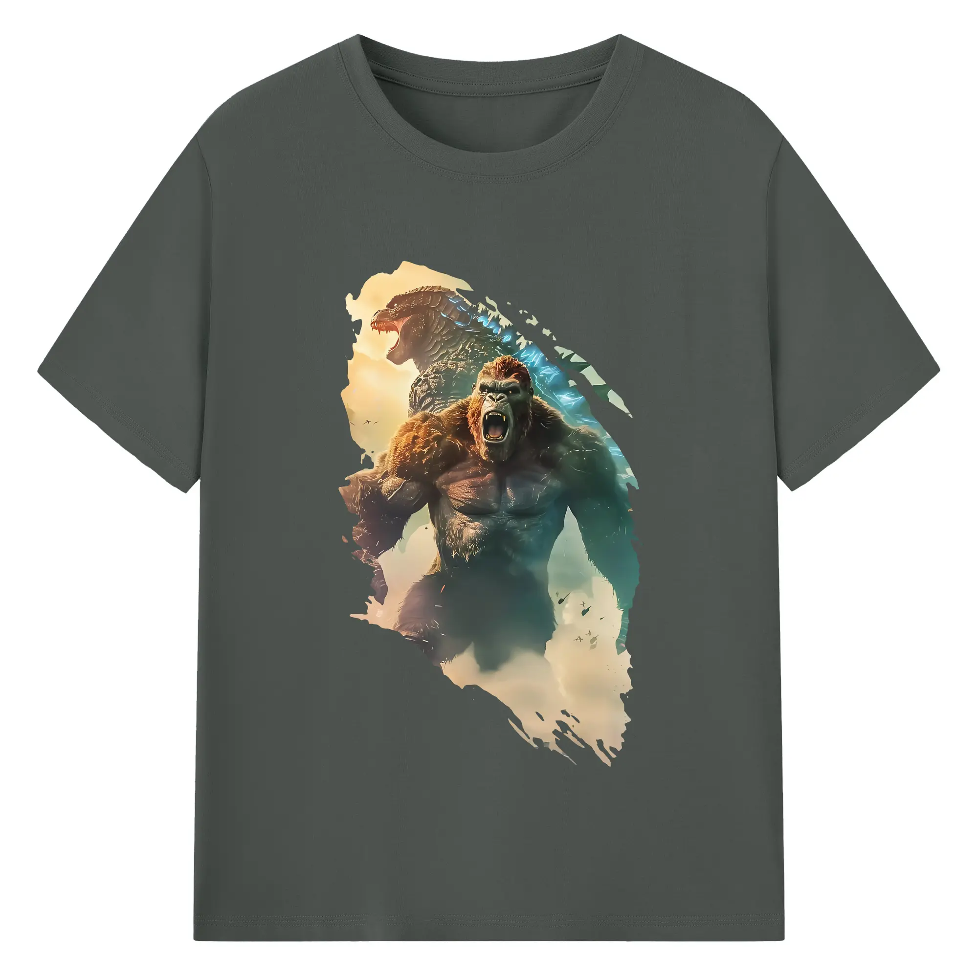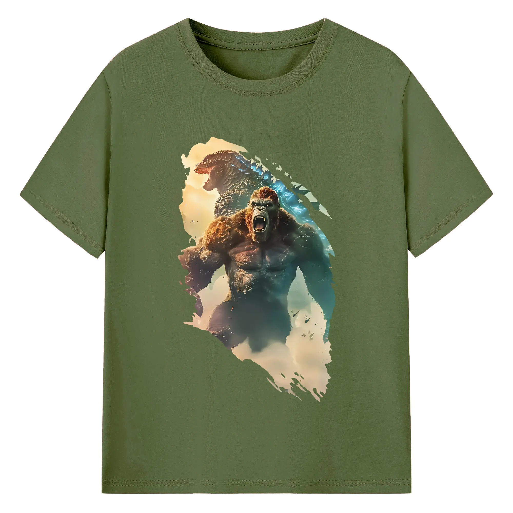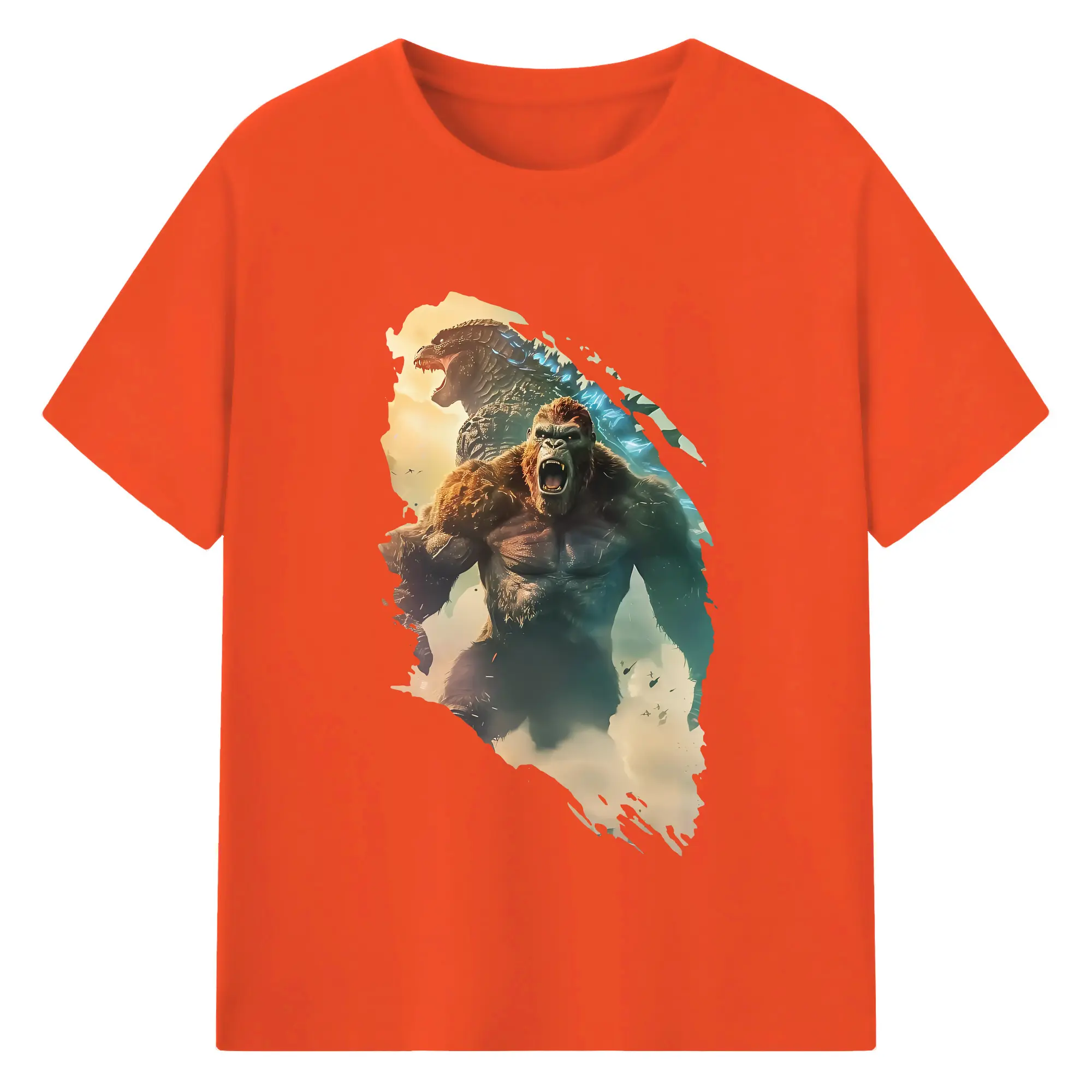 ゴジラ グッズ,キングコング - 綿100% 半袖Tシャツ ・ バックプリント ・ 快適 通気性 ・ 日常使い 散歩 スポーツ用