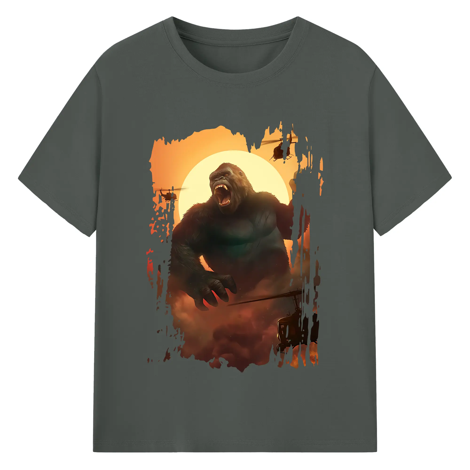 ゴジラ グッズ,キングコング - 綿100% 半袖Tシャツ ・ バックプリント ・ 快適 通気性 ・ 日常使い 散歩 スポーツ用
