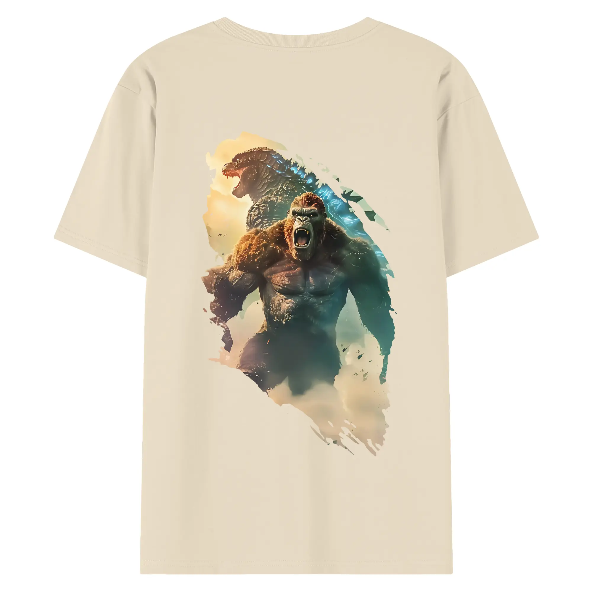 ゴジラ グッズ,キングコング - 綿100% ヴィンテージ風 半袖Tシャツ ・ 背面プリント ・ 柔らか肌触り ・ 通気性 快適 ・ スポーツ カジュアル 外出用