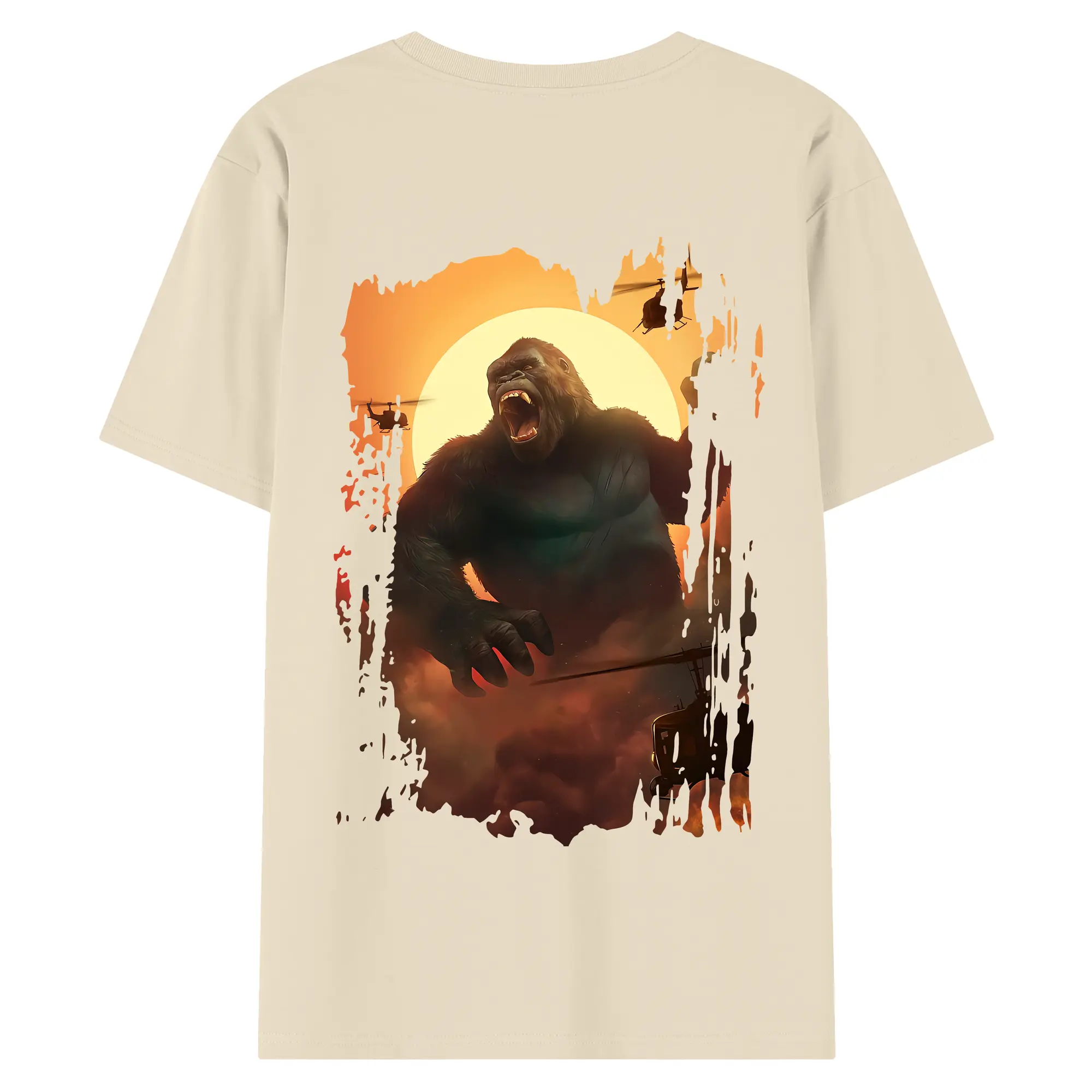 ゴジラ グッズ,キングコング - 綿100% ヴィンテージ風 半袖Tシャツ ・ 背面プリント ・ 柔らか肌触り ・ 通気性 快適 ・ スポーツ カジュアル 外出用