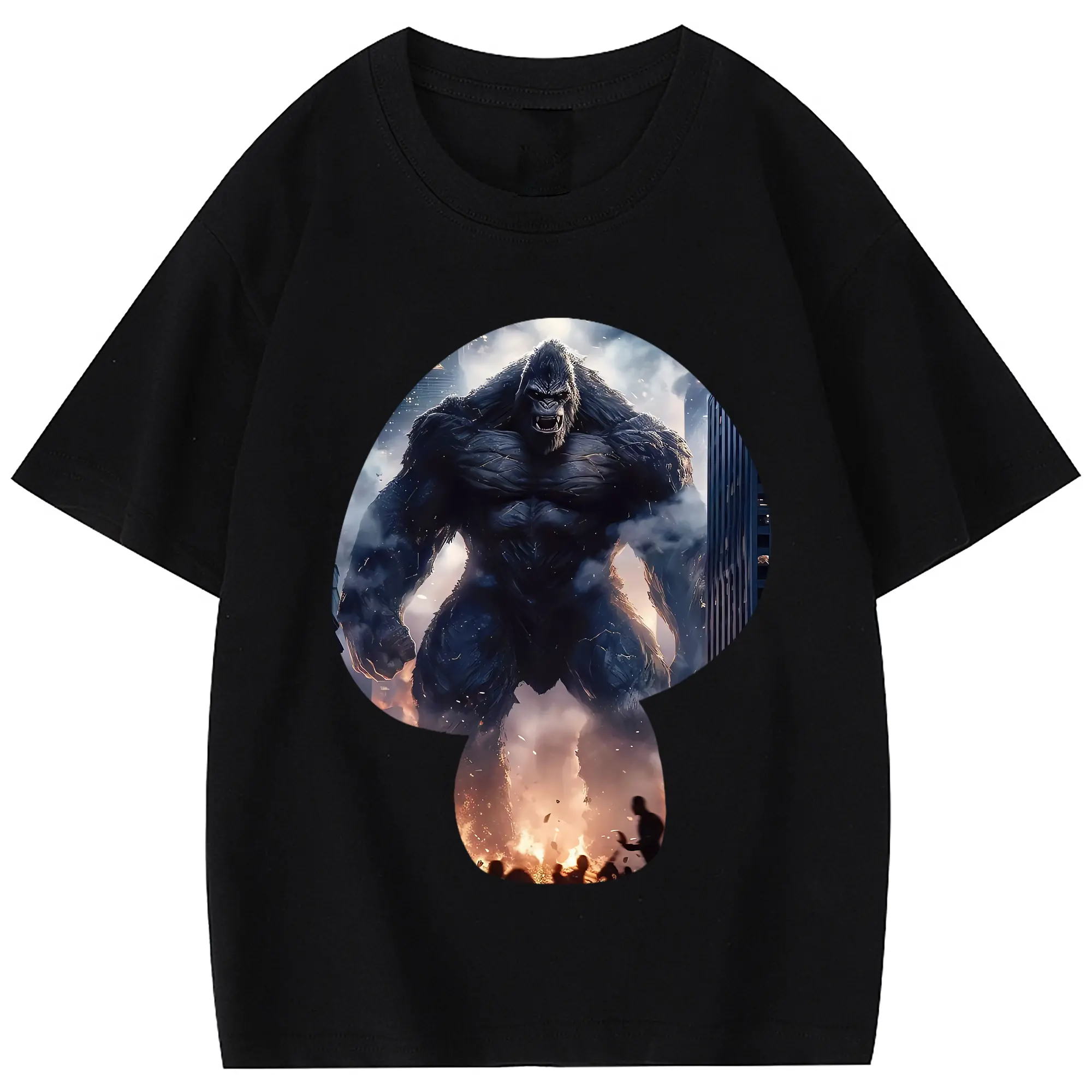 ゴジラ グッズ,キングコング - 綿100% 半袖Tシャツ ・ フロントプリント ・ 快適 通気性 ・ 日常使い 散歩 スポーツ用