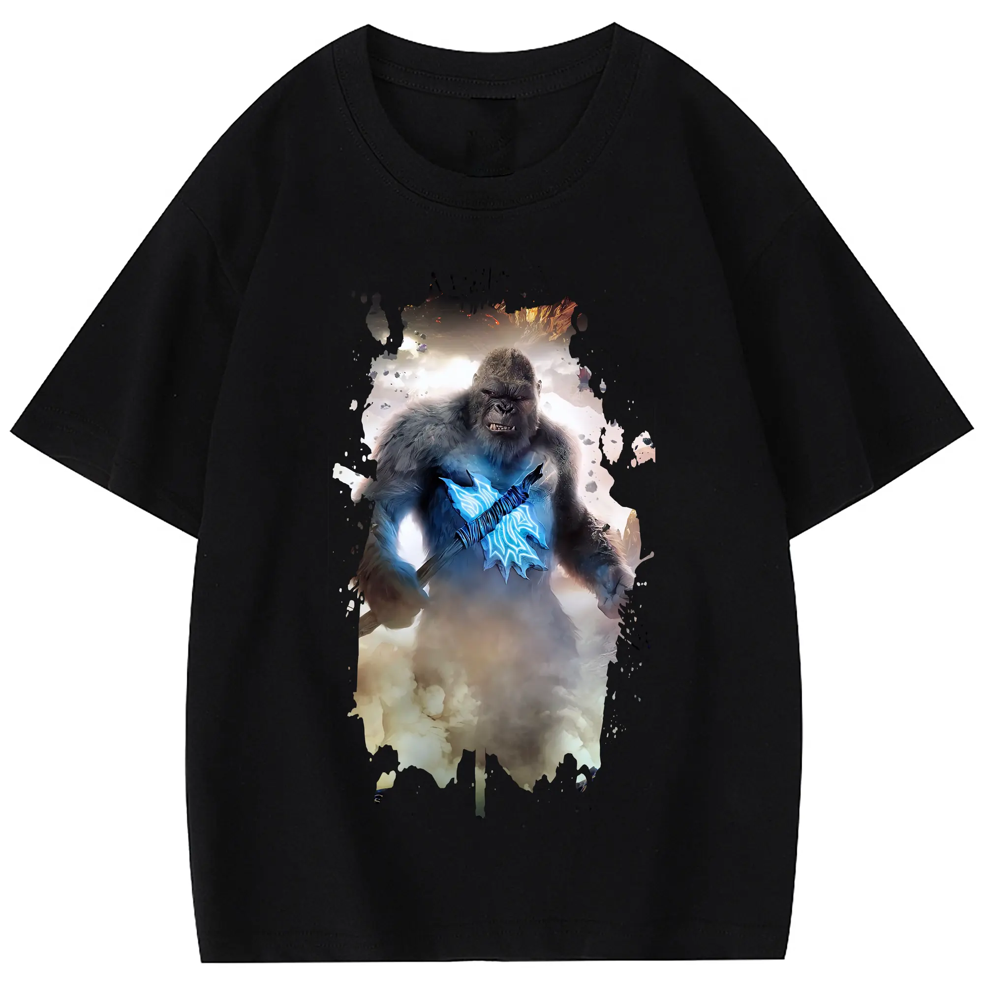 ゴジラ グッズ,キングコング - 綿100% 半袖Tシャツ ・ フロントプリント ・ 快適 通気性 ・ 日常使い 散歩 スポーツ用