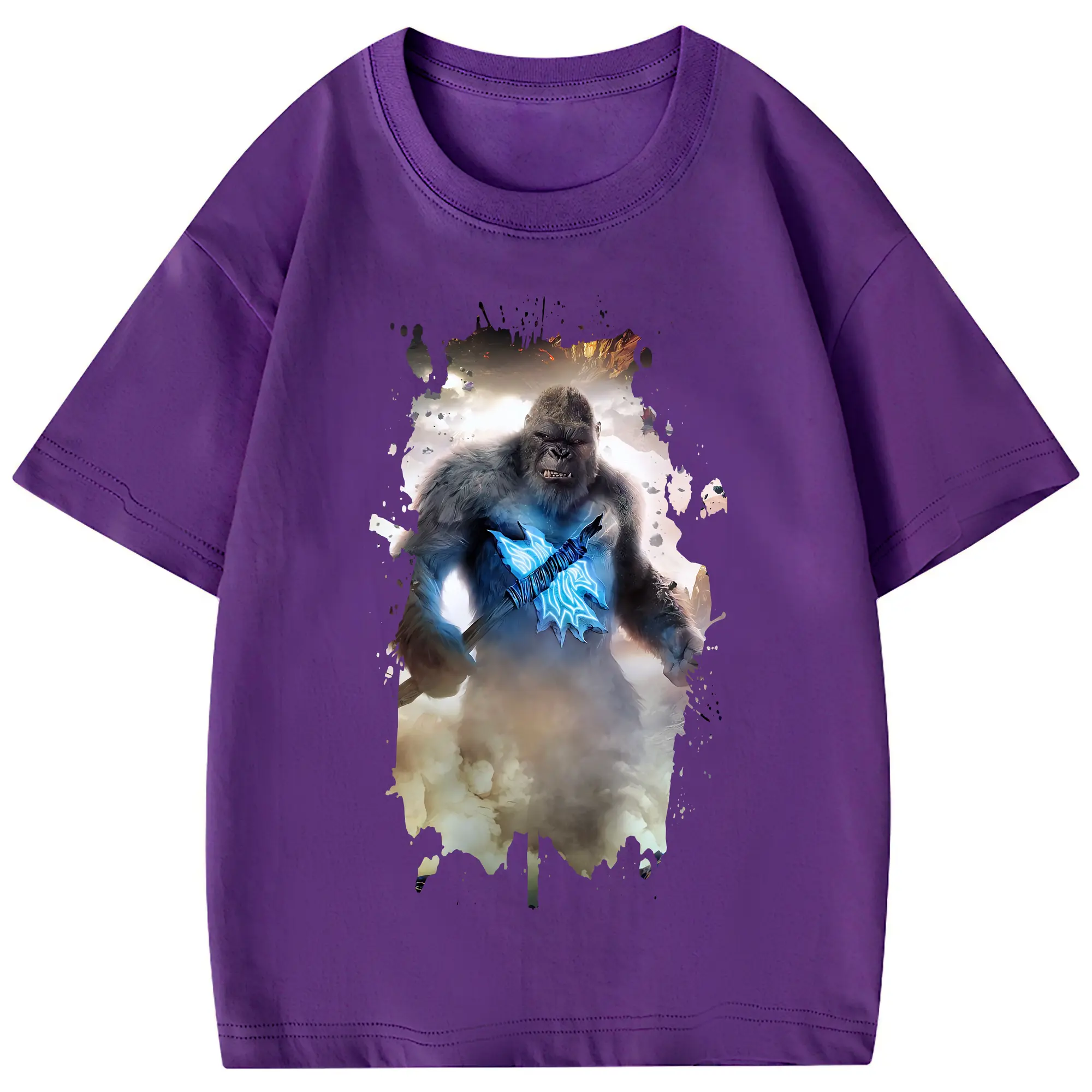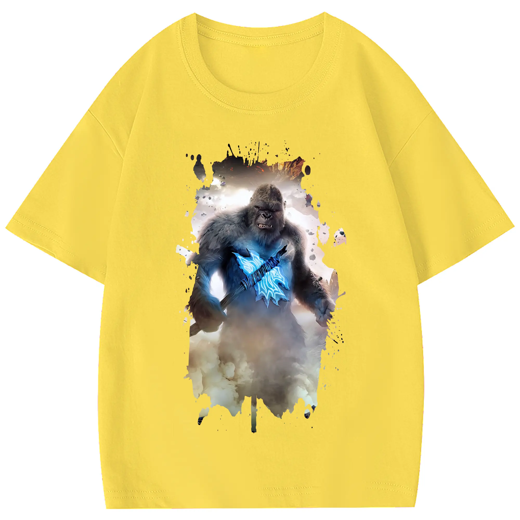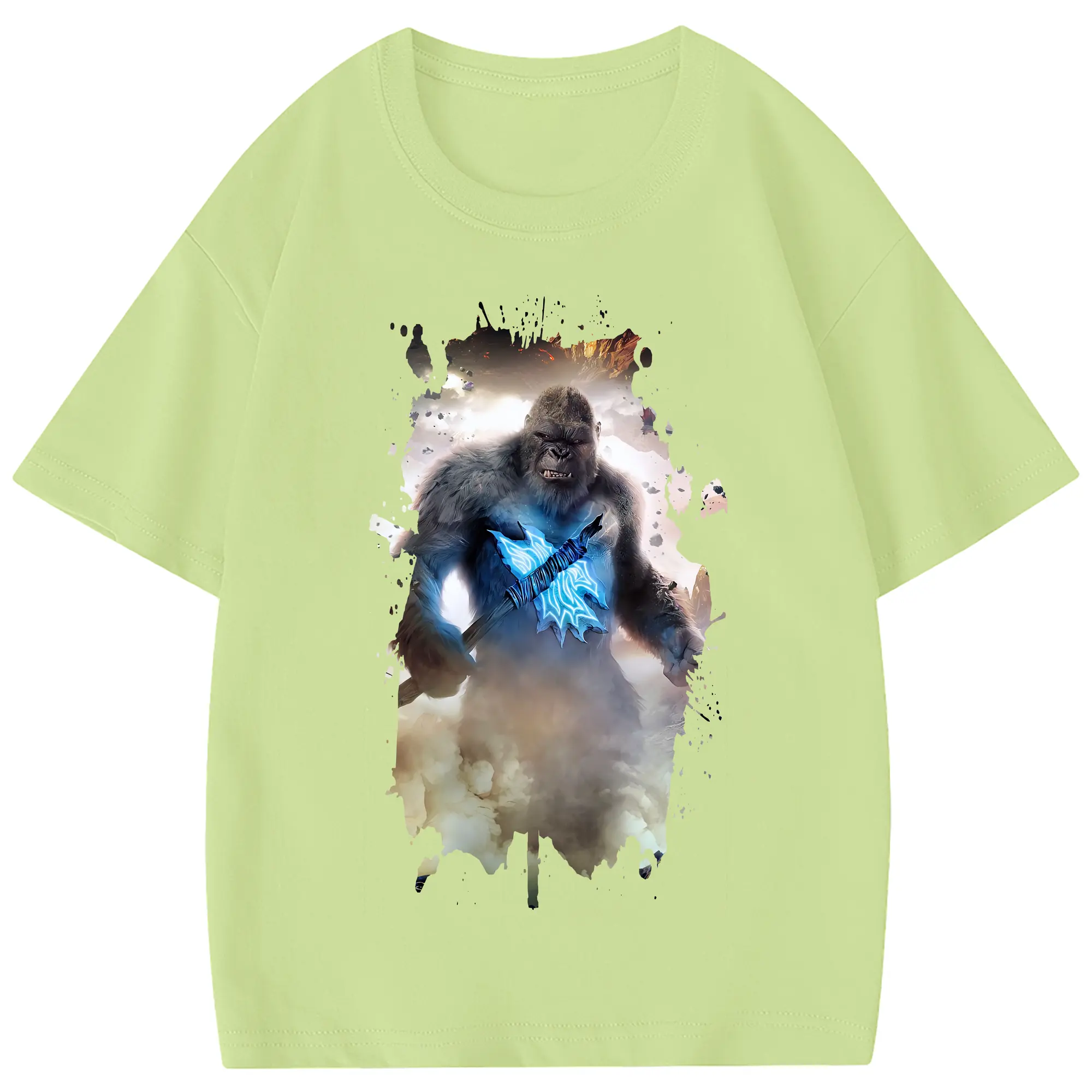 ゴジラ グッズ,キングコング - 綿100% キッズTシャツ ・ フロントプリント ・ 快適 通気性 ・ スポーツ カジュアル 散歩用
