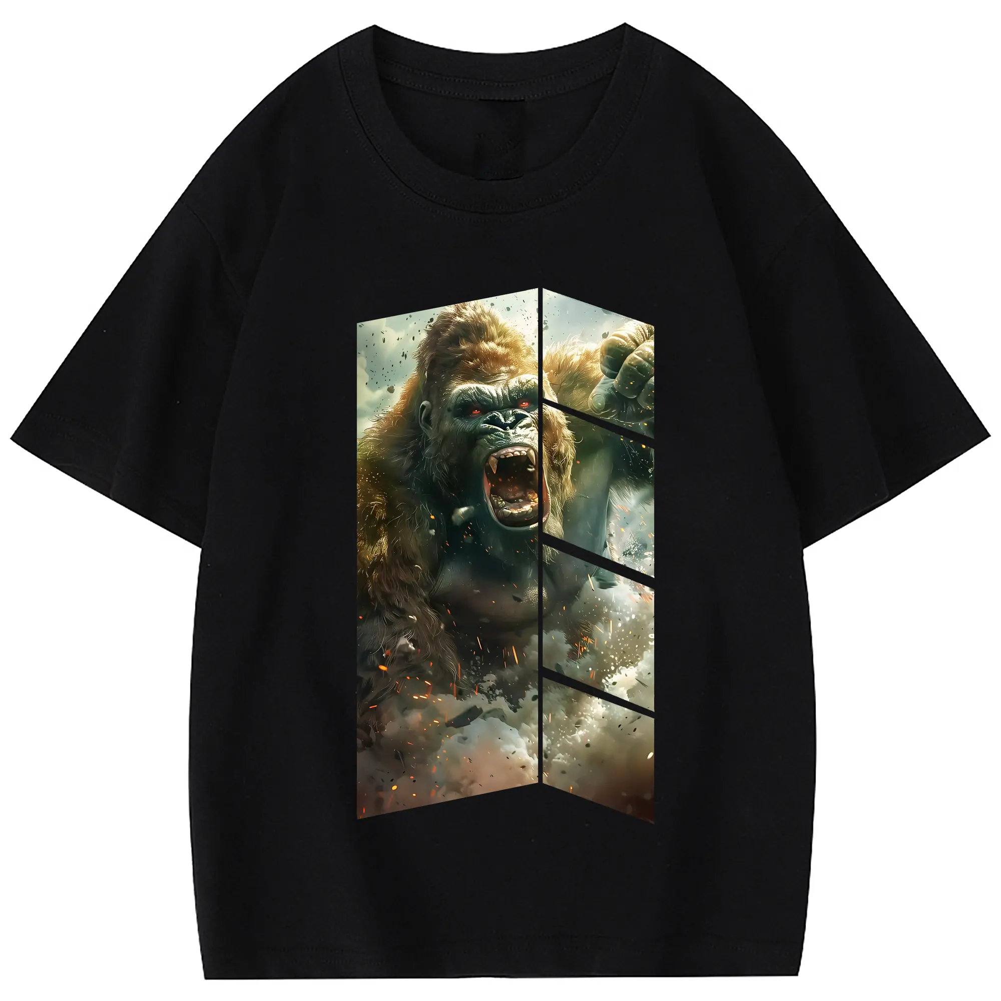 ゴジラ グッズ,キングコング - 綿100% 半袖Tシャツ ・ フロントプリント ・ 快適 通気性 ・ 日常使い 散歩 スポーツ用