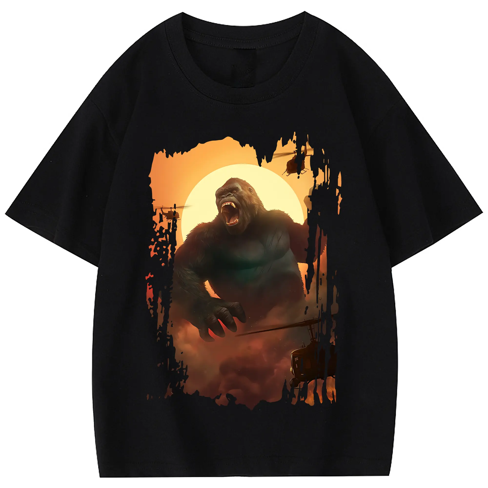 ゴジラ グッズ,キングコング - 綿100% 半袖Tシャツ ・ フロントプリント ・ 快適 通気性 ・ 日常使い 散歩 スポーツ用