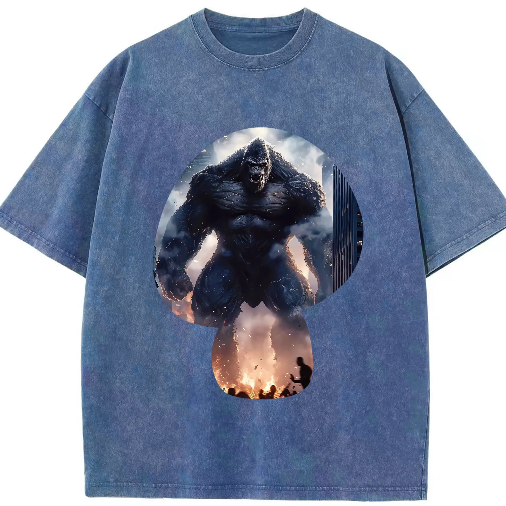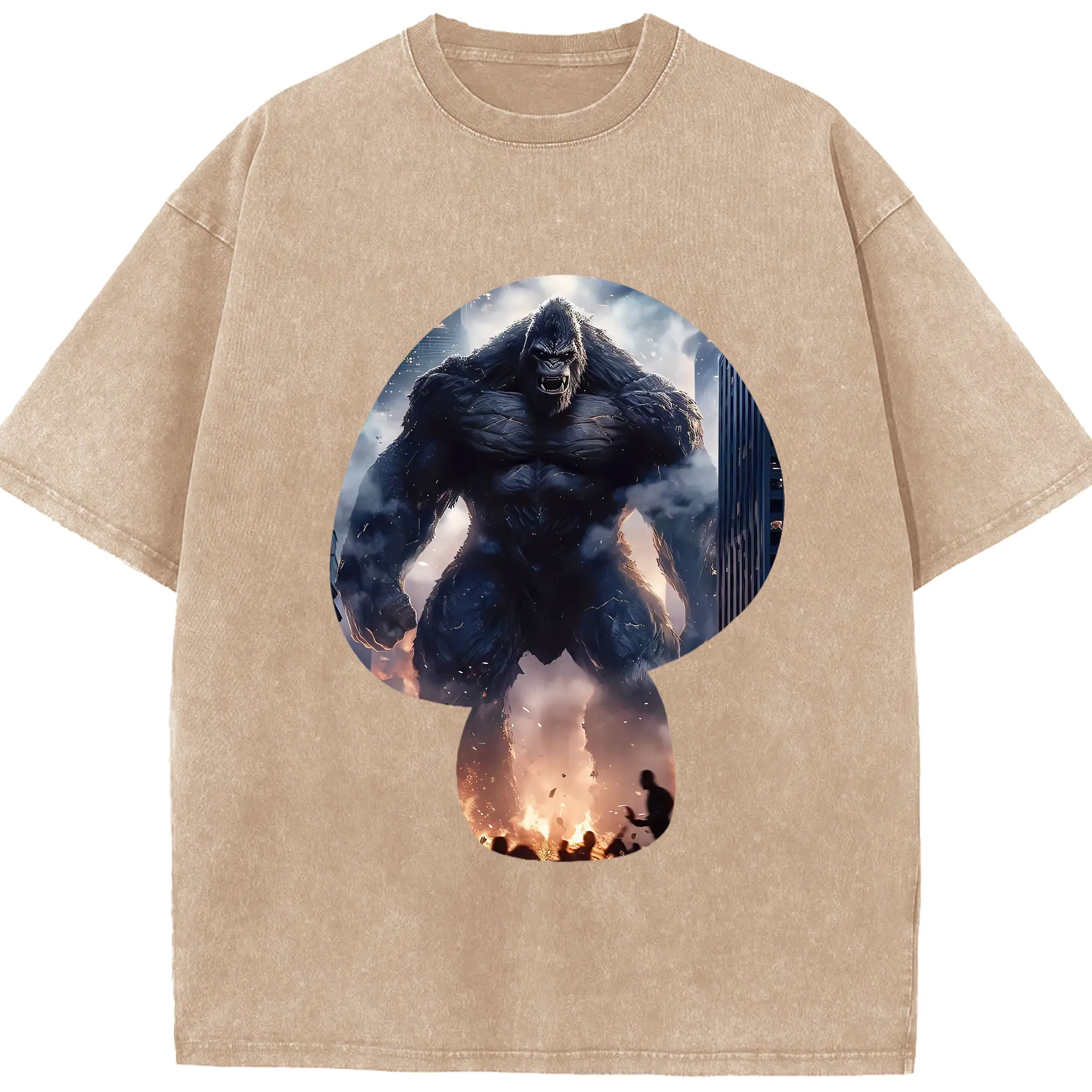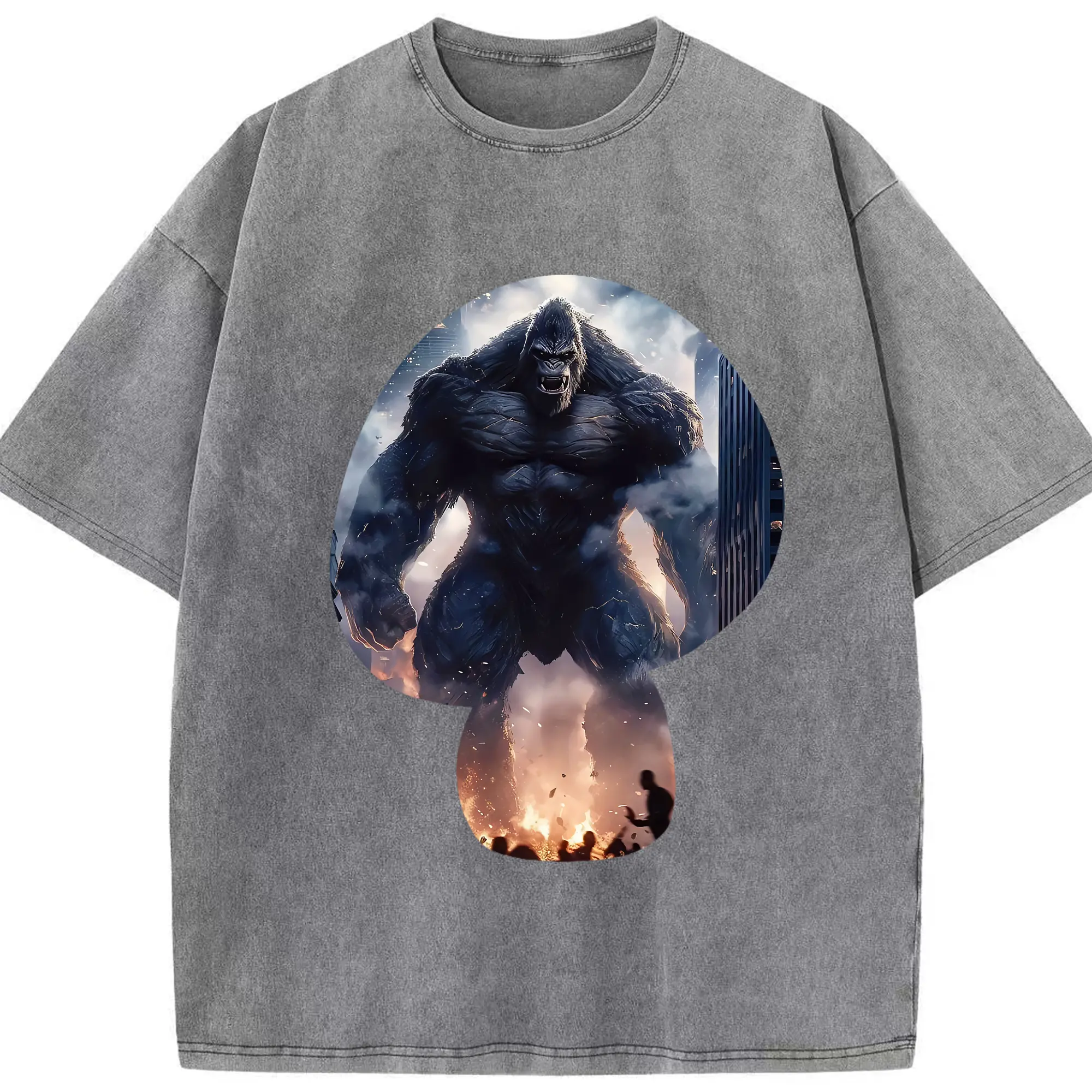 ゴジラ グッズ,キングコング - 綿100% ヴィンテージ風 半袖Tシャツ ・ 背面プリント ・ 柔らか肌触り ・ 通気性 快適 ・ スポーツ カジュアル 外出用