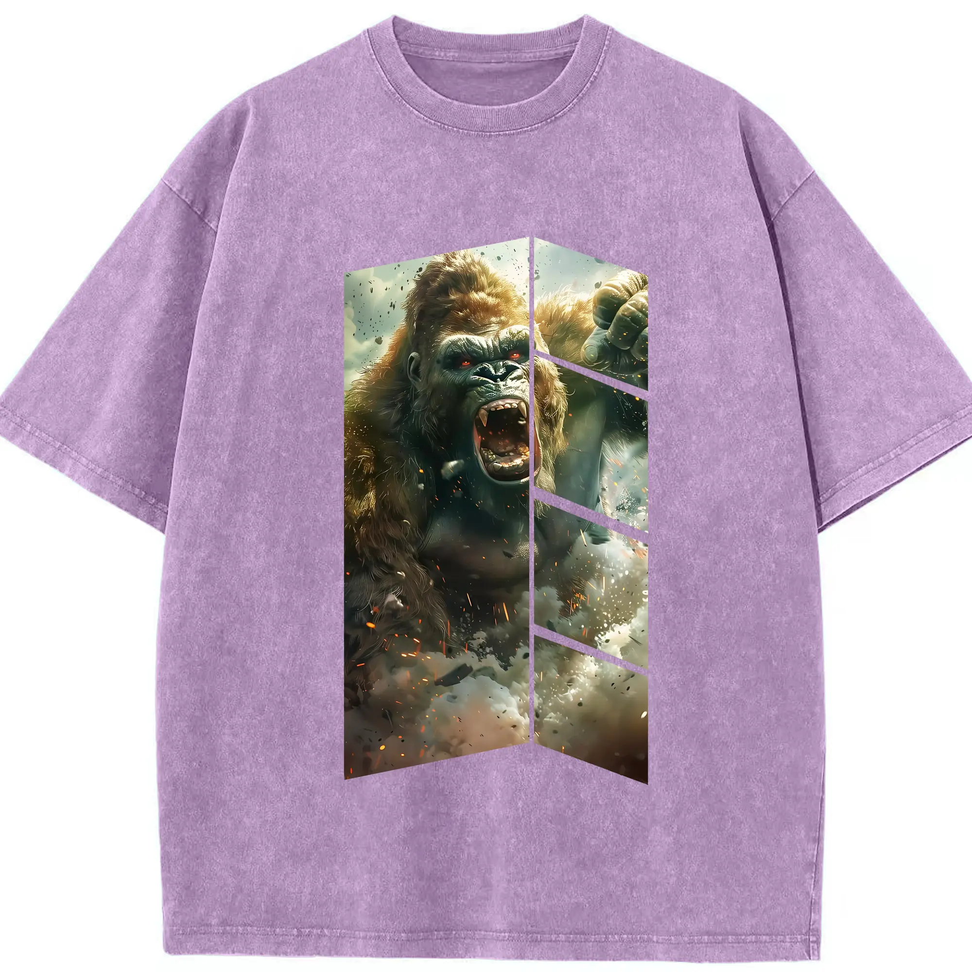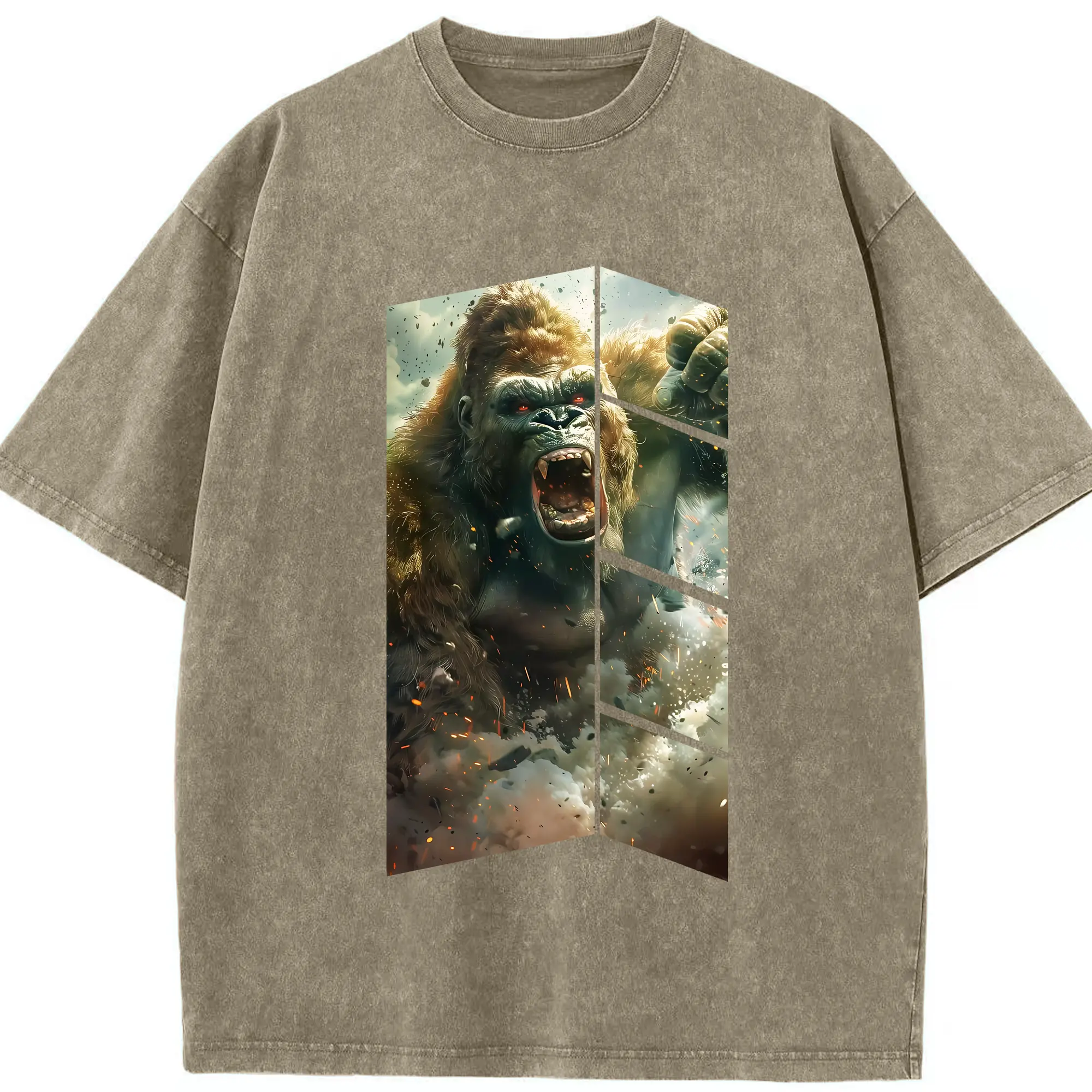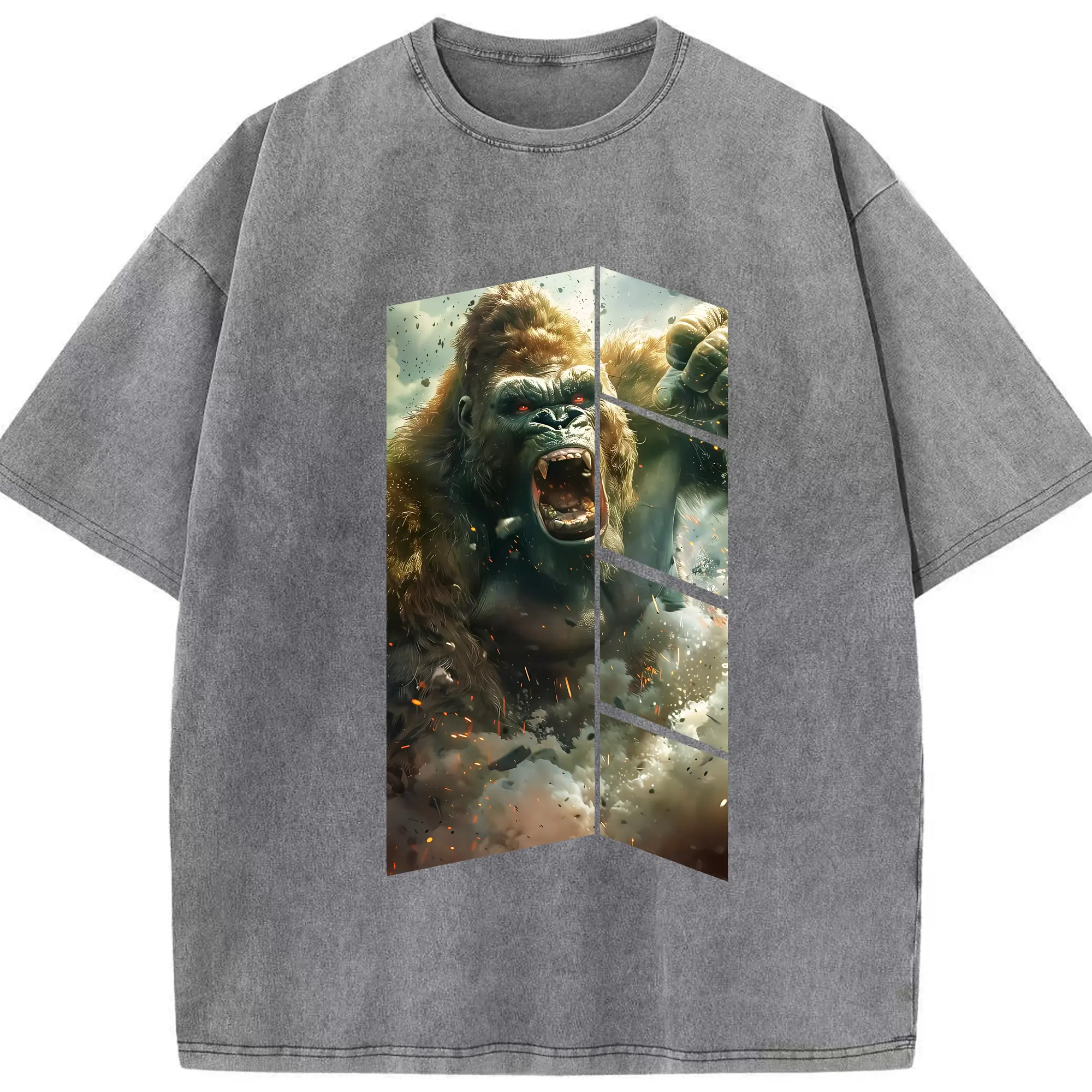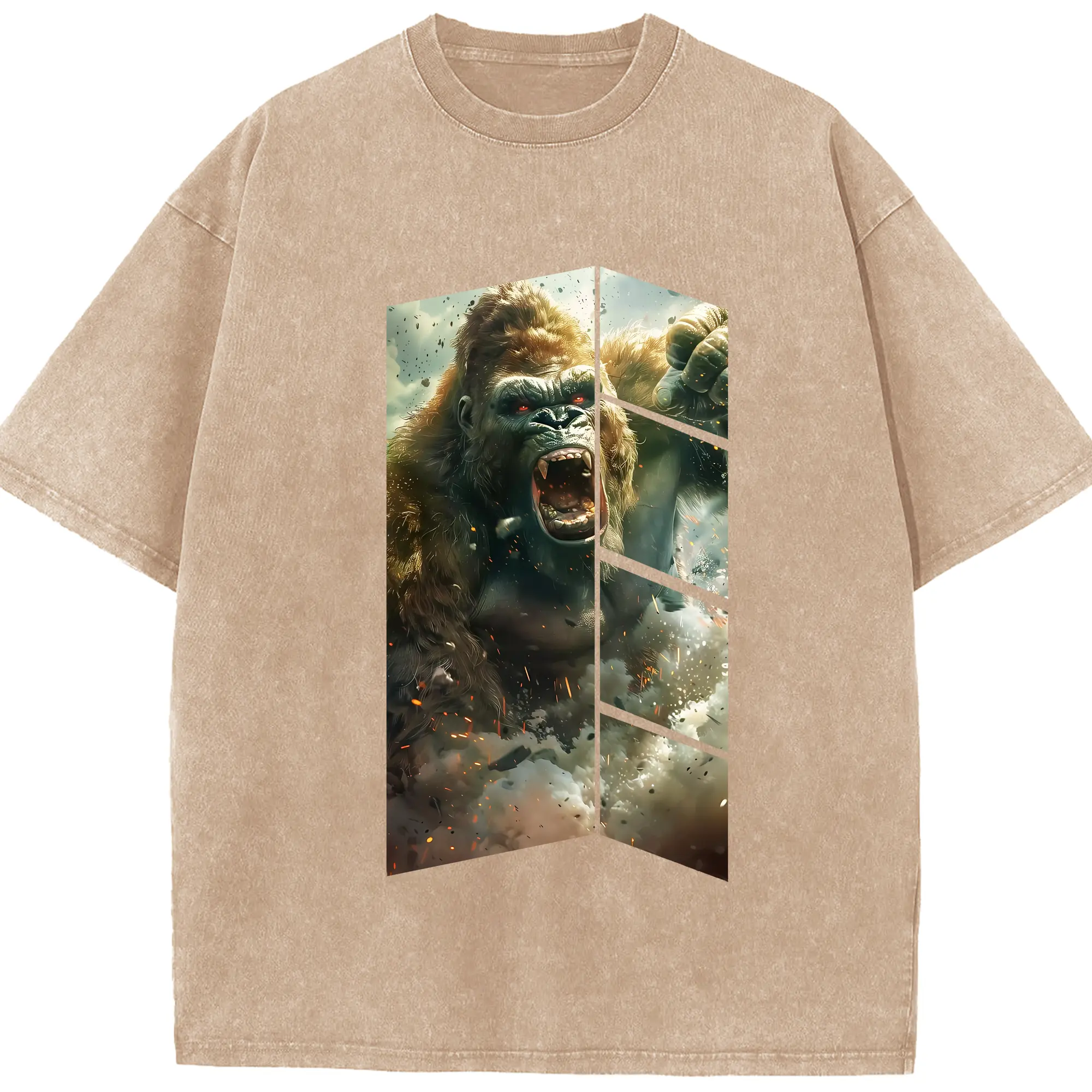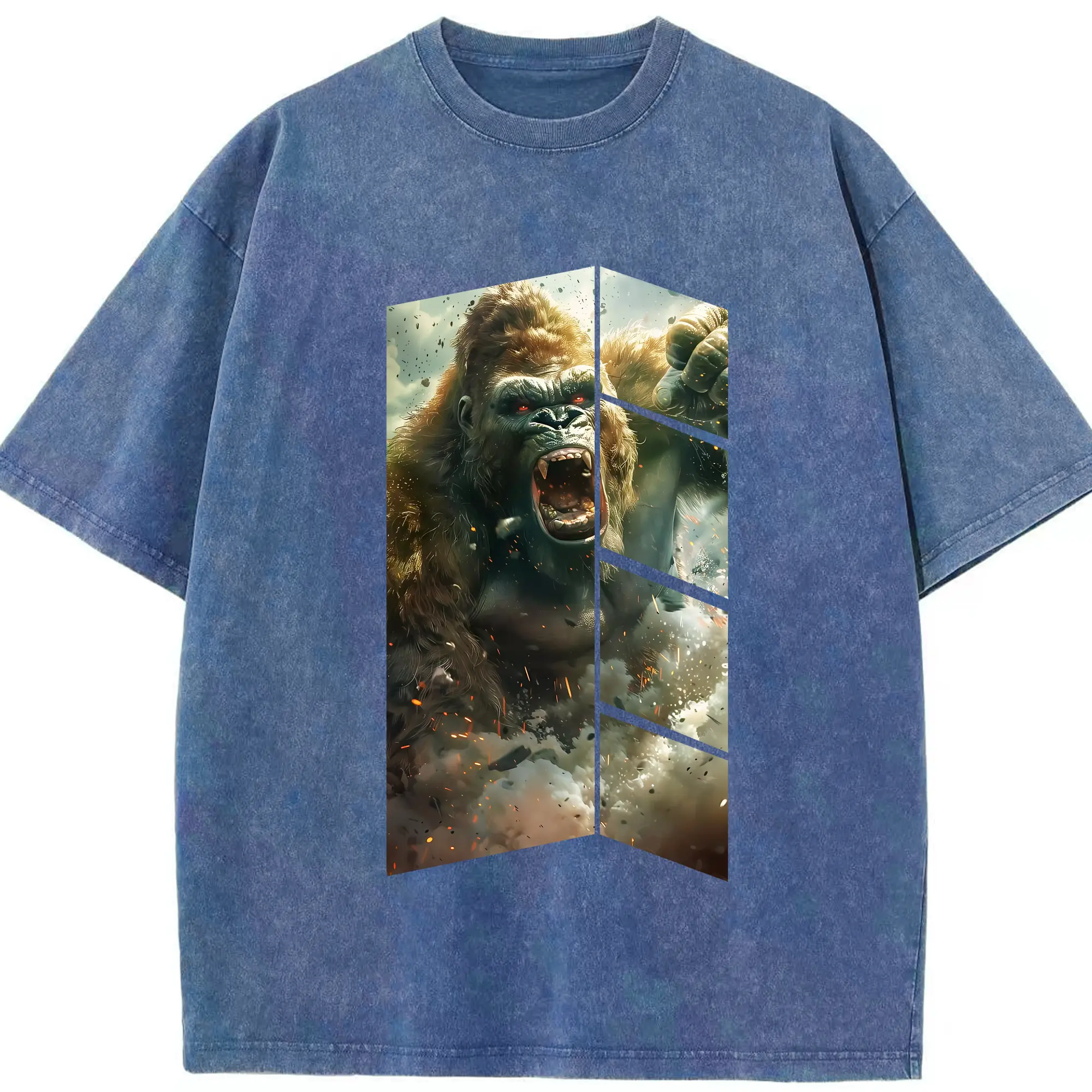 ゴジラ グッズ,キングコング - 綿100% ヴィンテージ風 半袖Tシャツ ・ 背面プリント ・ 柔らか肌触り ・ 通気性 快適 ・ スポーツ カジュアル 外出用