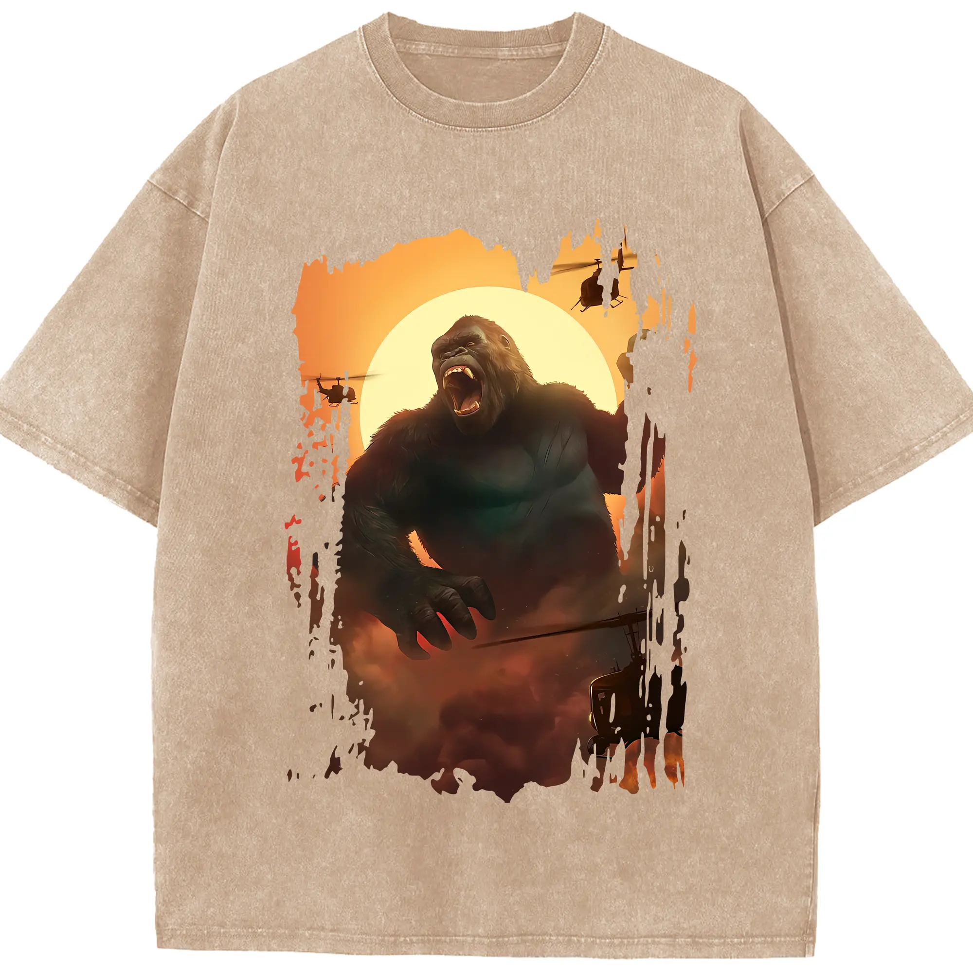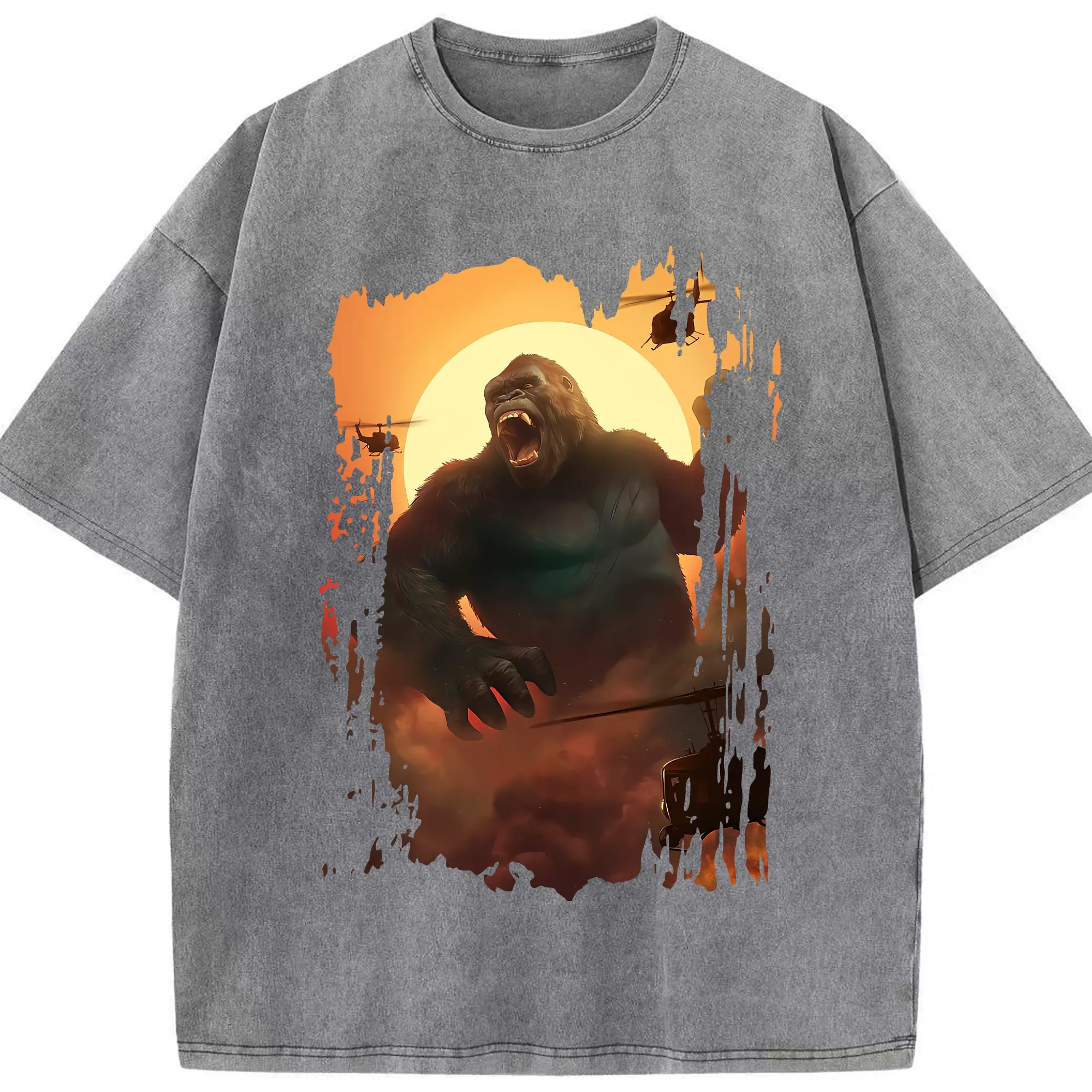 ゴジラ グッズ,キングコング - 綿100% ヴィンテージ風 半袖Tシャツ ・ 背面プリント ・ 柔らか肌触り ・ 通気性 快適 ・ スポーツ カジュアル 外出用