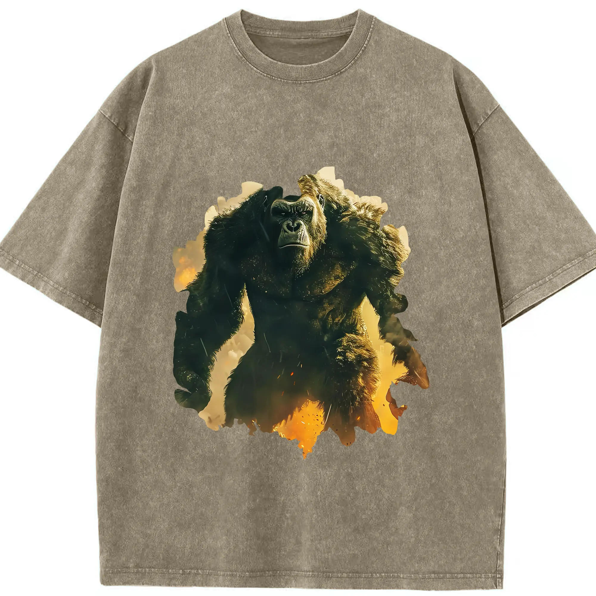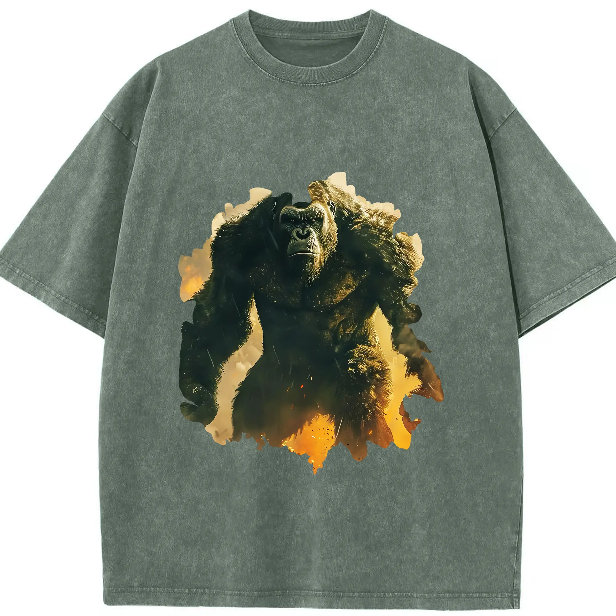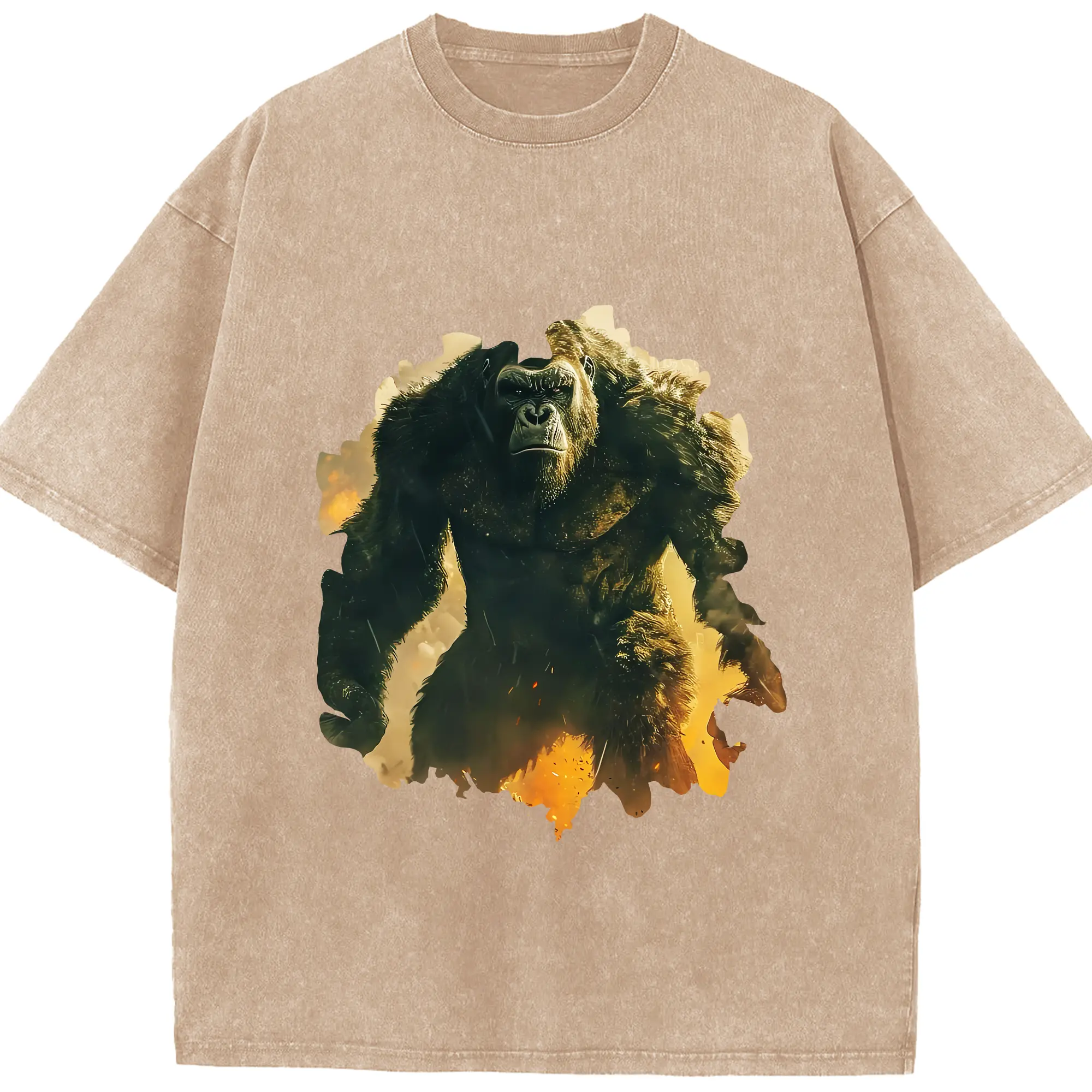 ゴジラ グッズ,キングコング - 綿100% ヴィンテージ風 半袖Tシャツ ・ 背面プリント ・ 柔らか肌触り ・ 通気性 快適 ・ スポーツ カジュアル 外出用