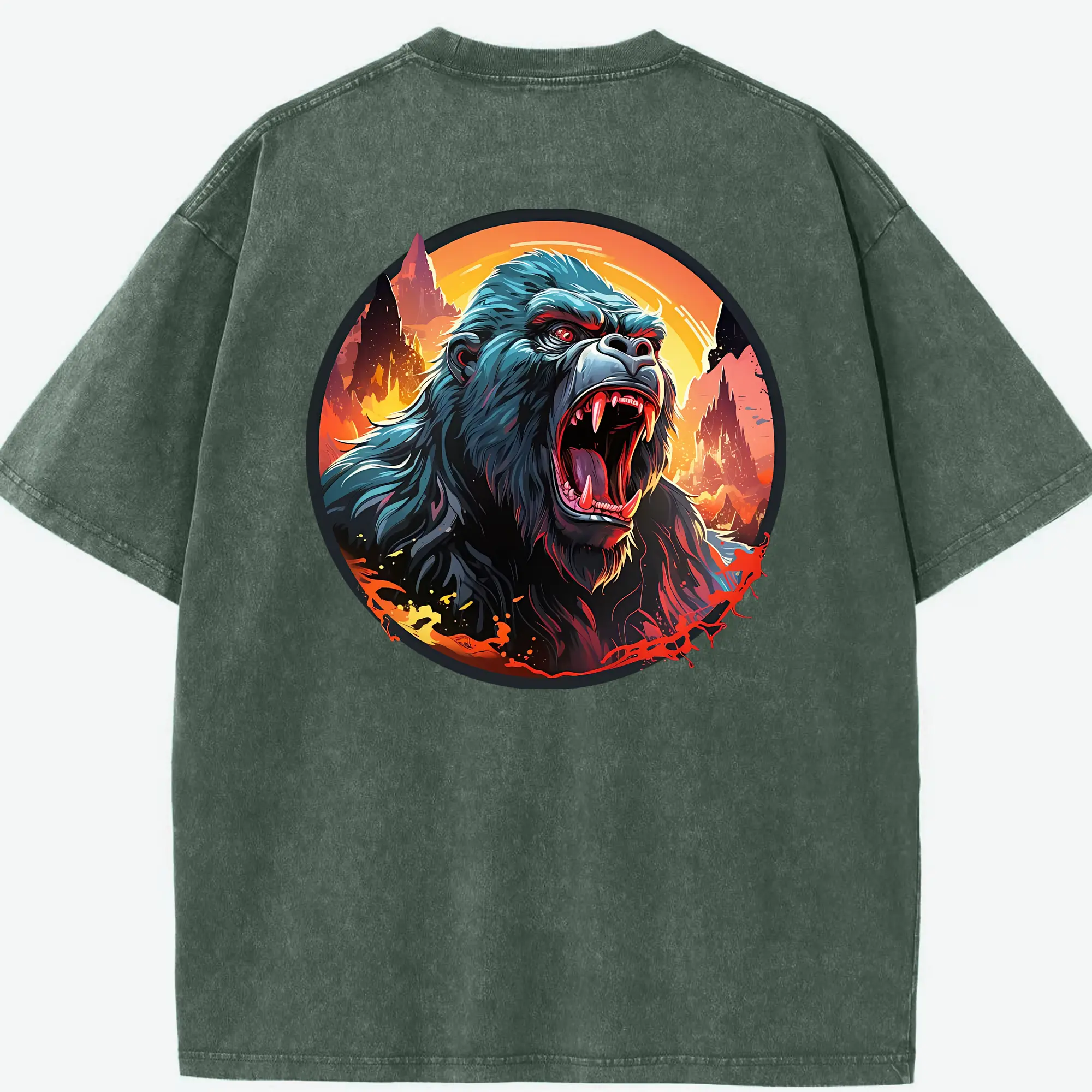 ゴジラ グッズ,キングコング - 綿100% ヴィンテージ風 半袖Tシャツ ・ フロントプリント ・ 柔らか肌触り ・ 通気性 快適 ・ スポーツ カジュアル 外出用
