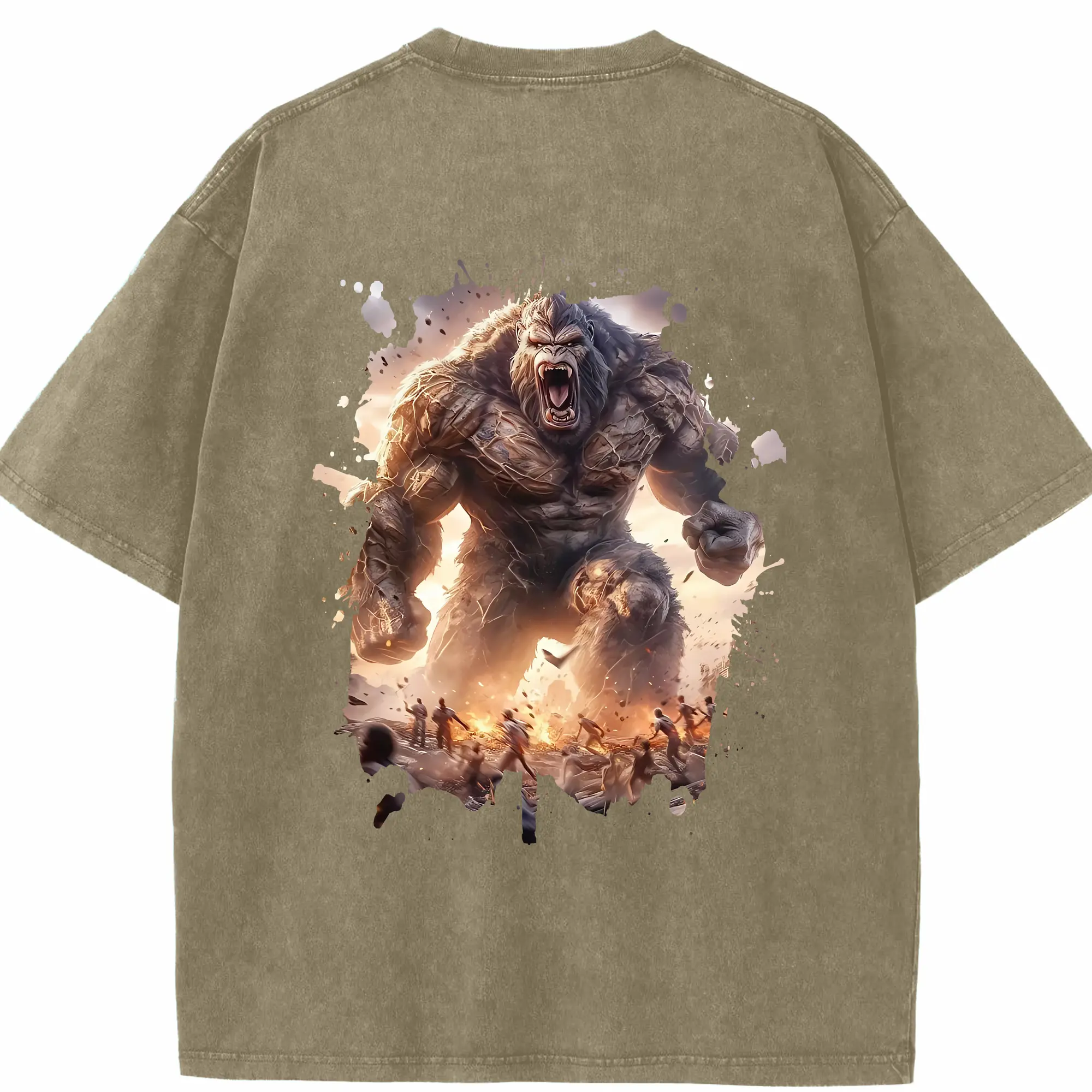 ゴジラ グッズ,キングコング - 綿100% 半袖Tシャツ ・ バックプリント ・ 快適 通気性 ・ 日常使い 散歩 スポーツ用