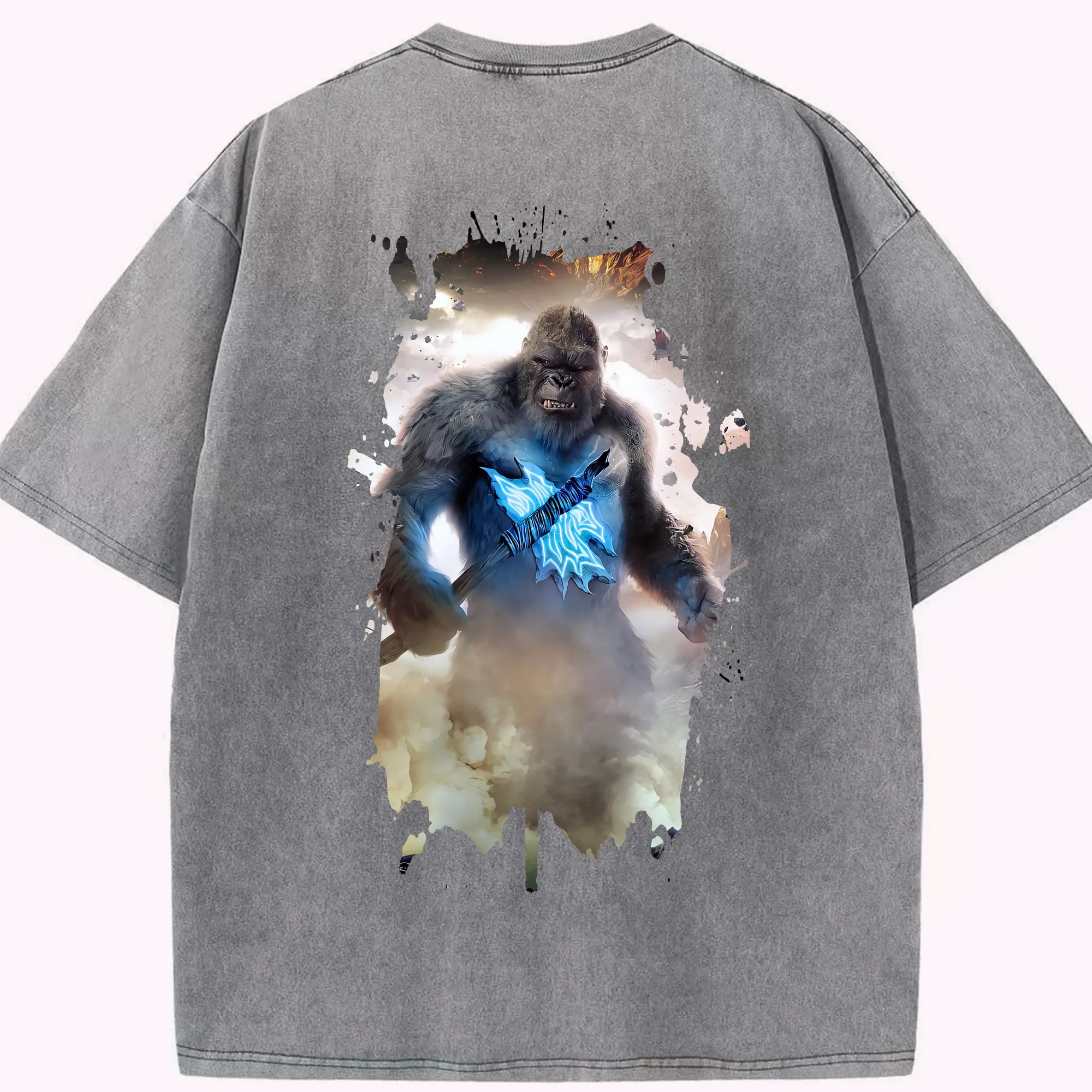 ゴジラ グッズ,キングコング - 綿100% 半袖Tシャツ ・ バックプリント ・ 快適 通気性 ・ 日常使い 散歩 スポーツ用
