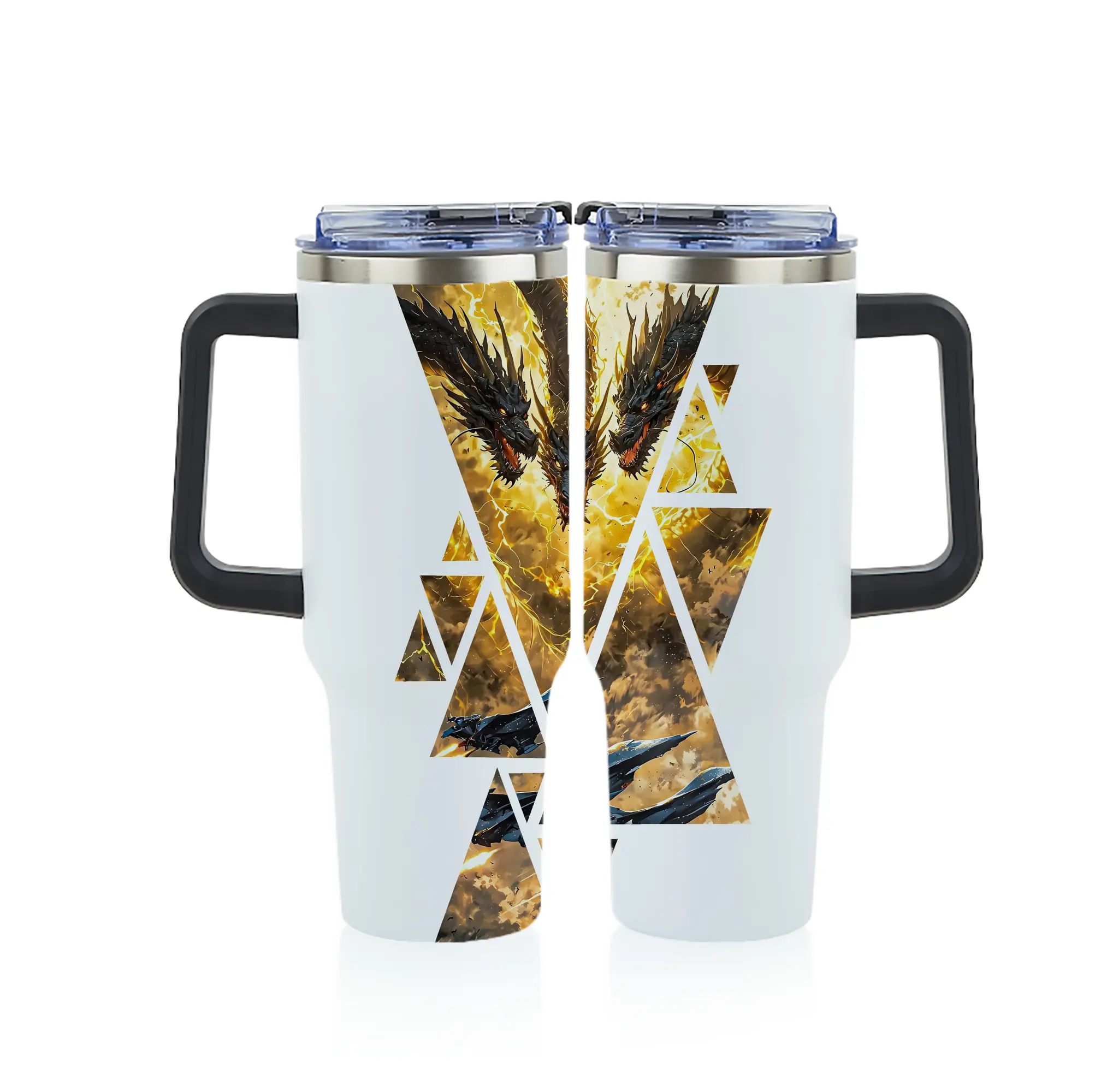 ゴジラ グッズ,キングギドラ - 1200mL フルプリント車用タンブラー ・ 304ステンレス 内側 ・ 201ステンレス 外側 ・ 保温 保冷 ・ 通勤 ドライブ アウトドア用