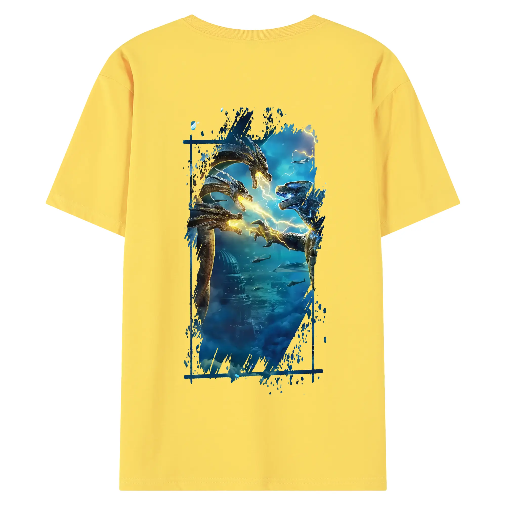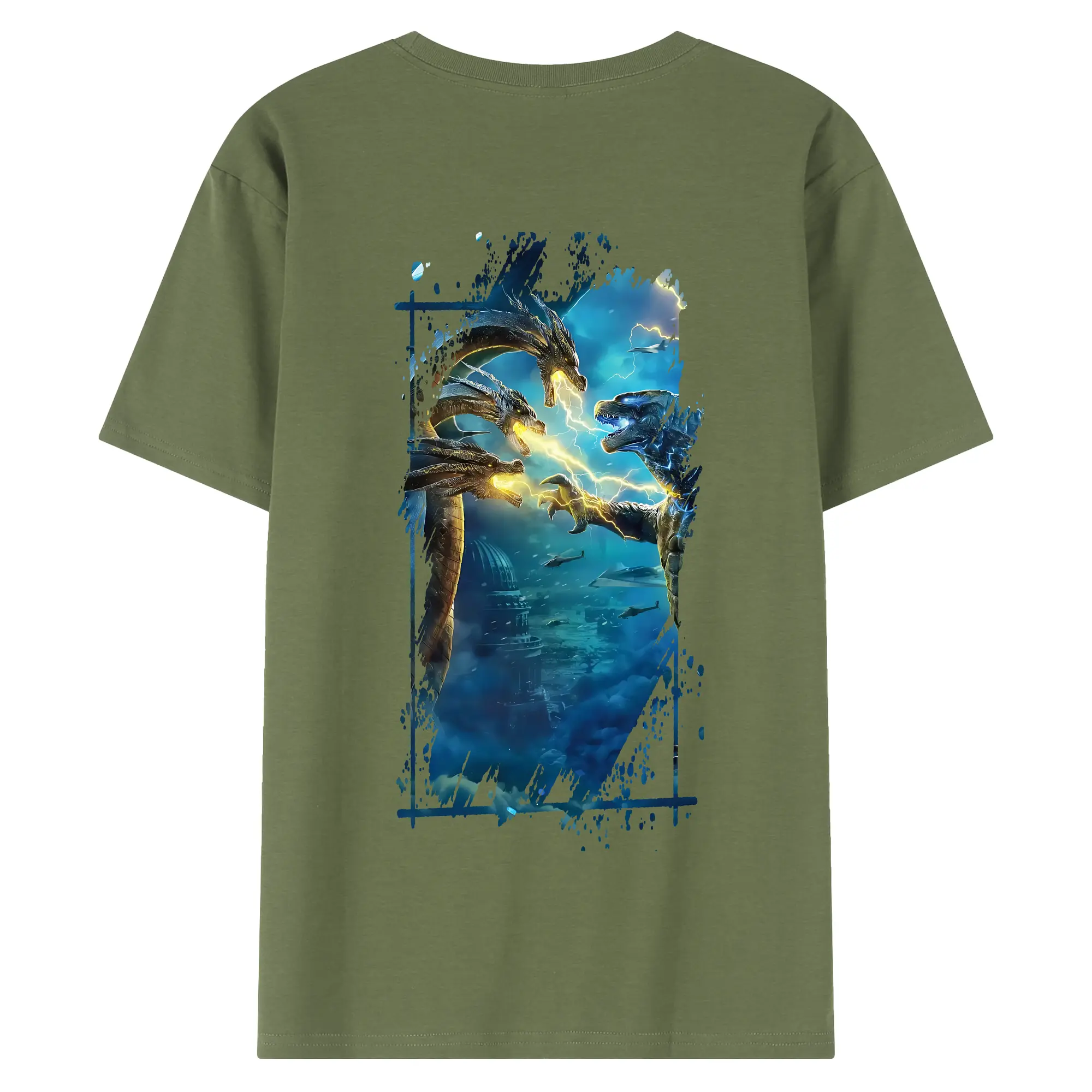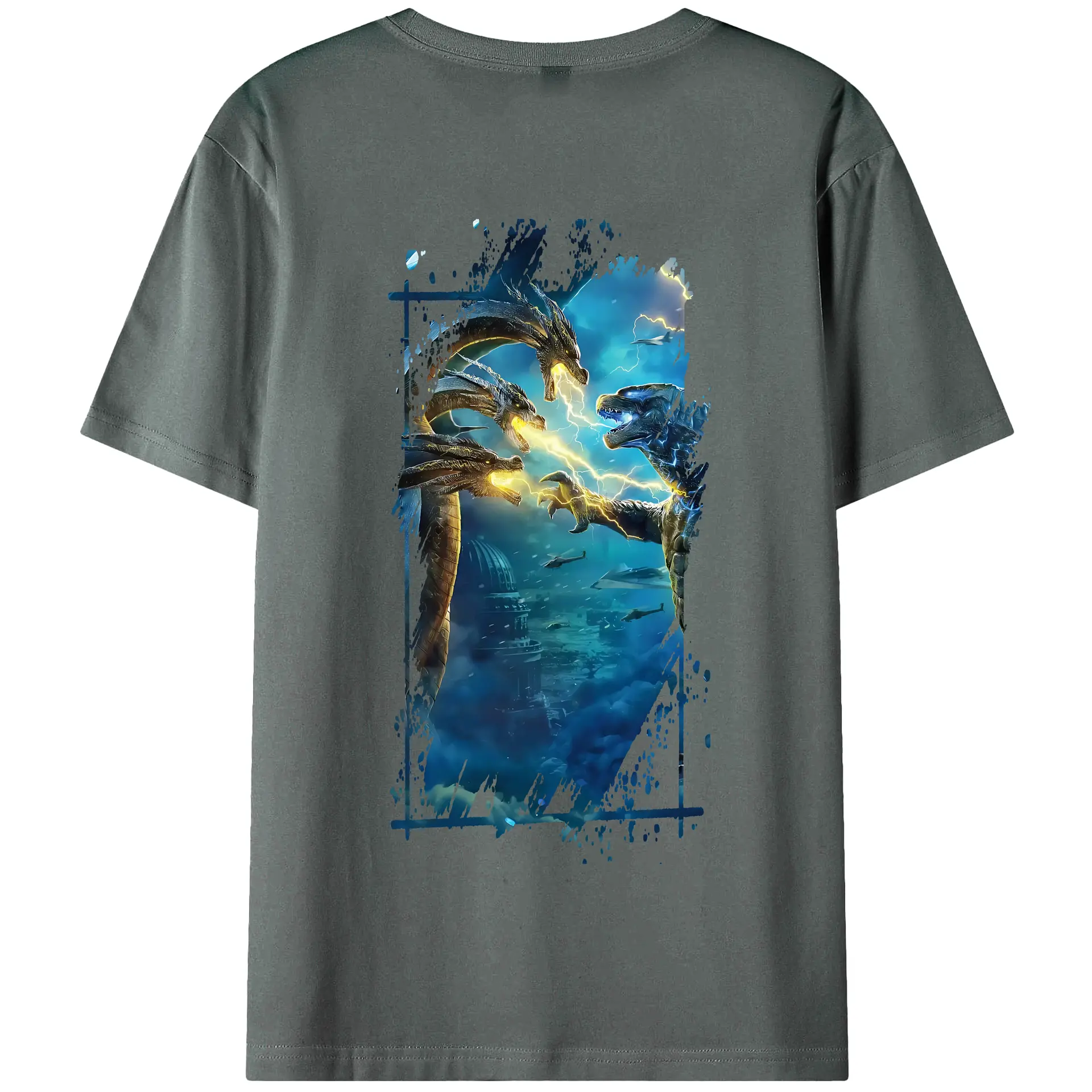 ゴジラ グッズ,キングギドラ - 綿100% 半袖Tシャツ ・ フロントプリント ・ 快適 通気性 ・ 日常使い 散歩 スポーツ用