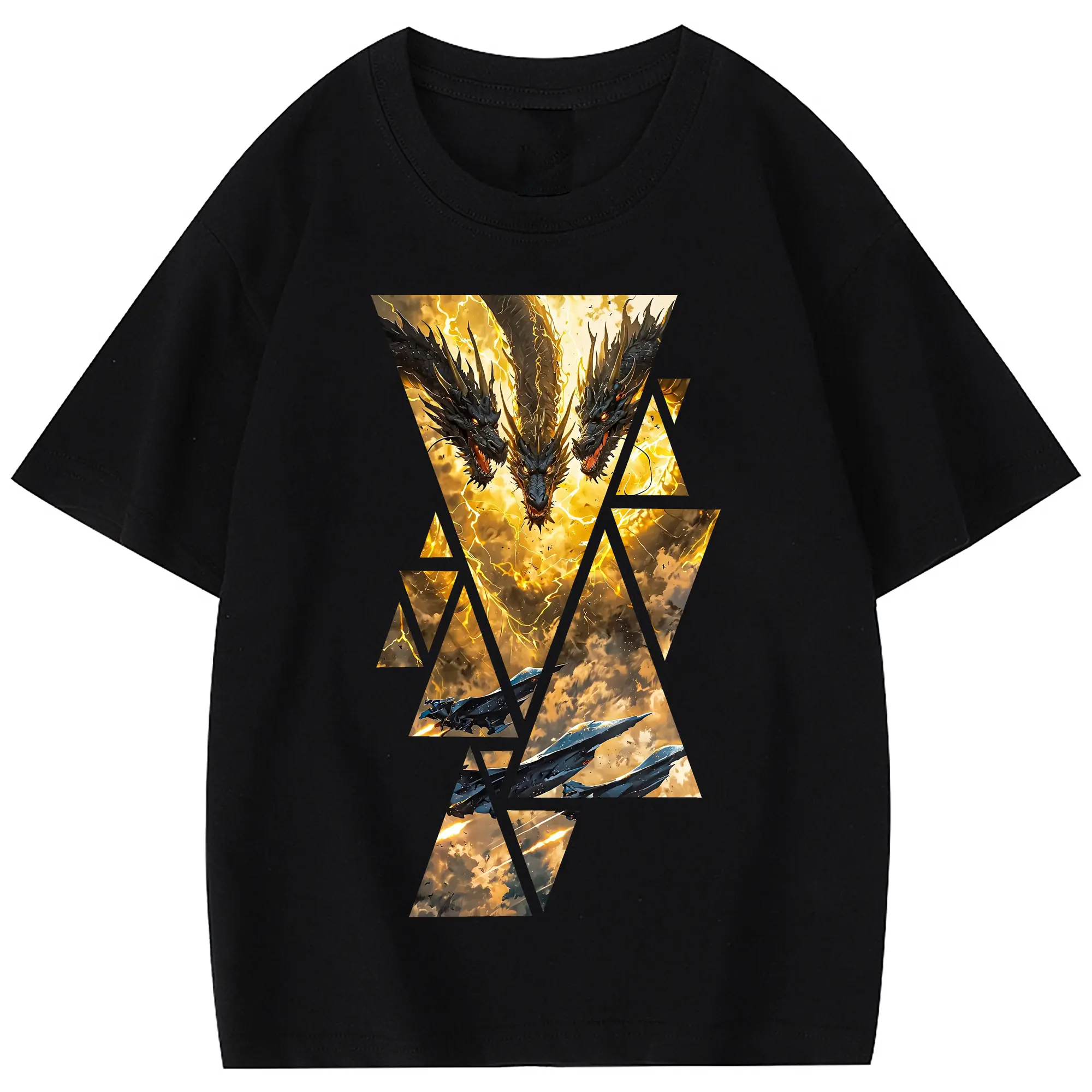 ゴジラ グッズ,キングギドラ - 綿100% 半袖Tシャツ ・ フロントプリント ・ 快適 通気性 ・ 日常使い 散歩 スポーツ用