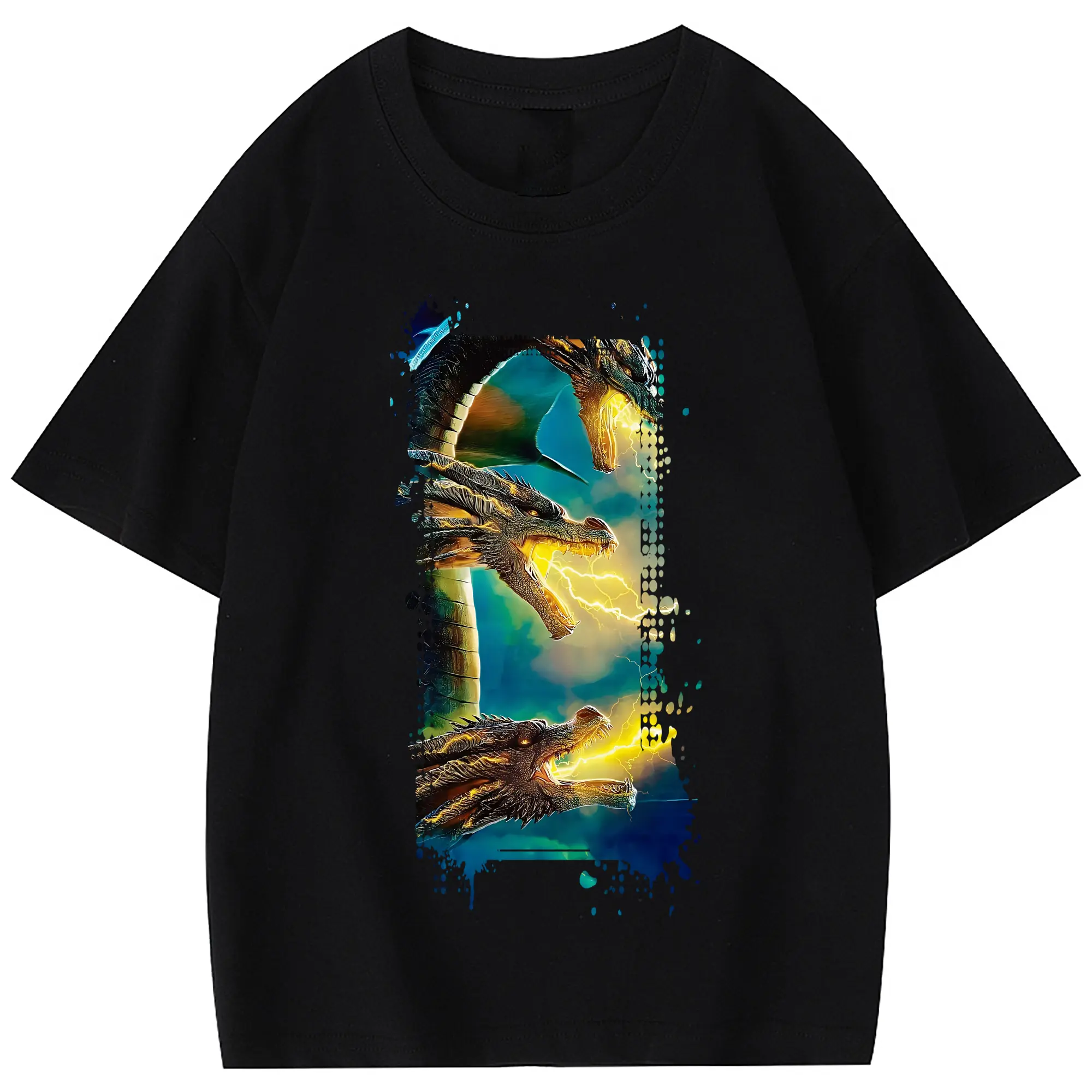 ゴジラ グッズ,キングギドラ - 綿100% 半袖Tシャツ ・ フロントプリント ・ 快適 通気性 ・ 日常使い 散歩 スポーツ用