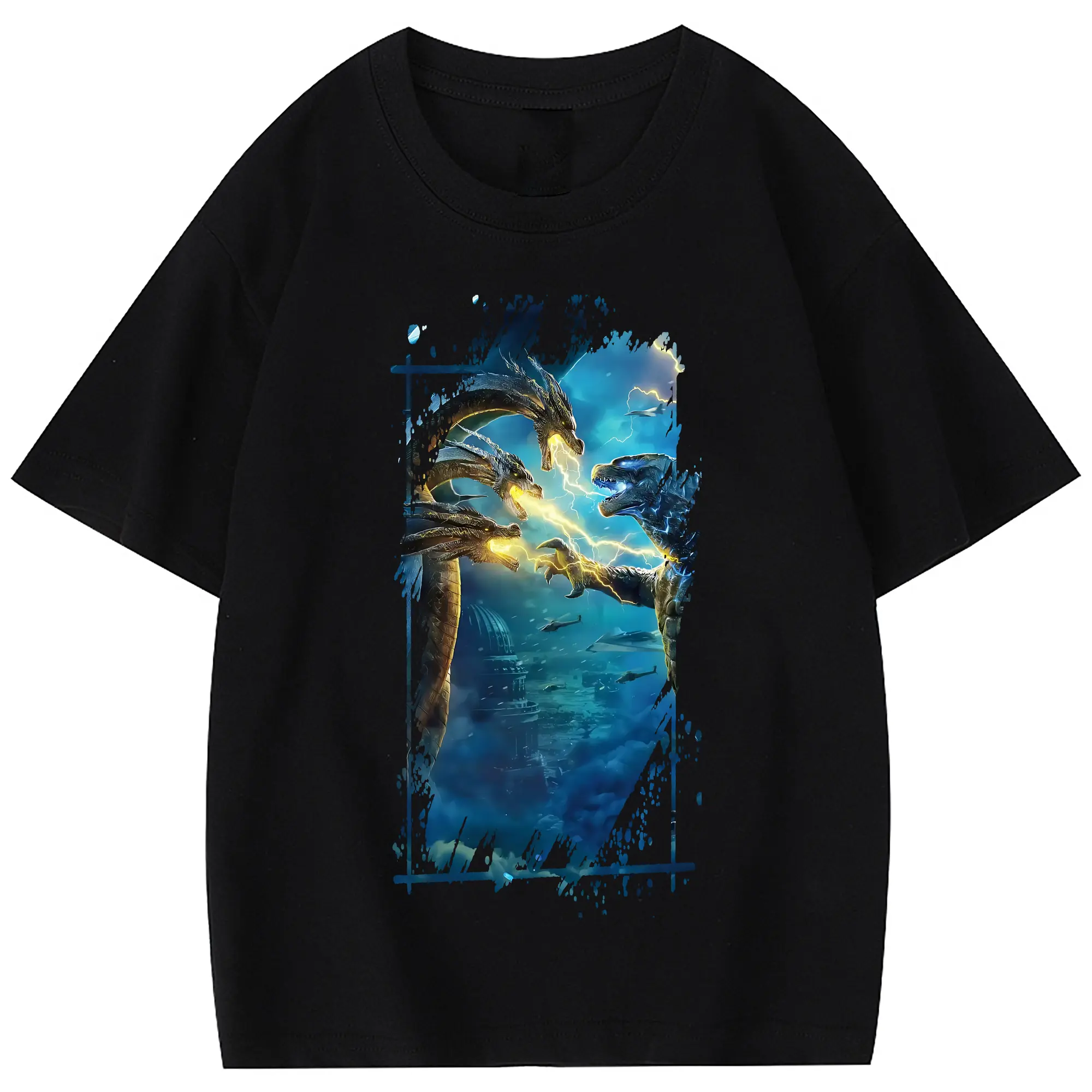 ゴジラ グッズ,キングギドラ - 綿100% 半袖Tシャツ ・ バックプリント ・ 快適 通気性 ・ 日常使い 散歩 スポーツ用