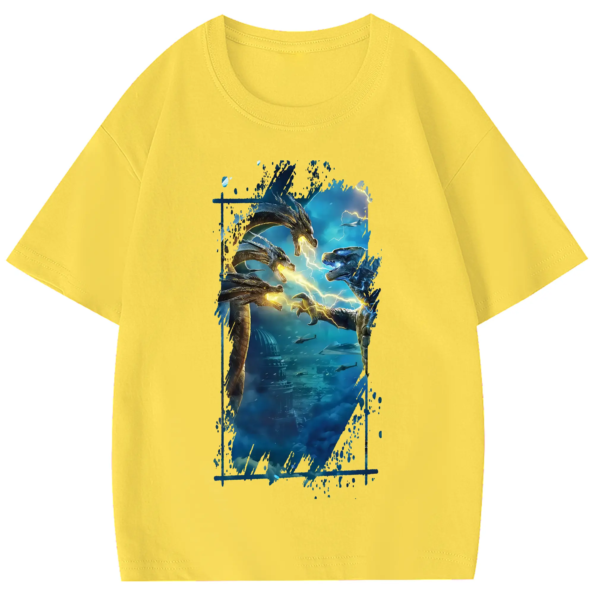 ゴジラ グッズ,キングギドラ - 綿100% 半袖Tシャツ ・ フロントプリント ・ 快適 通気性 ・ 日常使い 散歩 スポーツ用
