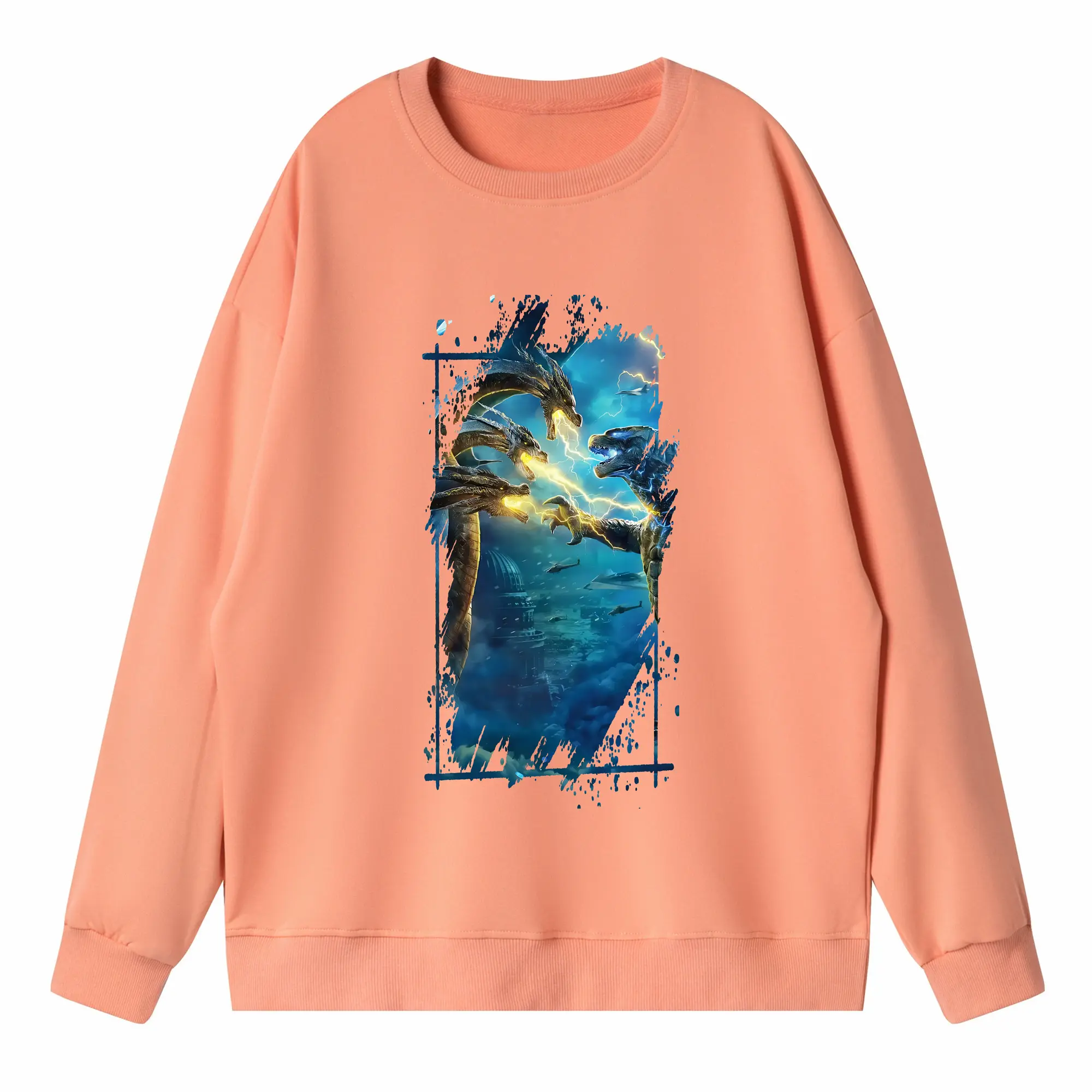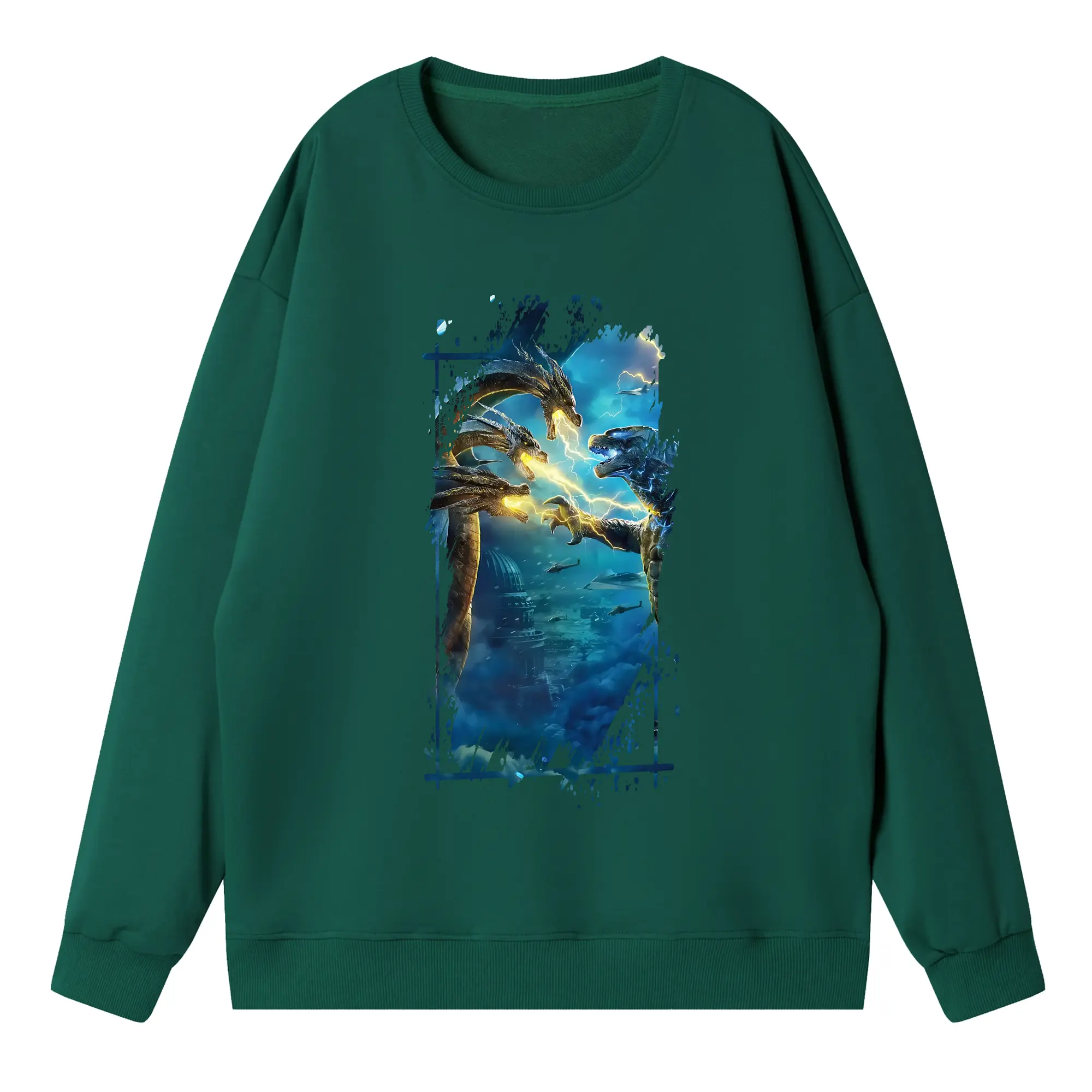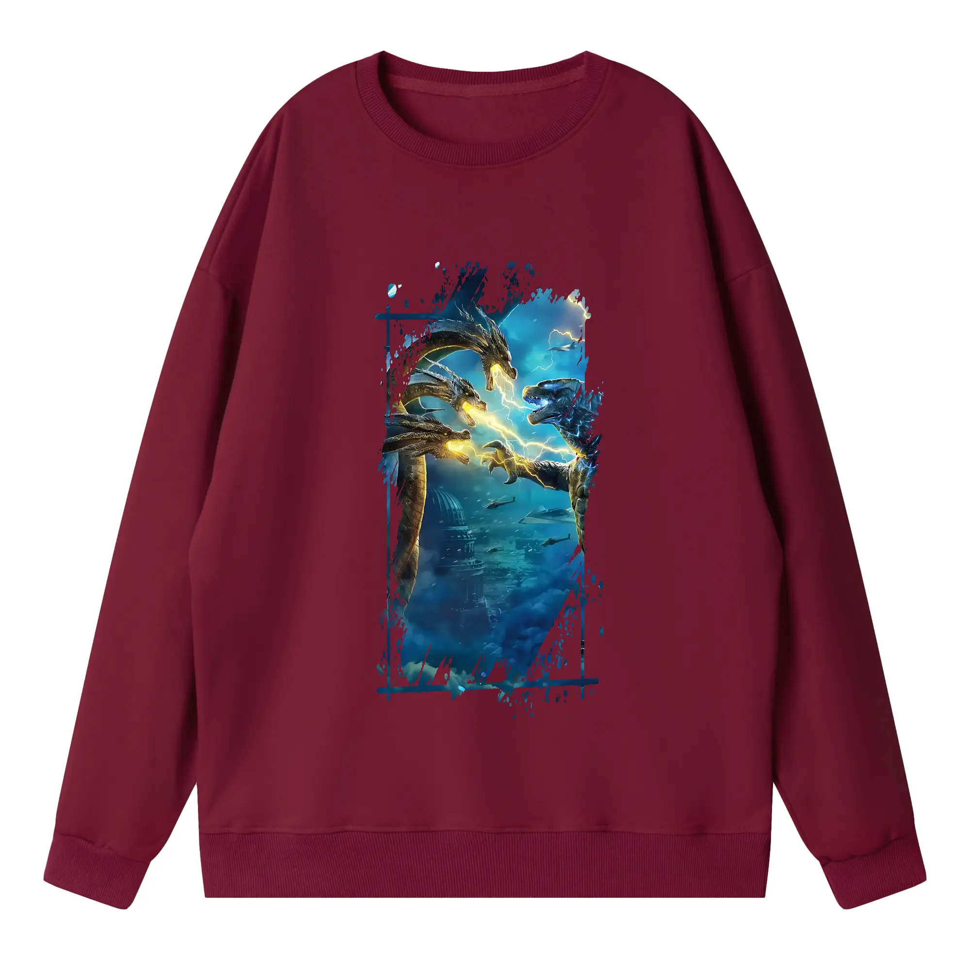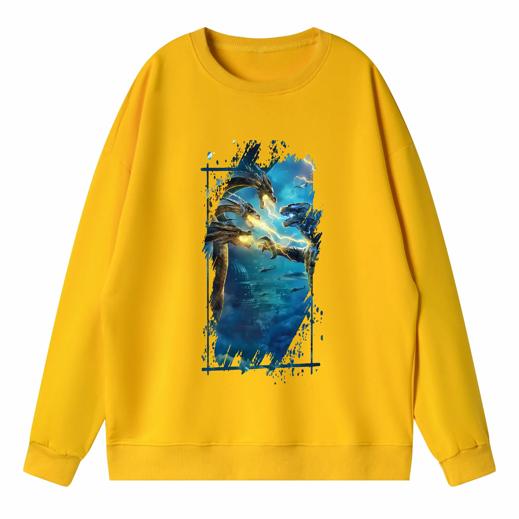 ゴジラ グッズ,キングギドラ - 高品質 クルーネック スウェット ・ コットン59% ポリエステル41% ・ ユニセックス 長袖 トレーナー ・ カジュアル デイリー スポーツ 散歩用