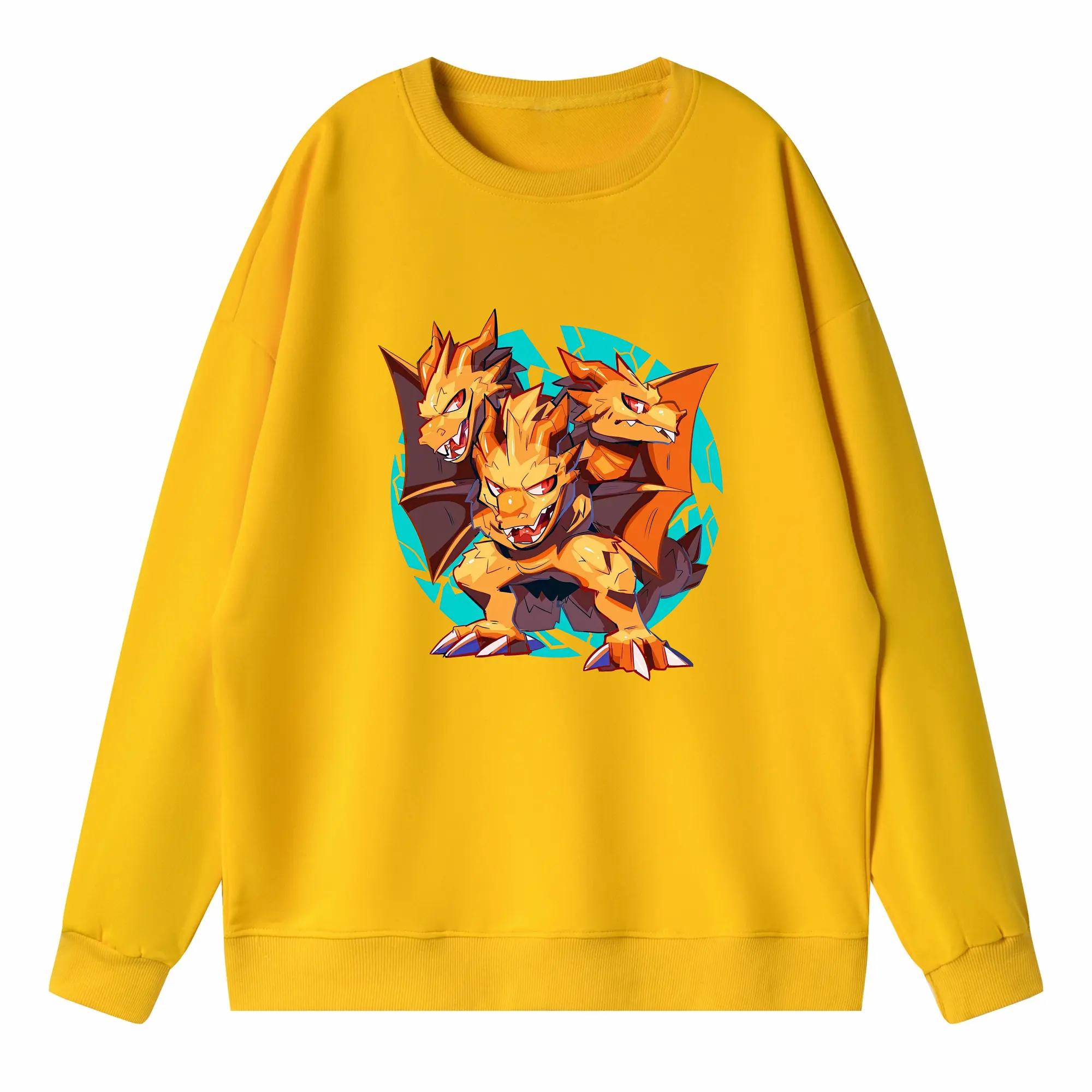 ゴジラ グッズ,キングギドラ - キッズ クルーネックスウェットシャツ ・ フロントプリント ・ 綿80% ポリエステル20% ・ 快適 通学 スポーツ 日常使い お散歩用