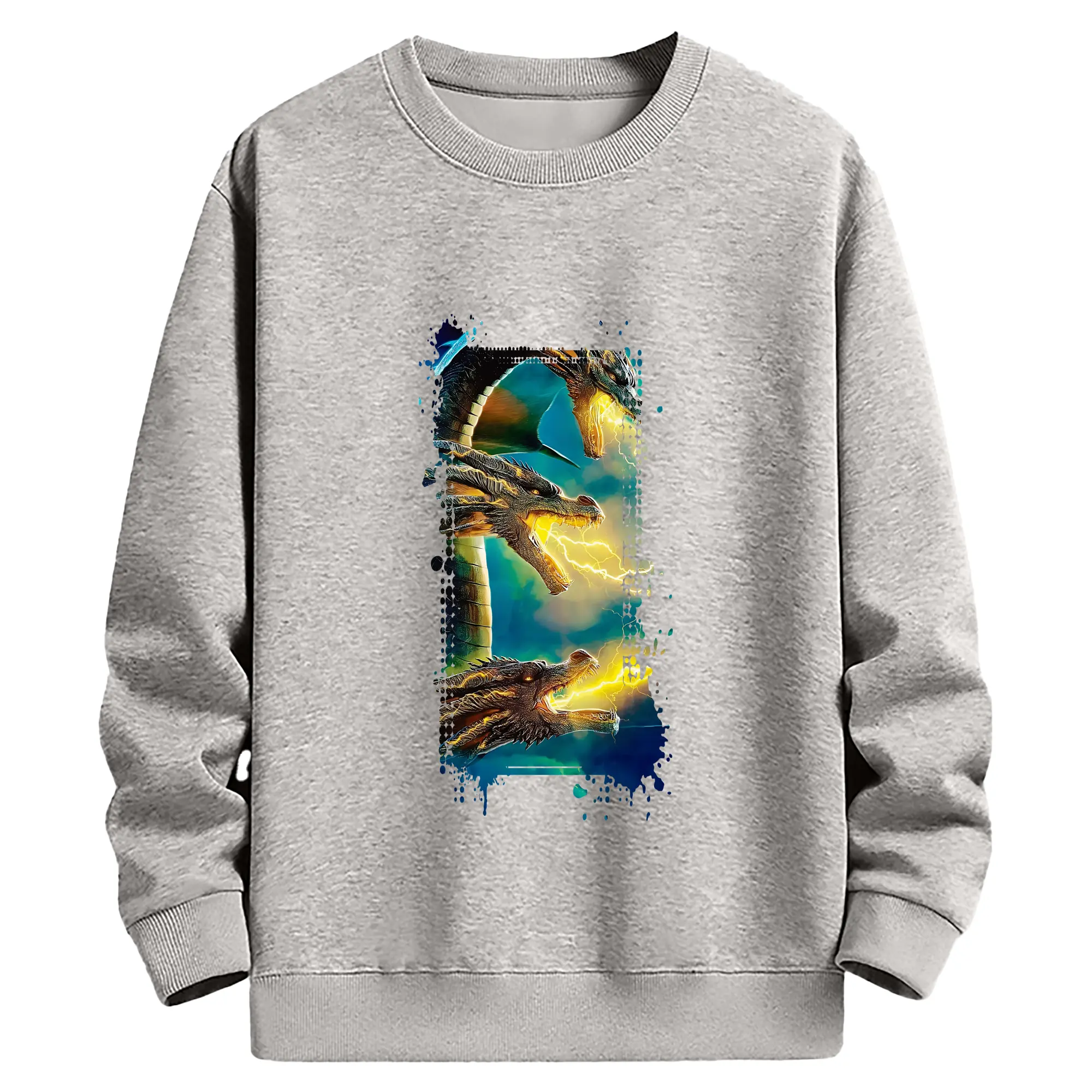 ゴジラ グッズ,キングギドラ - 高品質 クルーネック スウェット ・ コットン59% ポリエステル41% ・ ユニセックス 長袖 トレーナー ・ カジュアル デイリー スポーツ 散歩用