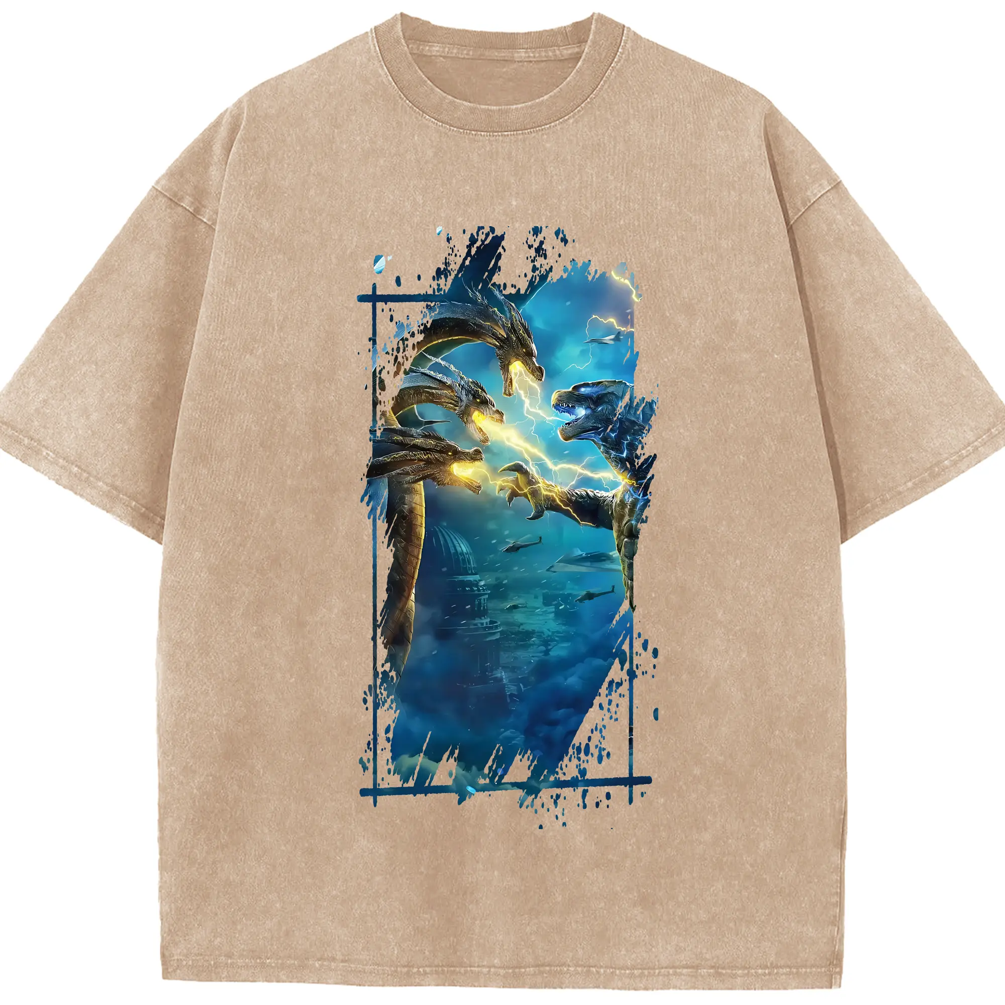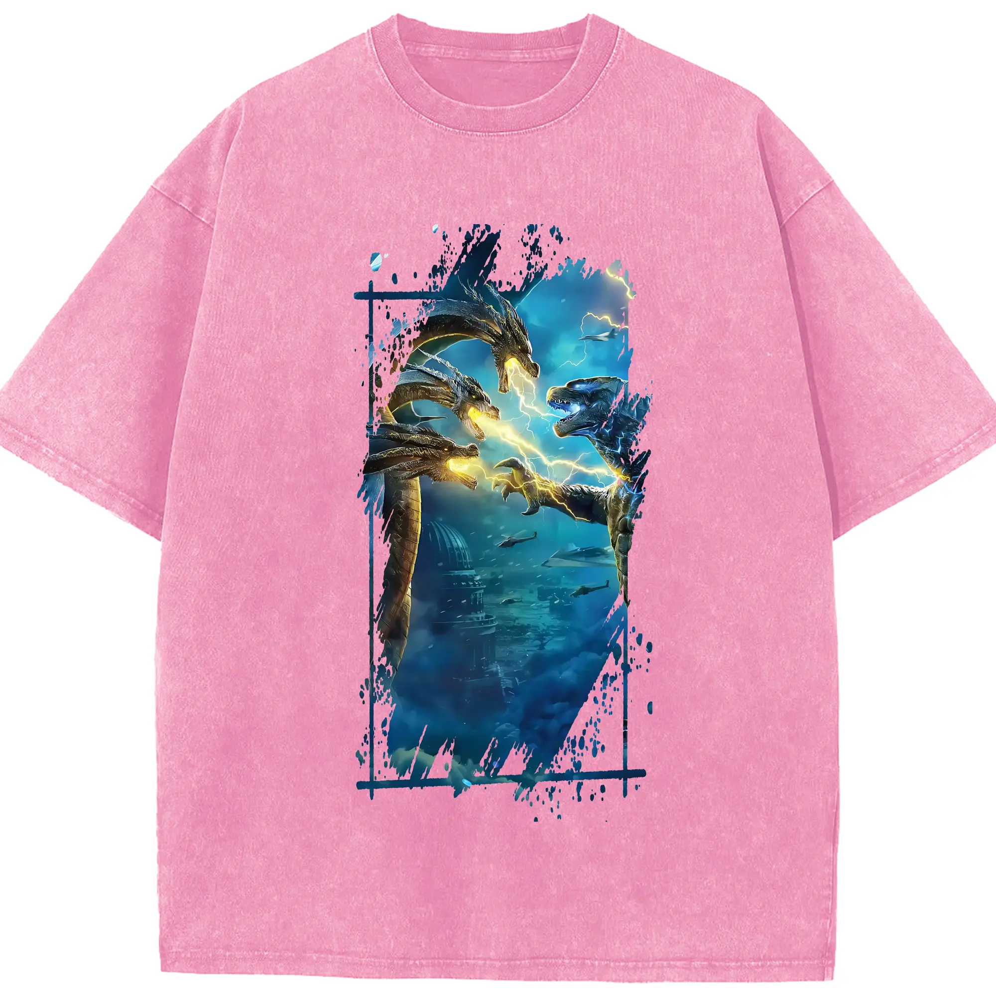 ゴジラ グッズ,キングギドラ - 綿100% 半袖Tシャツ ・ バックプリント ・ 快適 通気性 ・ 日常使い 散歩 スポーツ用