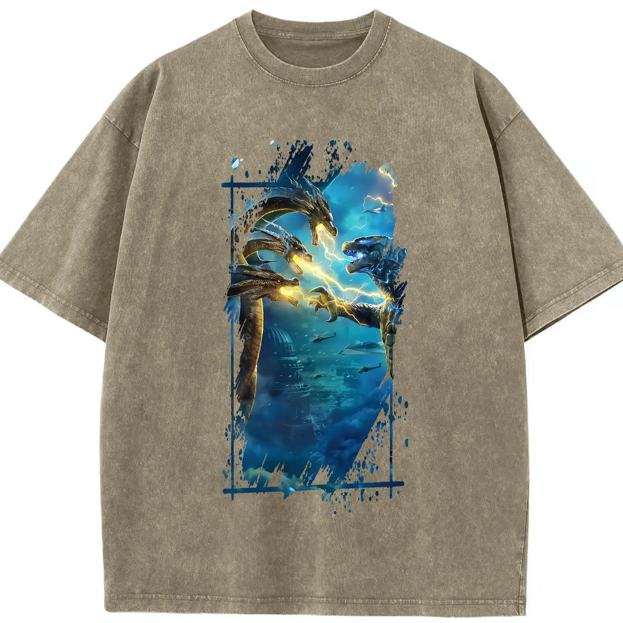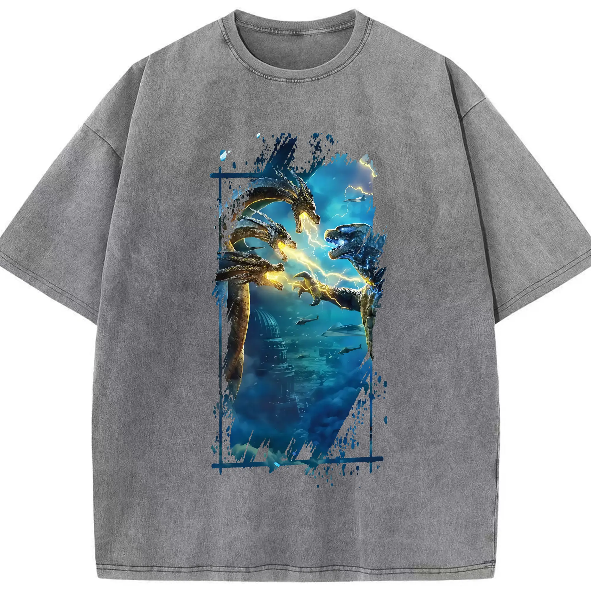 ゴジラ グッズ,キングギドラ - 綿100% ヴィンテージ風 半袖Tシャツ ・ 背面プリント ・ 柔らか肌触り ・ 通気性 快適 ・ スポーツ カジュアル 外出用